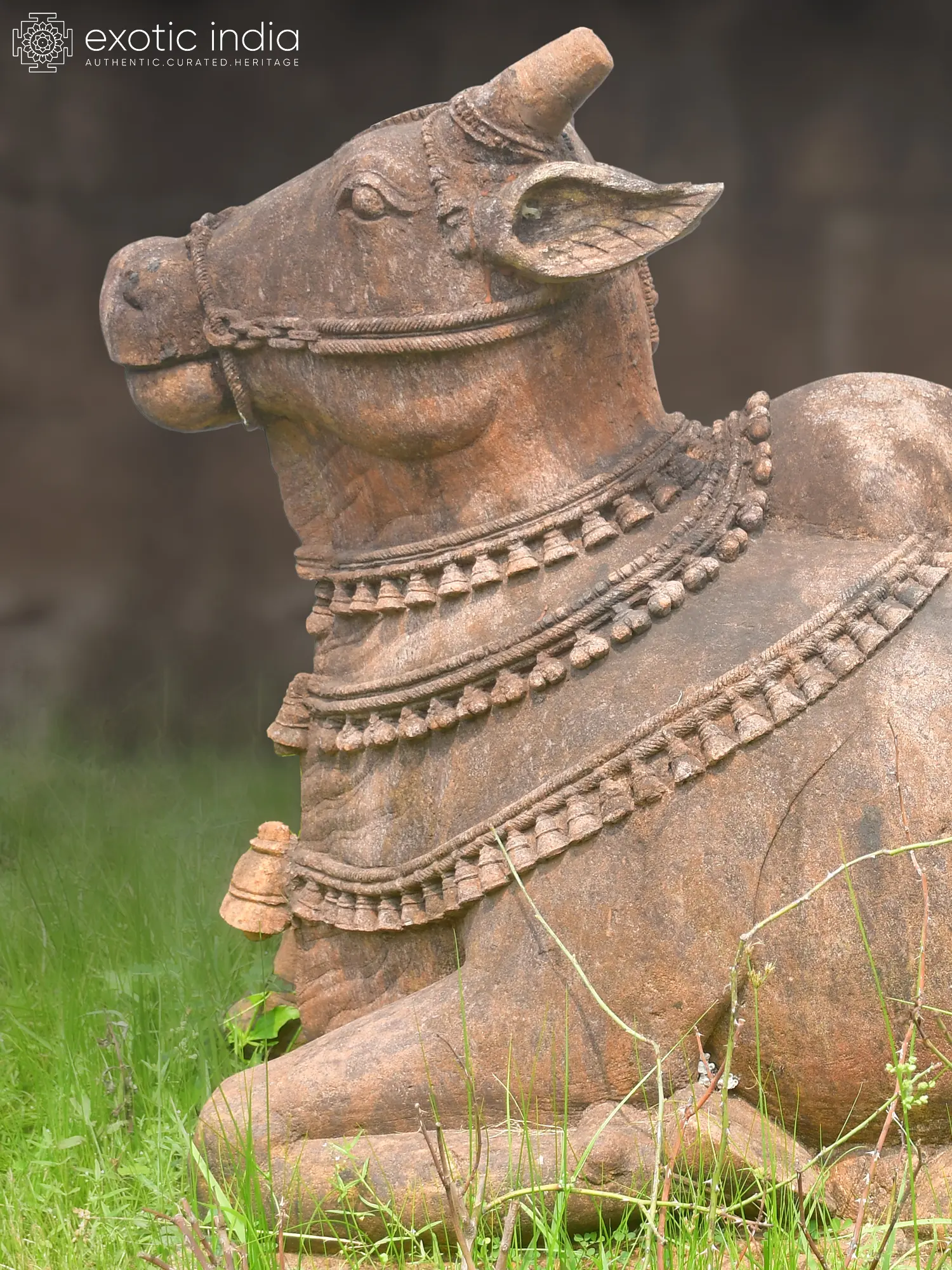 This representation embodies Nandi, the revered bull who serves as the divine mount and devoted attendant of Lord Shiva in Hindu mythology. As the guardian of secrets and the embodiment of strength and devotion, Nandi holds a significant place in spiritual traditions. This sculpture draws upon centuries of artistic interpretation, connecting you to this rich cultural heritage.
