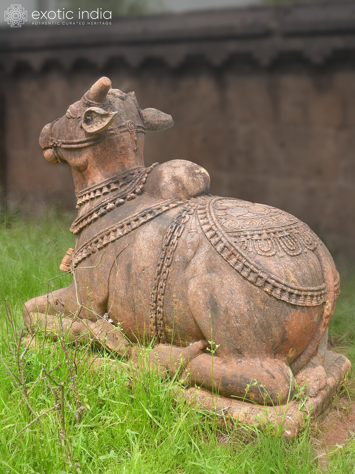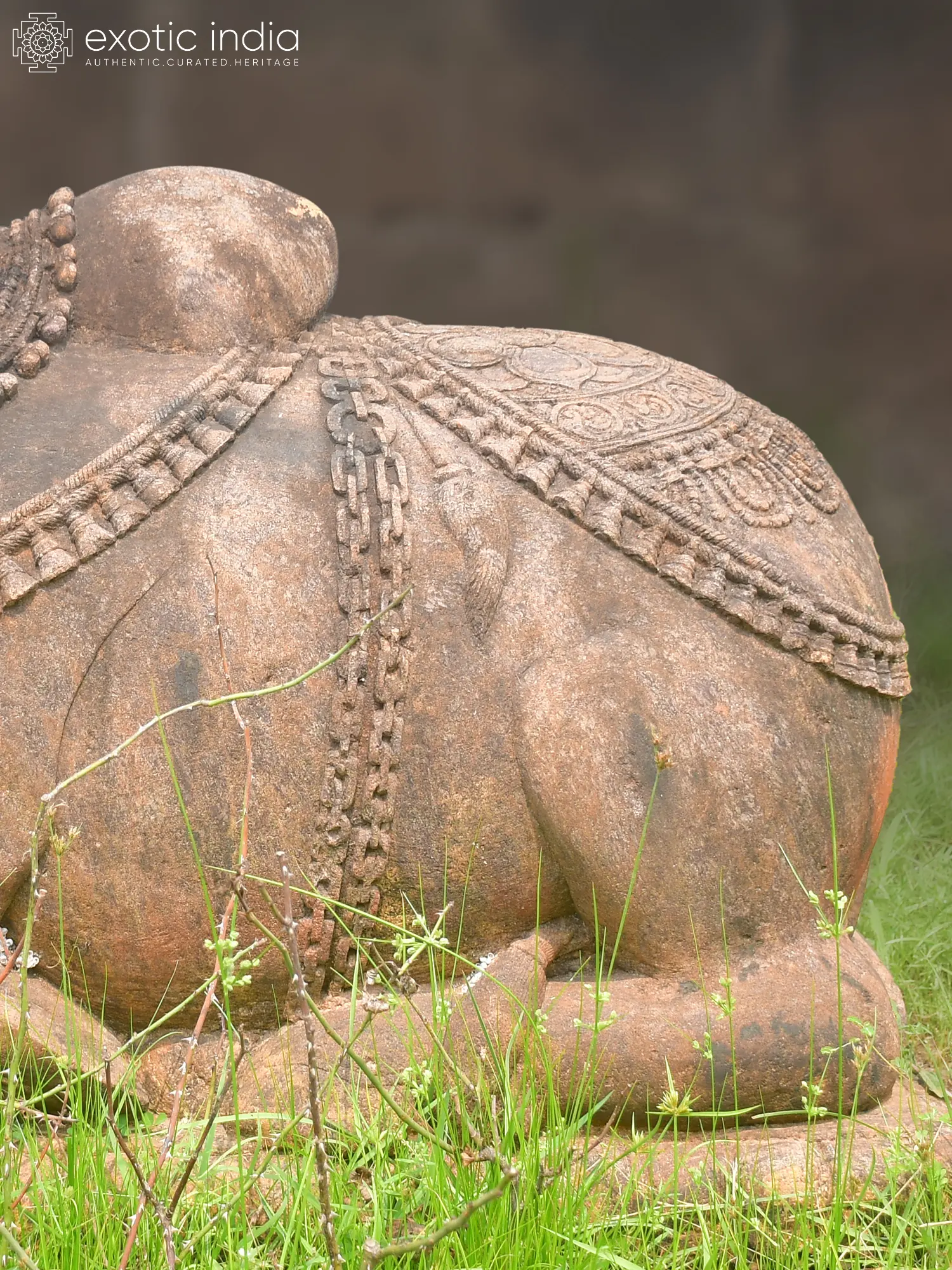 Carved from the finest Orissa Sandstone, each contour and detail has been meticulously brought to life by skilled artisans. You'll appreciate the raw beauty of the stone, its natural variations telling a story of its origin. The masterful technique employed ensures a level of fidelity that captures the essence of its subject, from the gentle curve of the horns to the intricate adornments.
