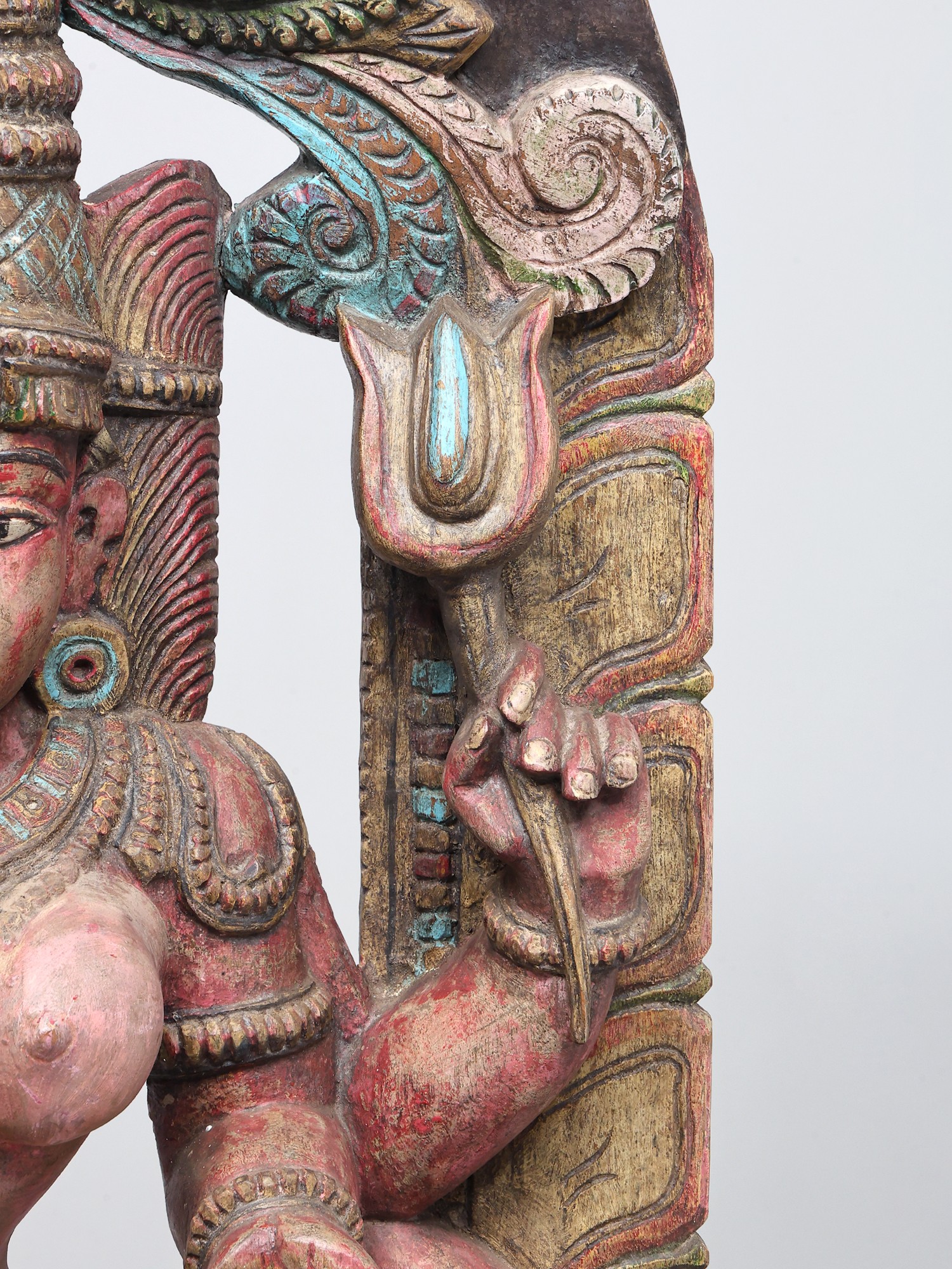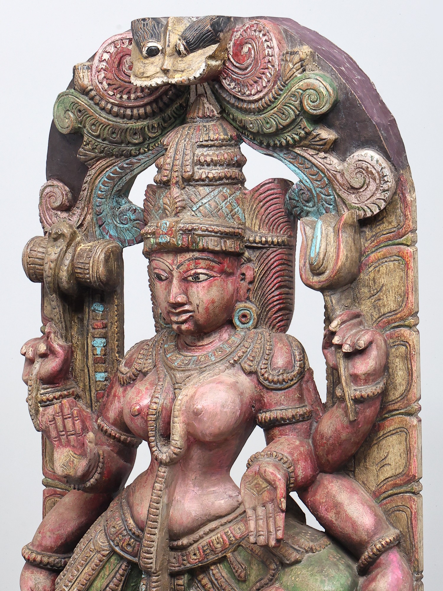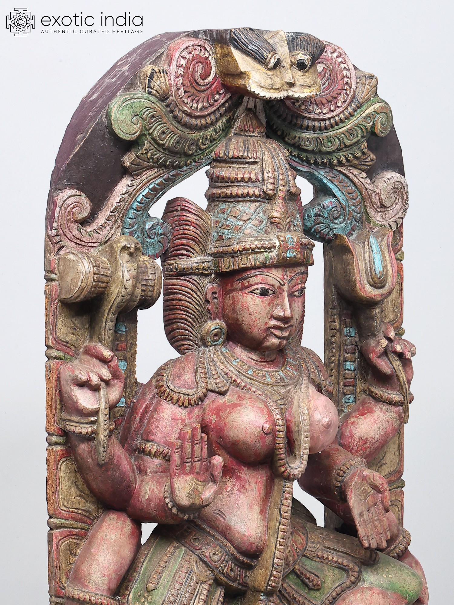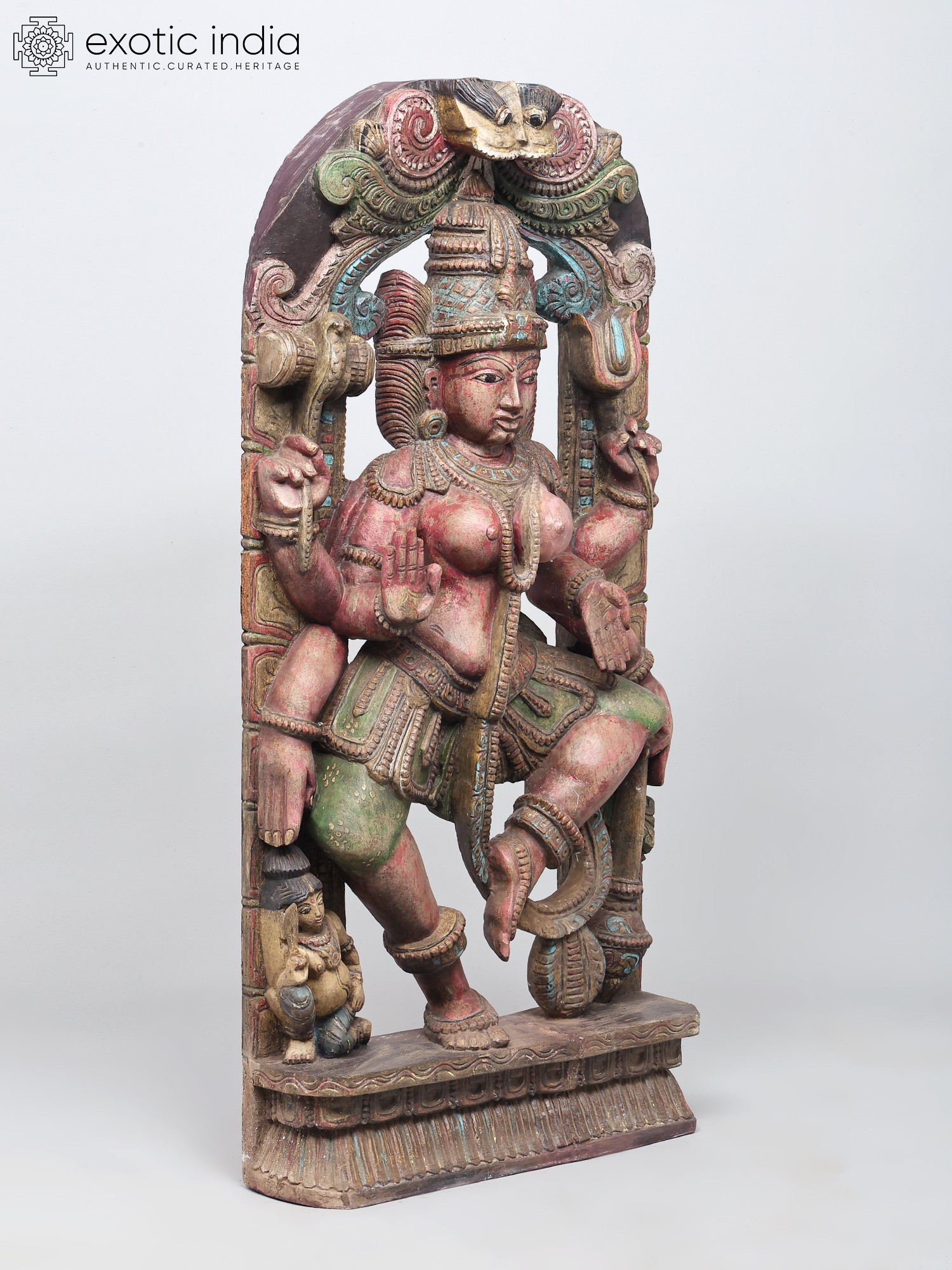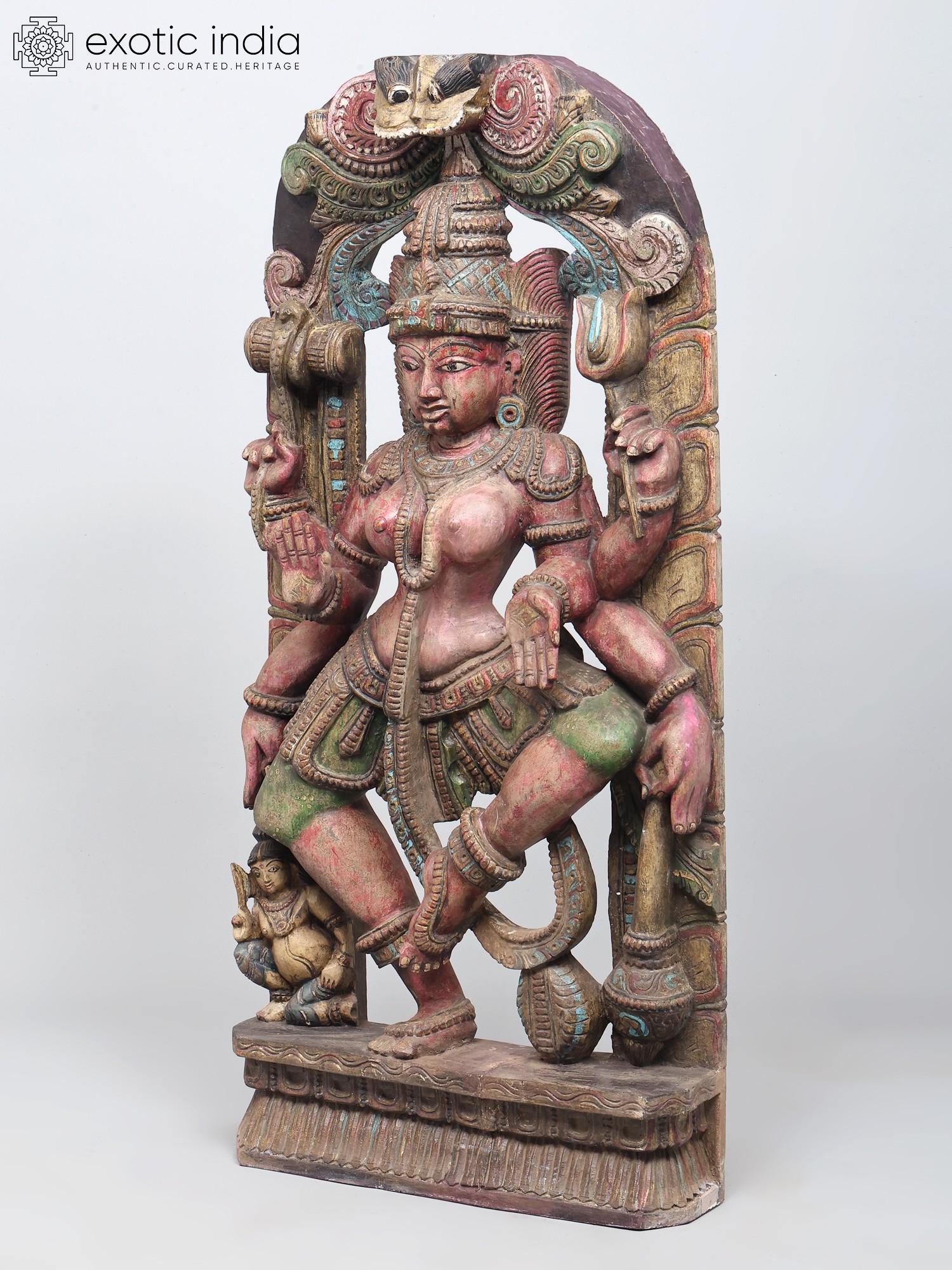 38" Large Dancing Goddess Durga (Parvati) | Wood Carved Statue
