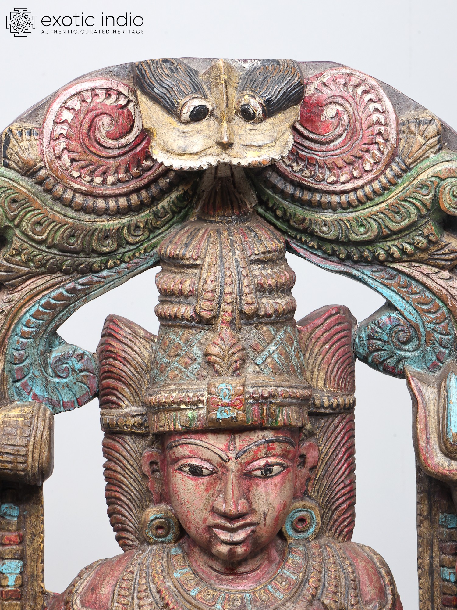 13" Devi Lakshmi Seated on Kirtimukha Throne | Sandalwood Carved Statue