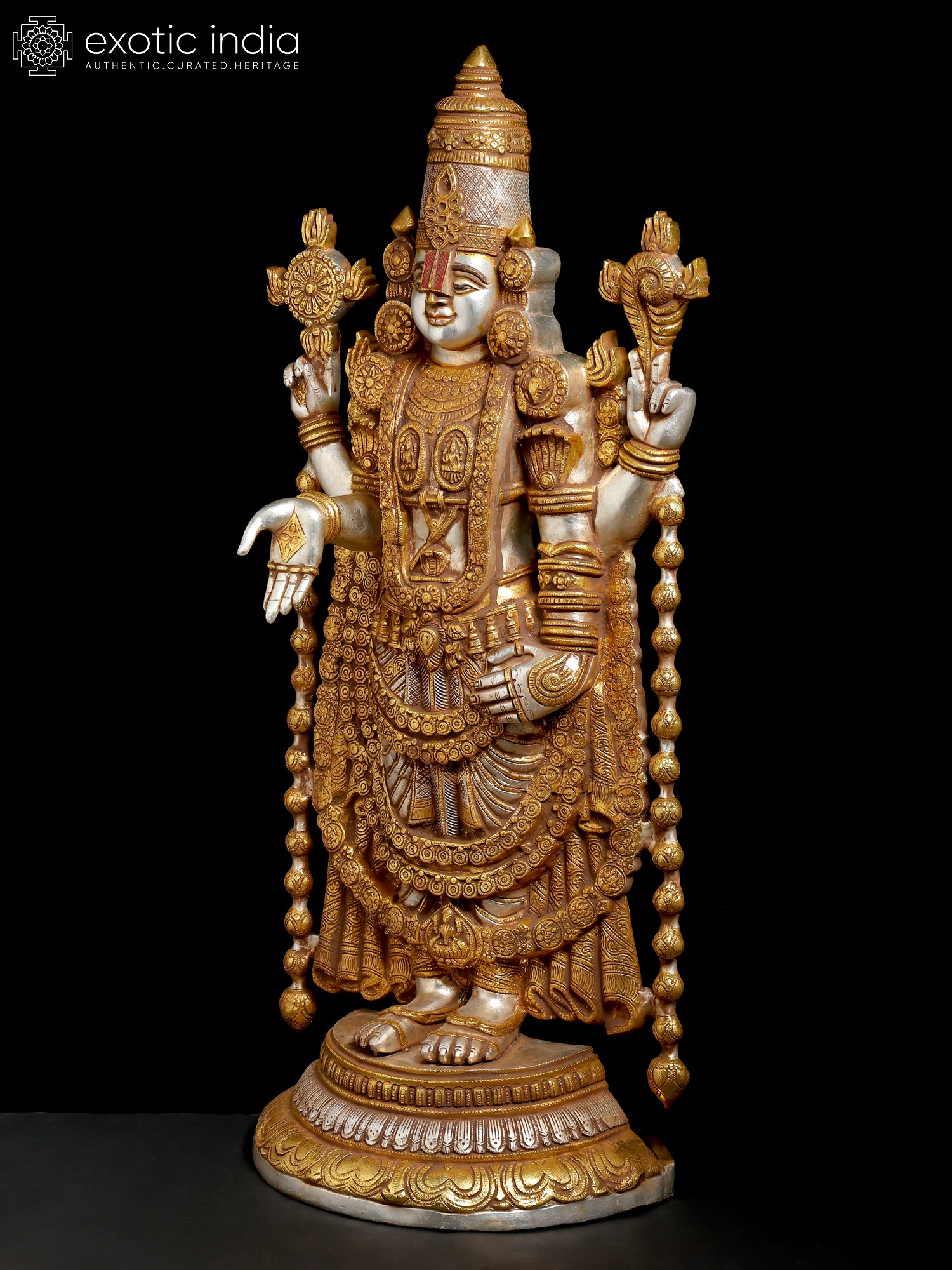 47" Large Superfine Lord Venkateshvara as Balaji at Tirupati | Brass Statue | Handmade | Made In India