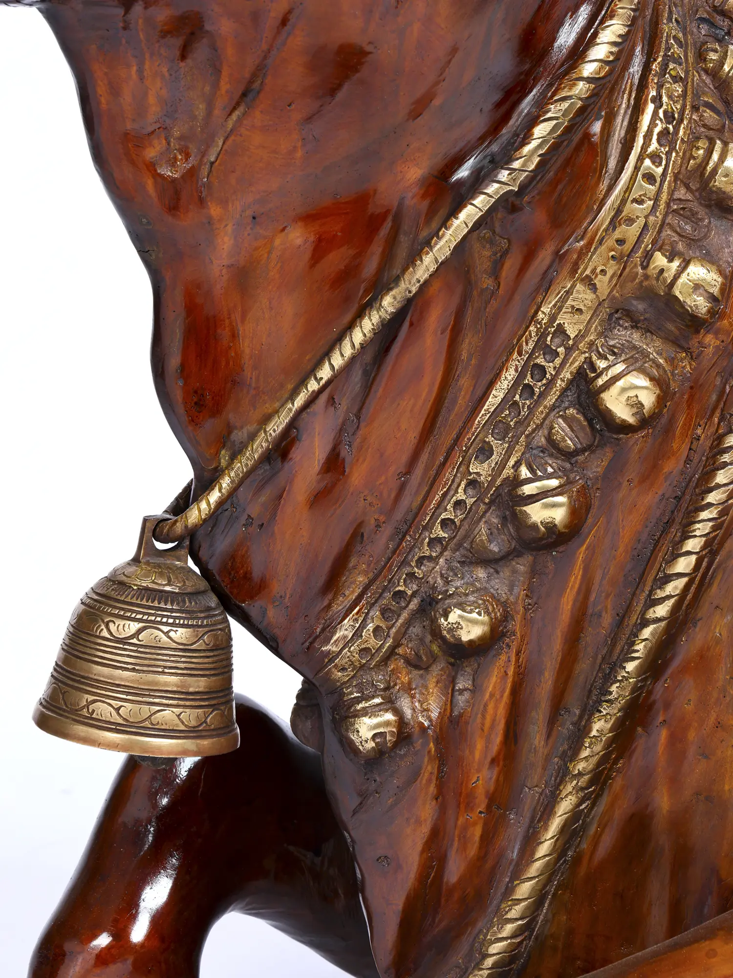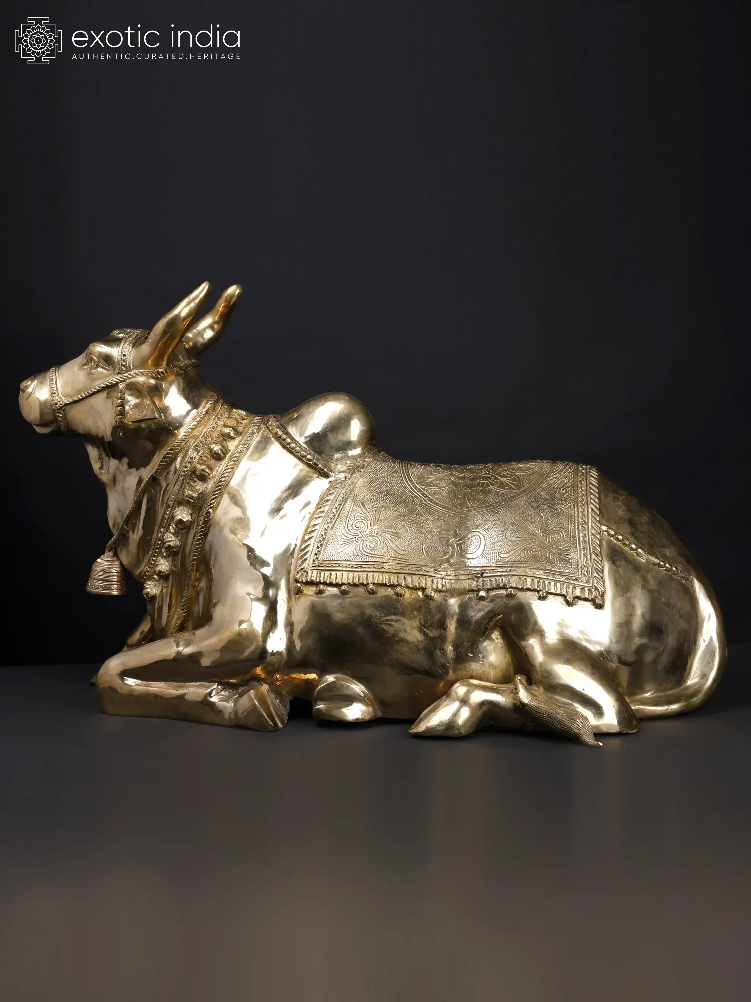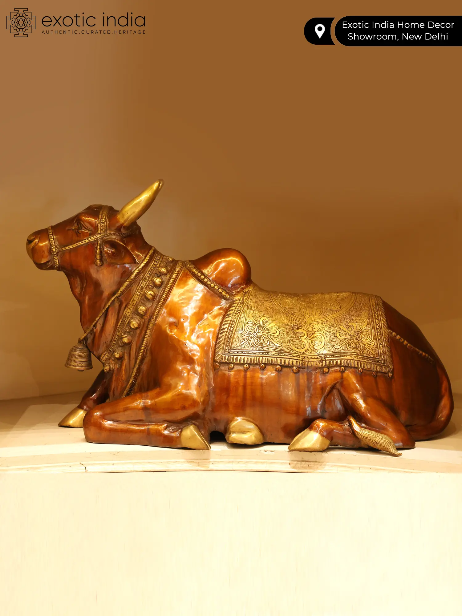 Gleaming divinely, Shiva’s devoted mount Nandi in this brass sculpture creates an atmosphere of devotion around him.