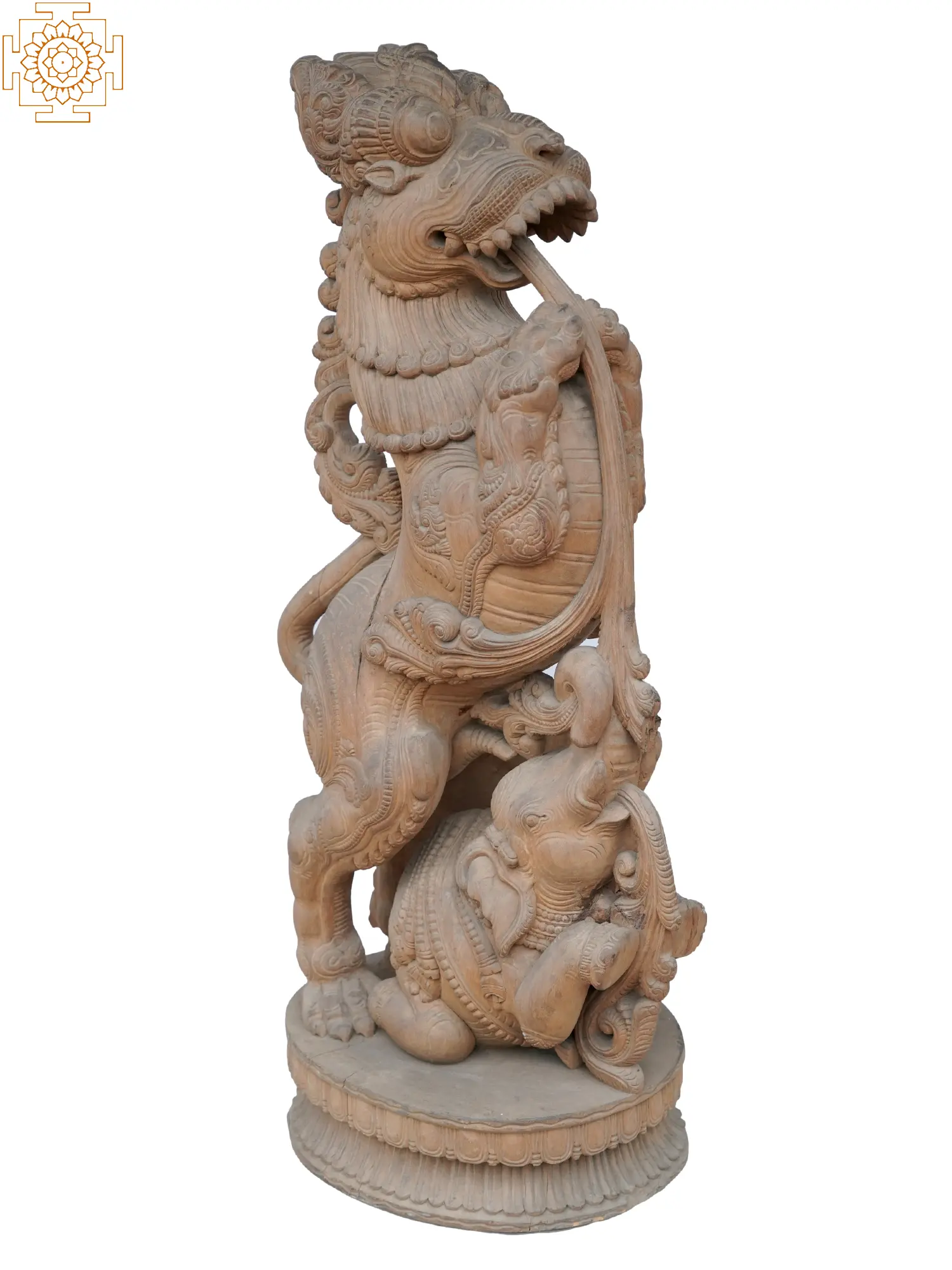 The traditional, finely carved sculpture known as yali is frequently seen in South Indian art and architecture. A mythological beast, the yali is usually shown as a hybrid of several animals, including horses, lions, elephants, and sometimes other mythological creatures. Skilled artists carve these composite creatures into wood to display their artistic skills and workmanship in a wooden yali sculpture.
