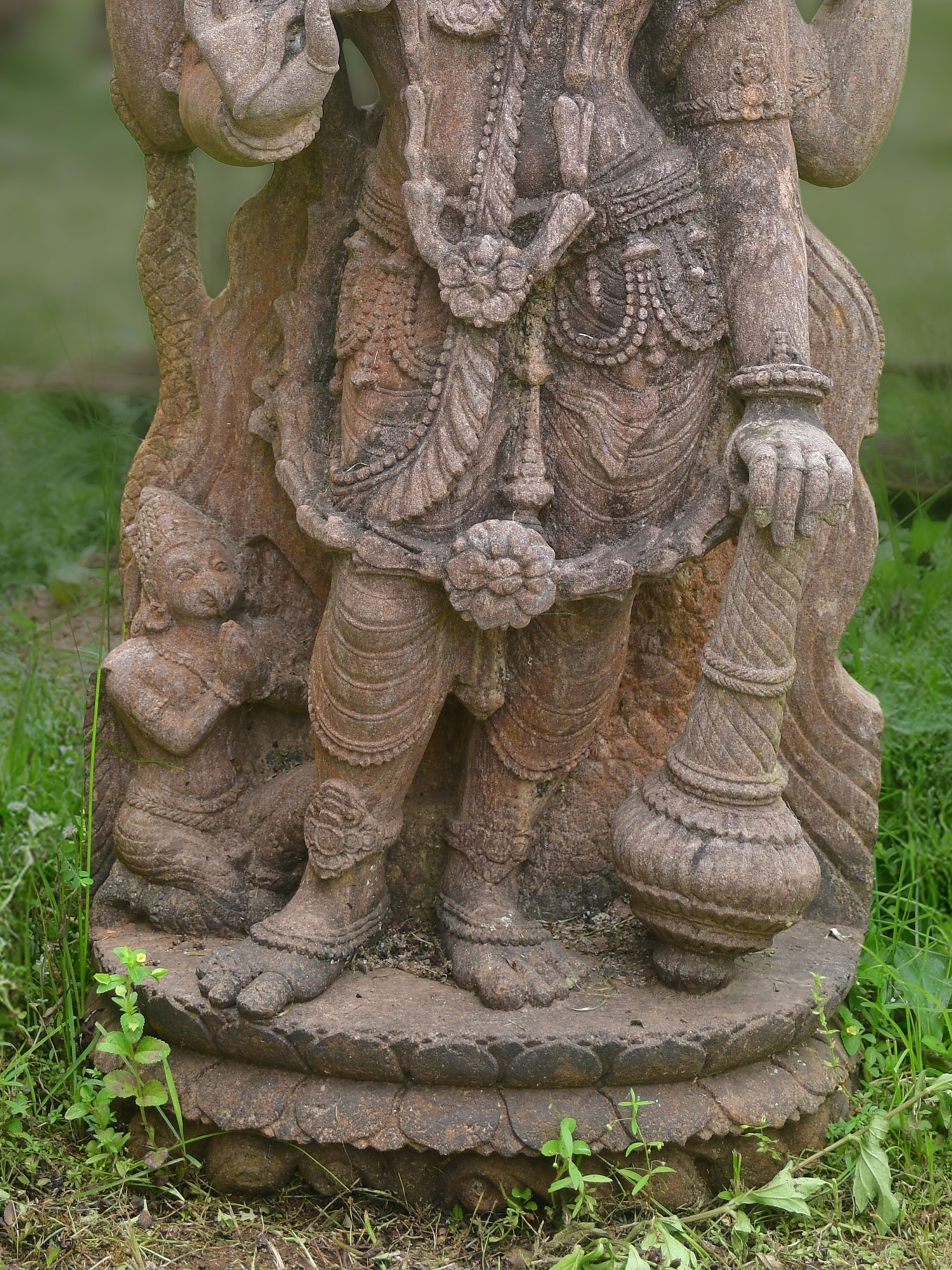Crafted from durable Orissa sandstone, this sculpture is designed to withstand the elements and age gracefully, developing a beautiful patina over time. To maintain its exquisite appearance, we recommend gentle cleaning with a soft brush to remove dust and debris. With proper care, this timeless piece will remain a cherished heirloom, a testament to artistry and devotion for generations to come.