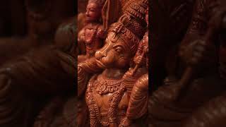 The Superfine Wooden Carved Lord Hanuman Carrying Lord Rama and Lakshman on His Shoulder is an award-winning sculpture created by the talented artist Shri. P. Vignesh from Kallakurichi, Tamil Nadu. Divided into four parts, this masterpiece exemplifies the intricate art of wood carving. The sculpture's base features two intricately carved lotus podiums, showcasing meticulous craftsmanship. The third part displays three columns, each portraying a different form of Hanuman, with the middle column depicting Panchamukhi Hanuman. The fourth and final part captures the awe-inspiring scene of Hanuman carrying Lord Rama and Lakshman on his shoulders, suggesting a joyful ride. The finely carved mountains, rivers, and trees give a realistic touch to the artwork, while the blooming flowers elevate its artistry.