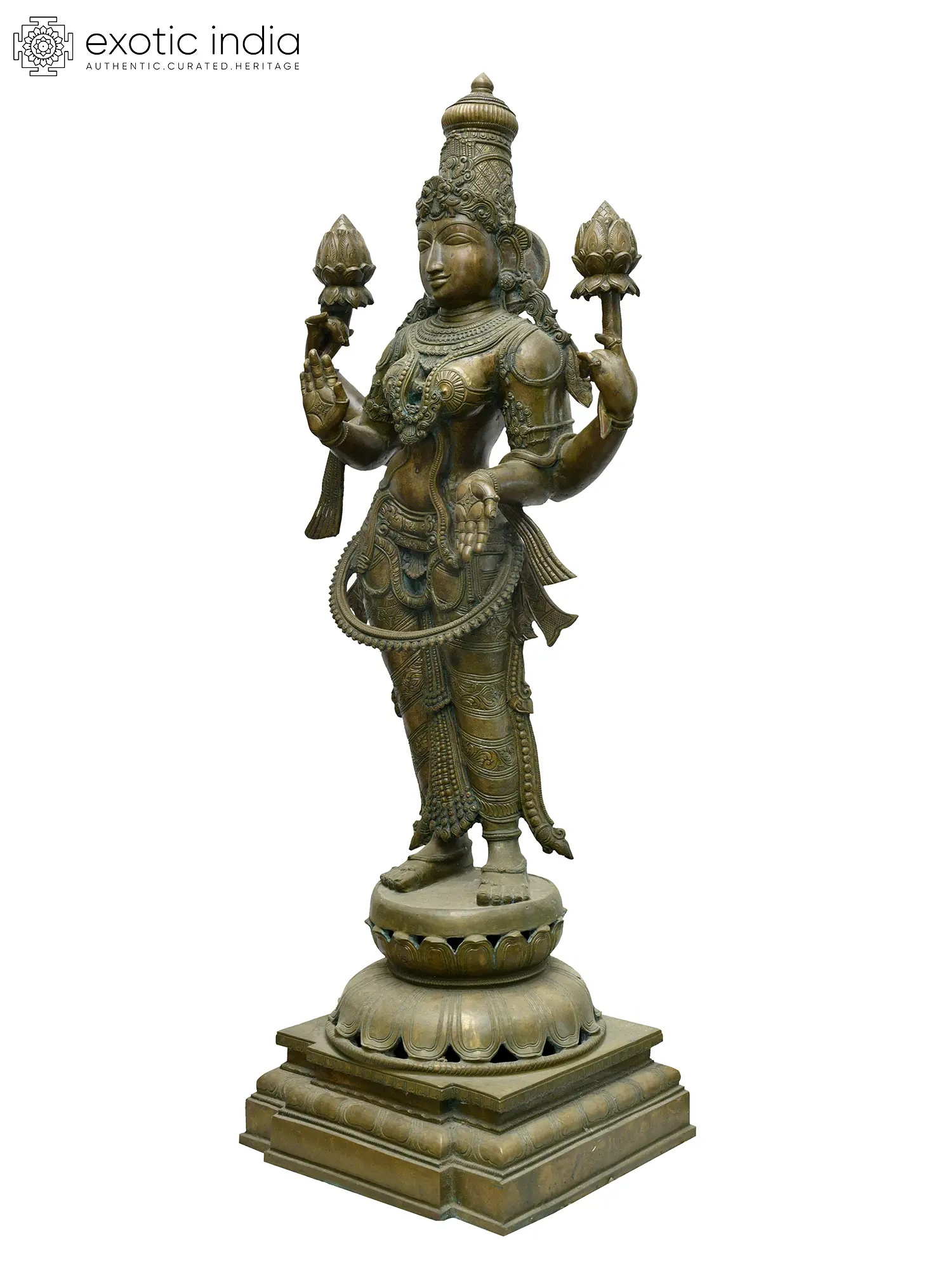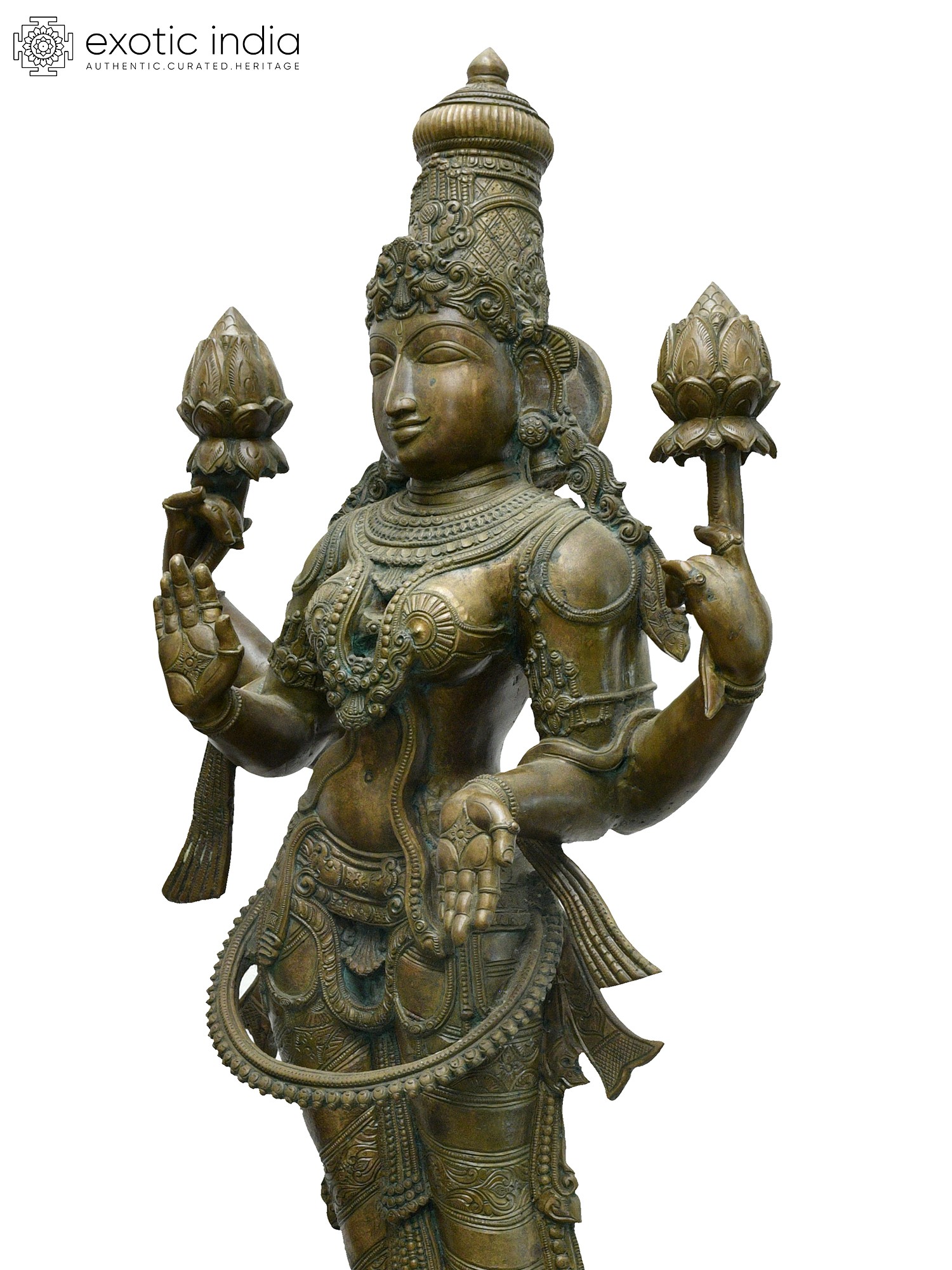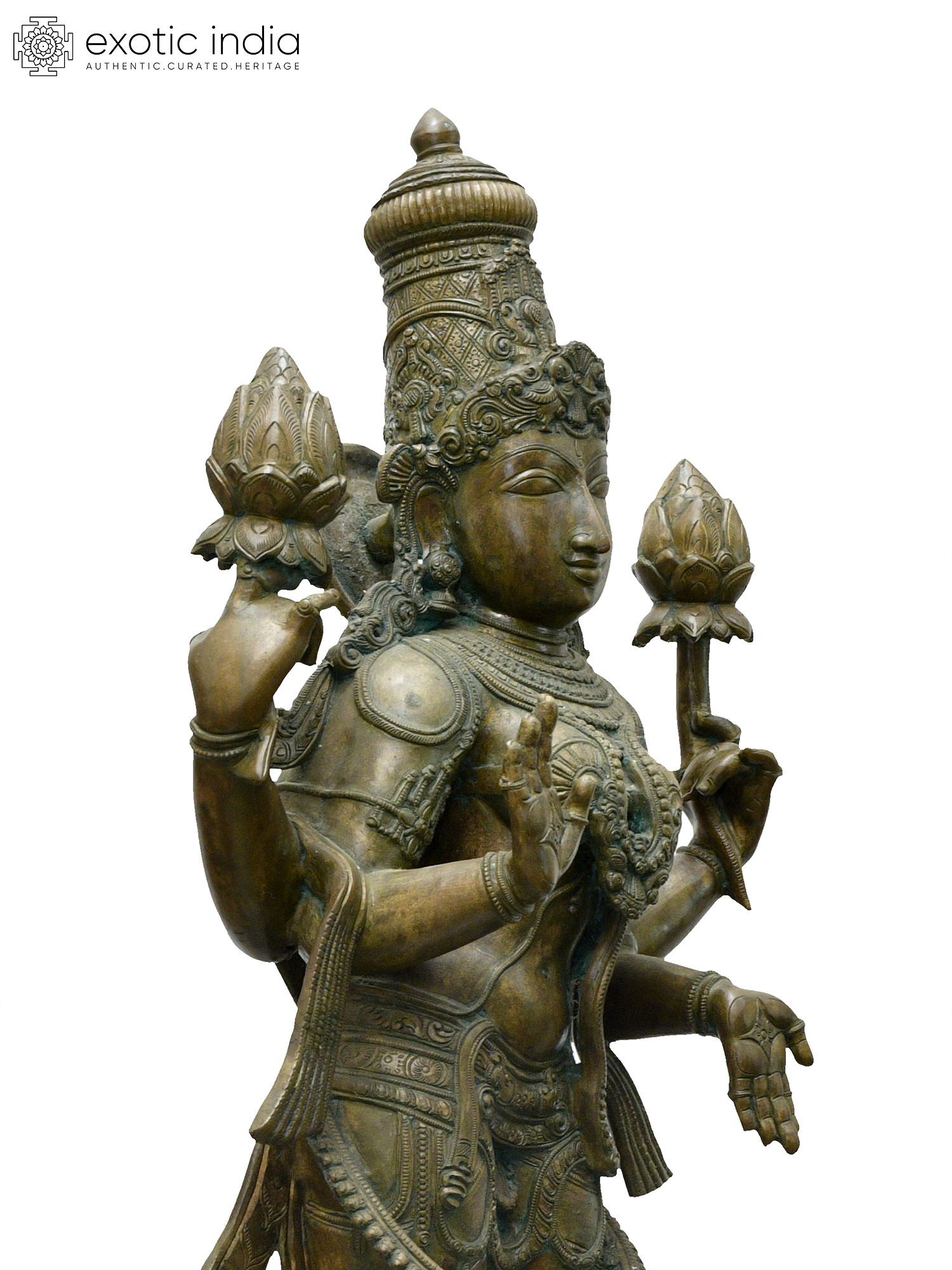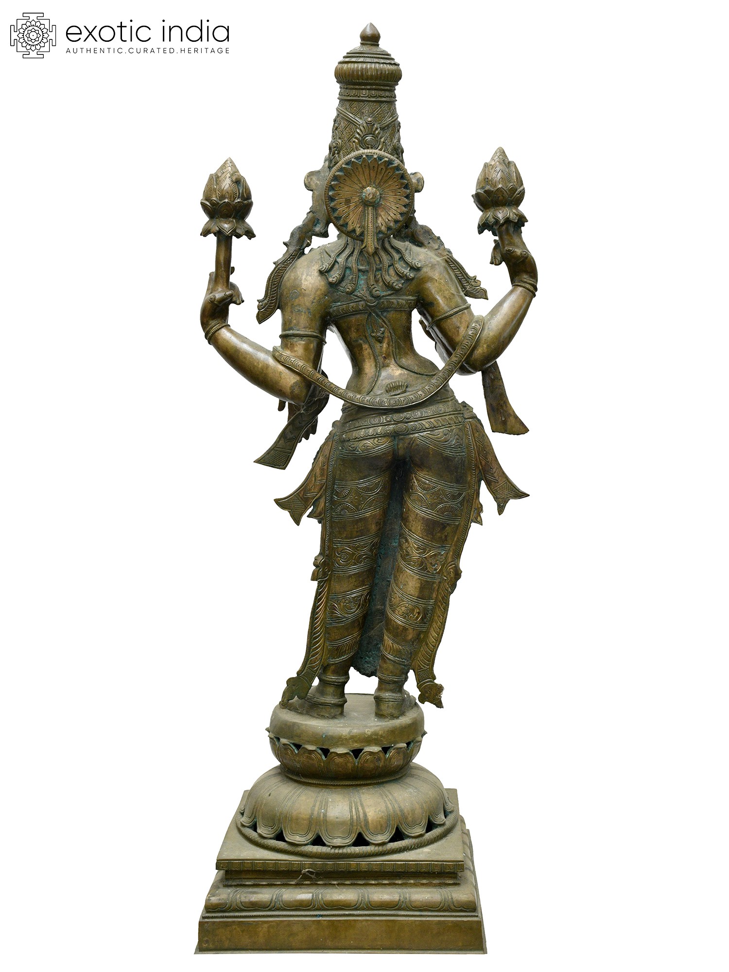 33" Large Lord Krishna Playing Flute with Kirtimukha Arch | Bronze Statue