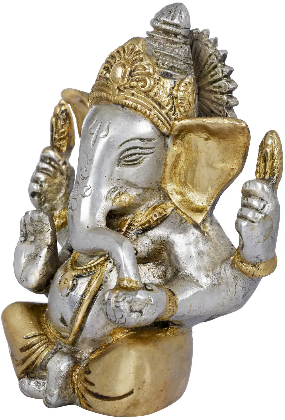Bhagawan Ganesha, seated with crossed legs, embodies divine blessings and wisdom. With his large ears symbolizing receptivity and attentive listening, he holds a noose in each of his two hands at the back, signifying his ability to guide and remove obstacles. His front right hand is in the Blessing gesture, signifying his willingness to offer protection and help in times of Need. As the Remover of Obstacles and the Lord of Beginnings, Ganesha’s presence instills confidence in life’s journey. Perfect for home decor or sacred spaces, this handmade brass sculpture embodies the wisdom and benevolence of Lord Ganesha, invoking blessings for new beginnings.