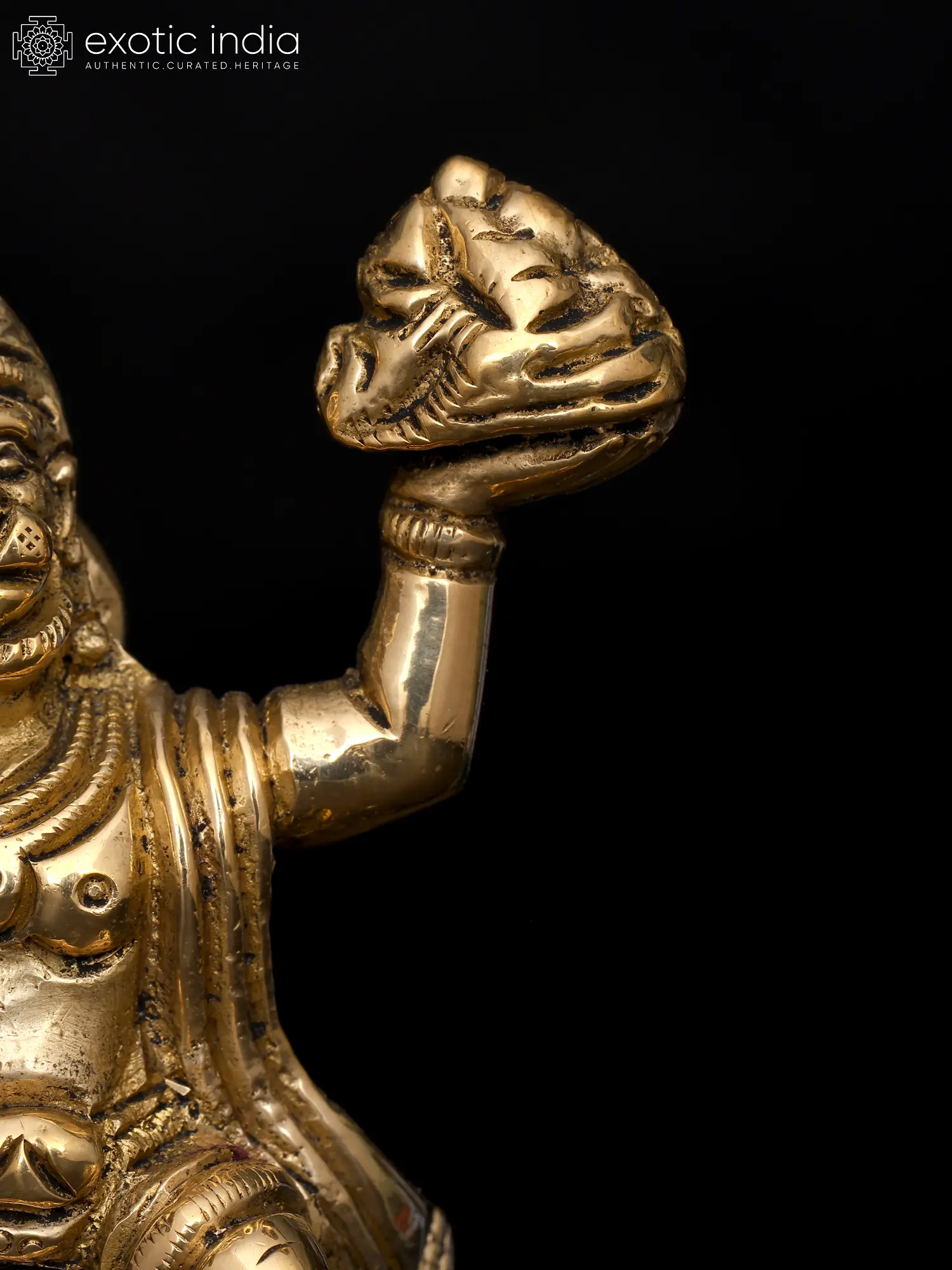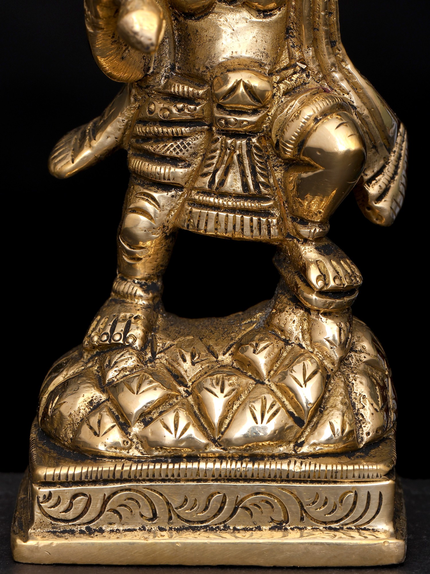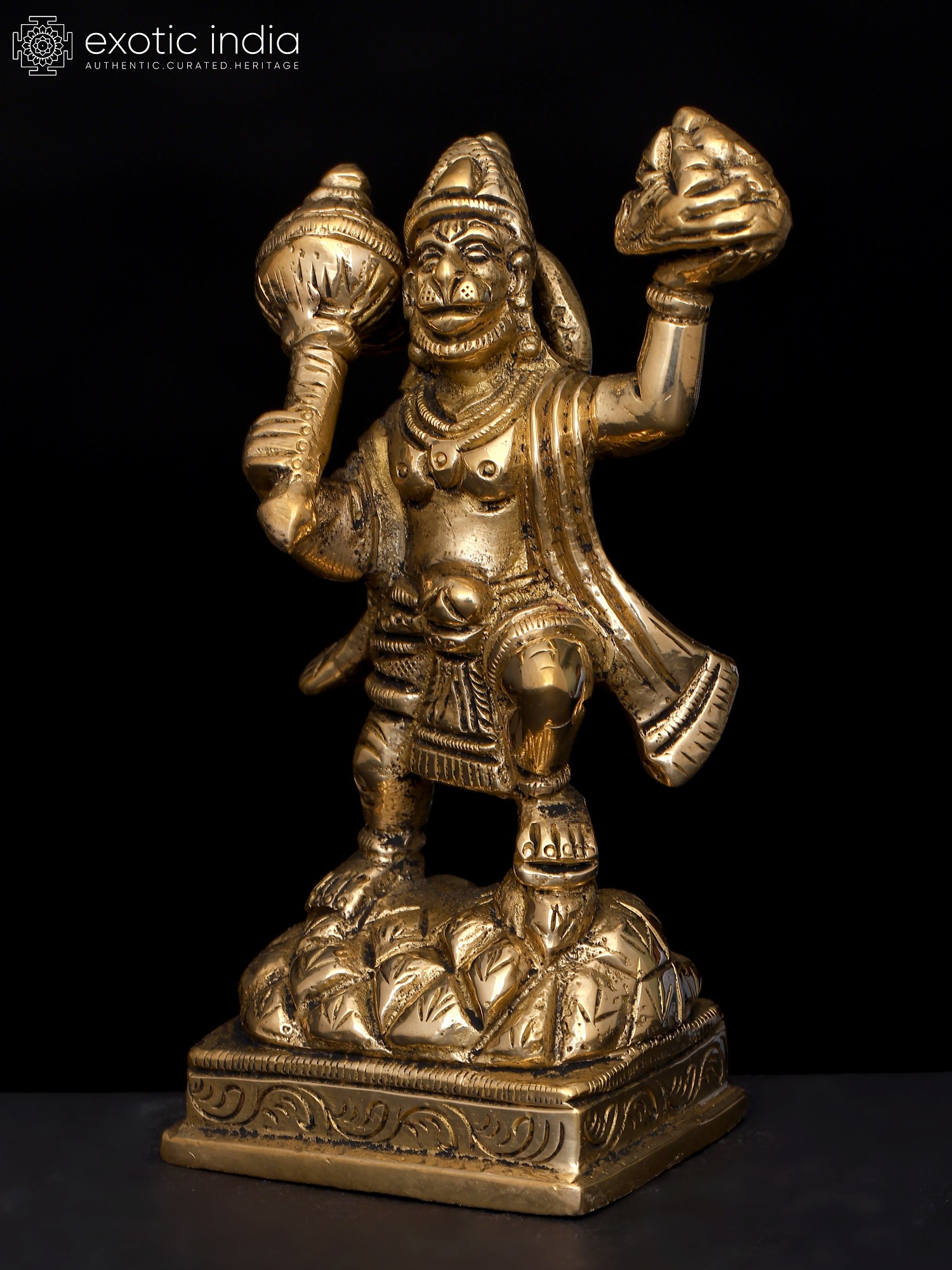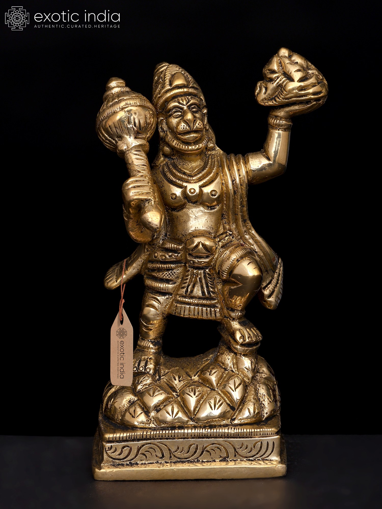 In the epic Ramayana, a tale of devotion and valour, Hanuman’s unwavering commitment shines through when Lord Rama’s brother, Lakshmana, is grievously wounded in War. To save him, Hanuman embarks on a daunting quest to procure the life-restoring “Sanjeevani Booti”, which grows on a distant mountain. Fearless and determined, Hanuman lifts the entire mountain and carries it across the skies. His selflessness and boundless strength inspire reverence, reinforcing the significance of devotion and loyalty. It is believed that worshipping this form of Lord Hanuman gives you courage, boosts your focus and fosters positivity. Crafted in brass, this artwork inspires you to find inner strength and unwavering faith in times of adversity.