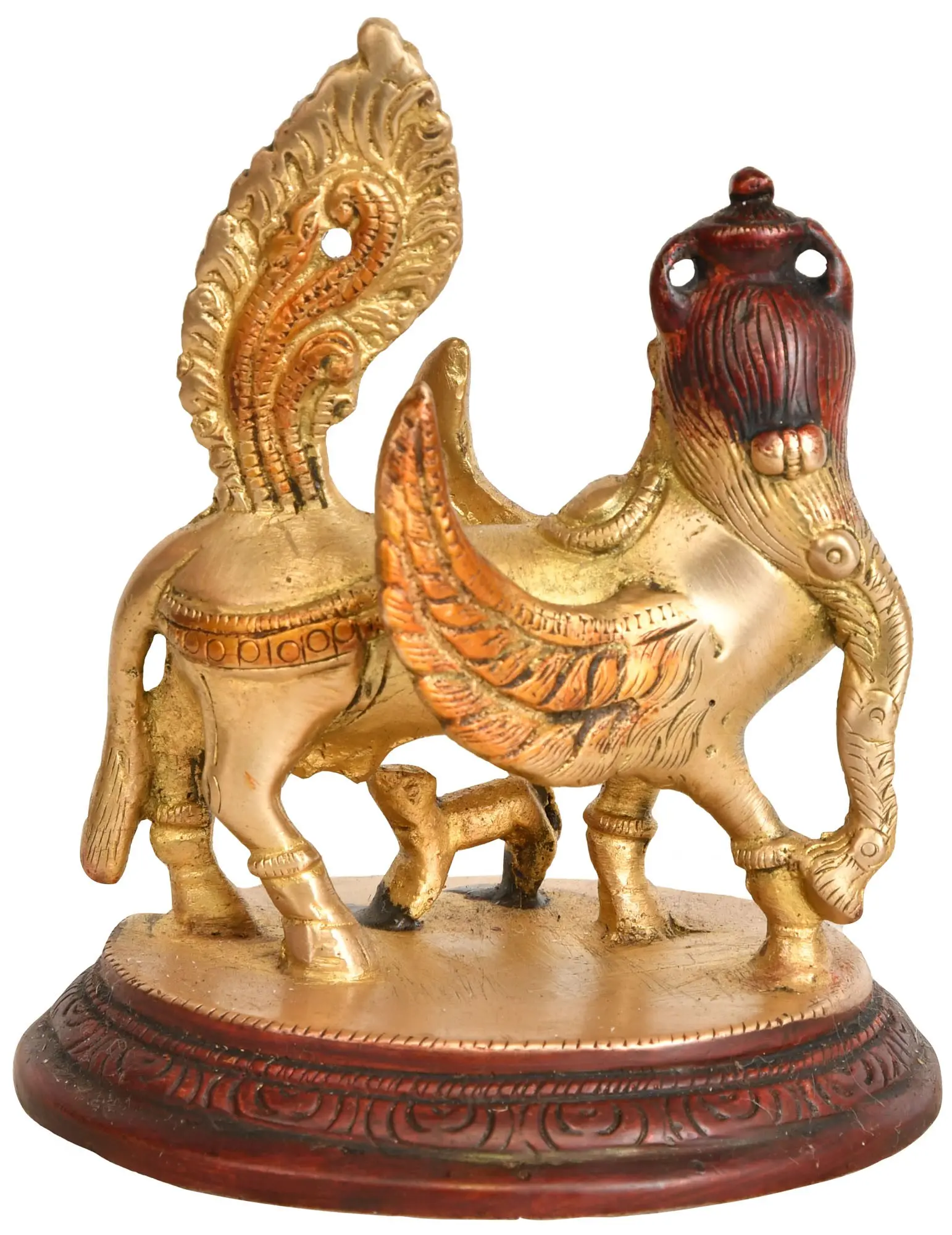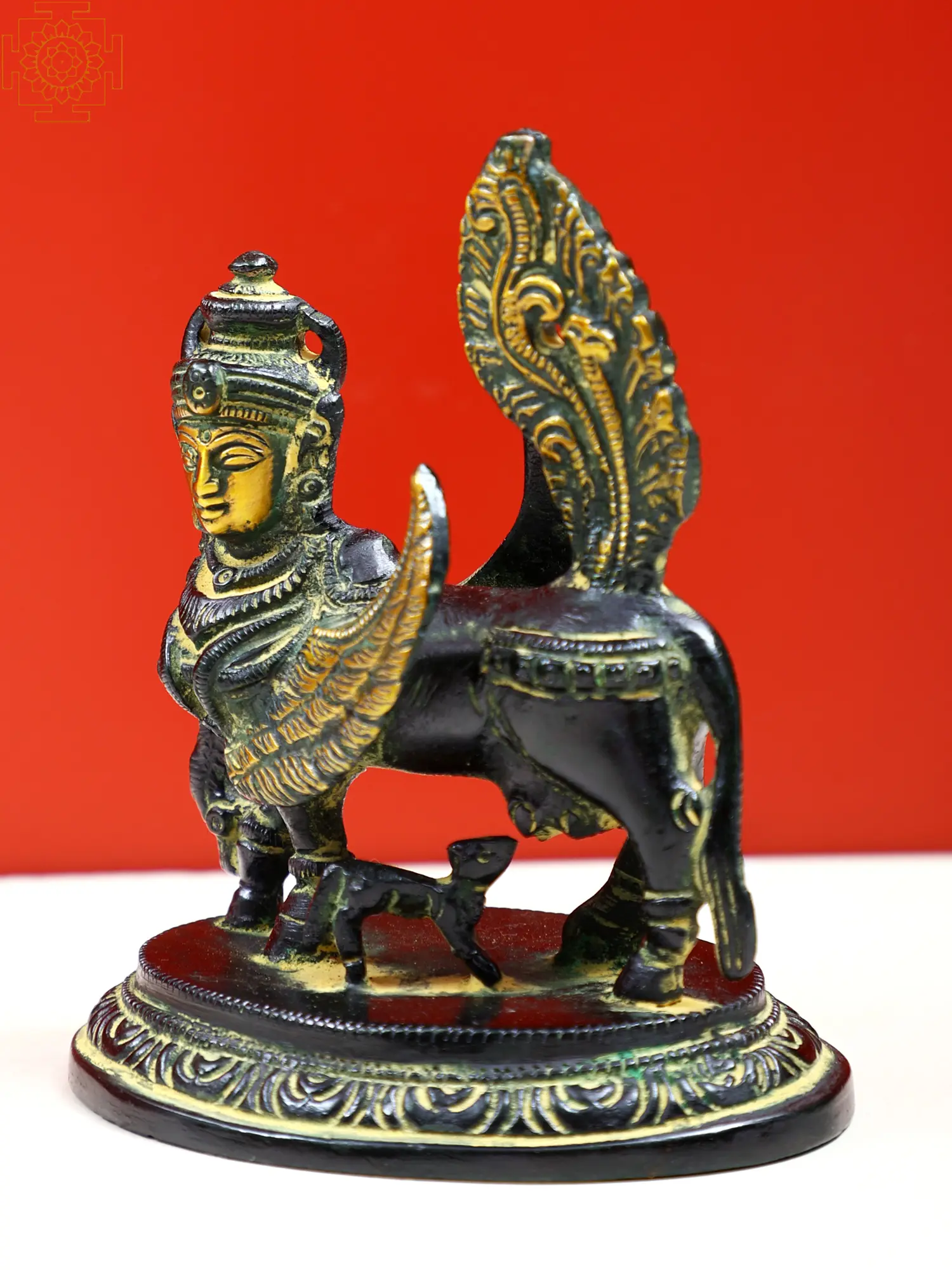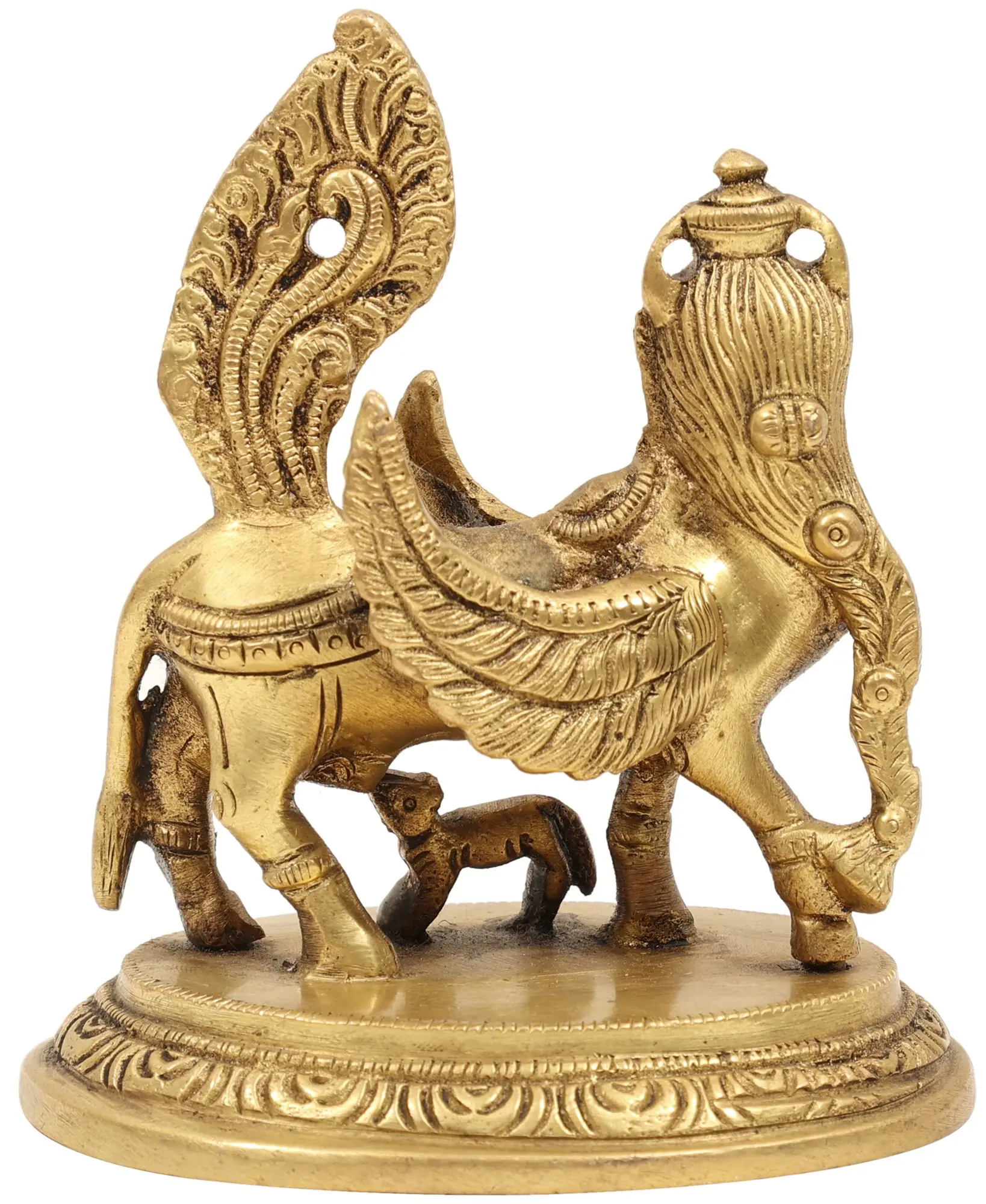 Kamadhenu, often referred to as the "mother of all cows," holds a sacred place in Hindu mythology as a harbinger of prosperity, fulfilment, and nourishment. As you hold this sculpture, you hold a symbol of the universe's ability to provide and sustain, and a connection to the divine energies that govern all aspects of life. Place this Brass Sculpture of Kamadhenu in your sacred space, living area, or anywhere that craves a touch of spiritual resonance.
