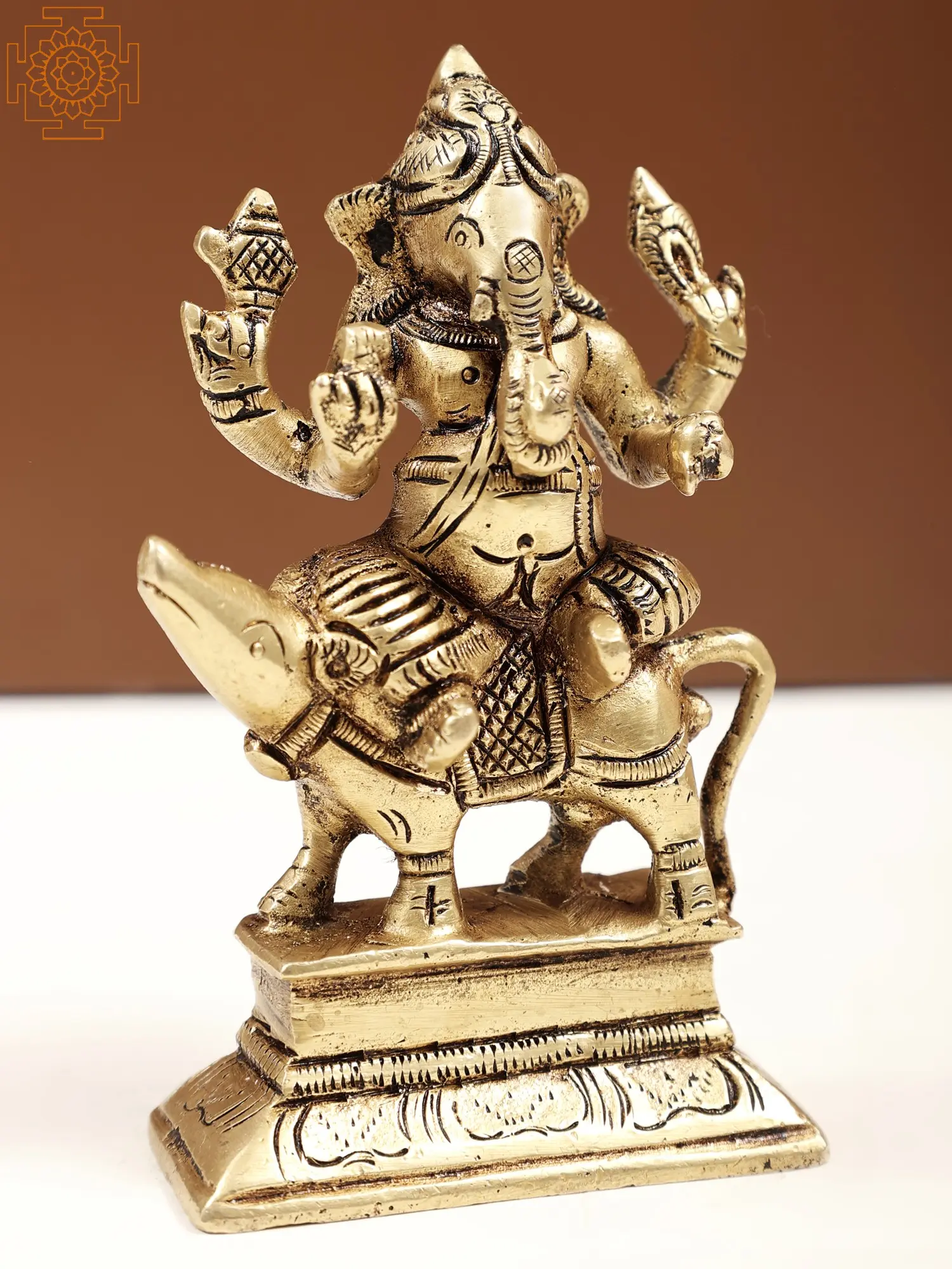 In this brass rendition, Ganesha, also known as the “God of Beginnings”, is depicted seated on his mount (Mushaka), symbolising his mastery over obstacles. This sacred artwork represents Ganesha’s ability to navigate life’s challenges with wisdom and grace. The mouse, his humble mount, signifies the importance of humility and adaptability in overcoming adversity. In this form, He clutches a goad, symbolising his ability to steer individuals in the right direction. While the noose represents his power to bind negative influences and temptations. As a symbol of wisdom, humility, and triumph over obstacles, this cherished artwork will infuse your surroundings with divine blessings.