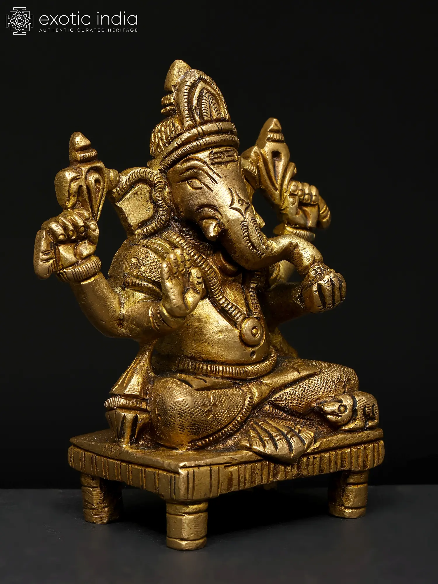 5" Pair of Throne Ganesha and Lakshmi Statue in Brass | Handmade | Made in India