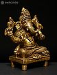 8" Relaxing Ganesha Idol with Cushion | Handmade Brass Statues | Made in India