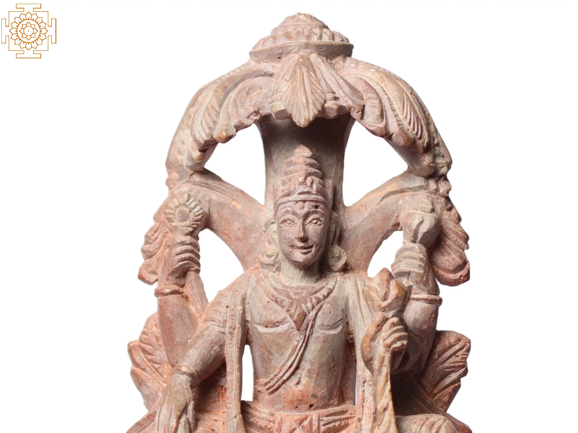 Chaturbhujadhari Lord Narayana seated in Lalitasana pink stone sculpture transcends being a mere decorative piece; it becomes a sacred symbol of divine presence and spiritual grace. Placing this sculpture in your home, meditation space, or temple will create an atmosphere of devotion and inner peace, inviting you to embark on a spiritual journey and connect with the eternal and infinite aspect of divinity.