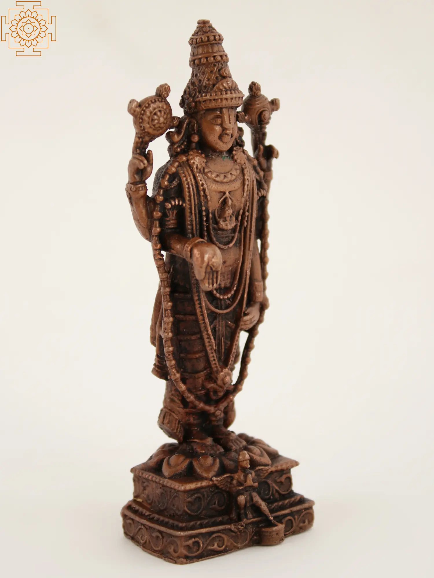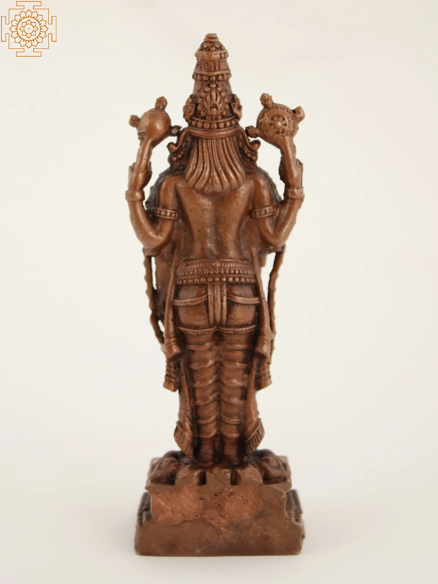 4" Copper Small Hindu God Venkateswara Idol With Garuda