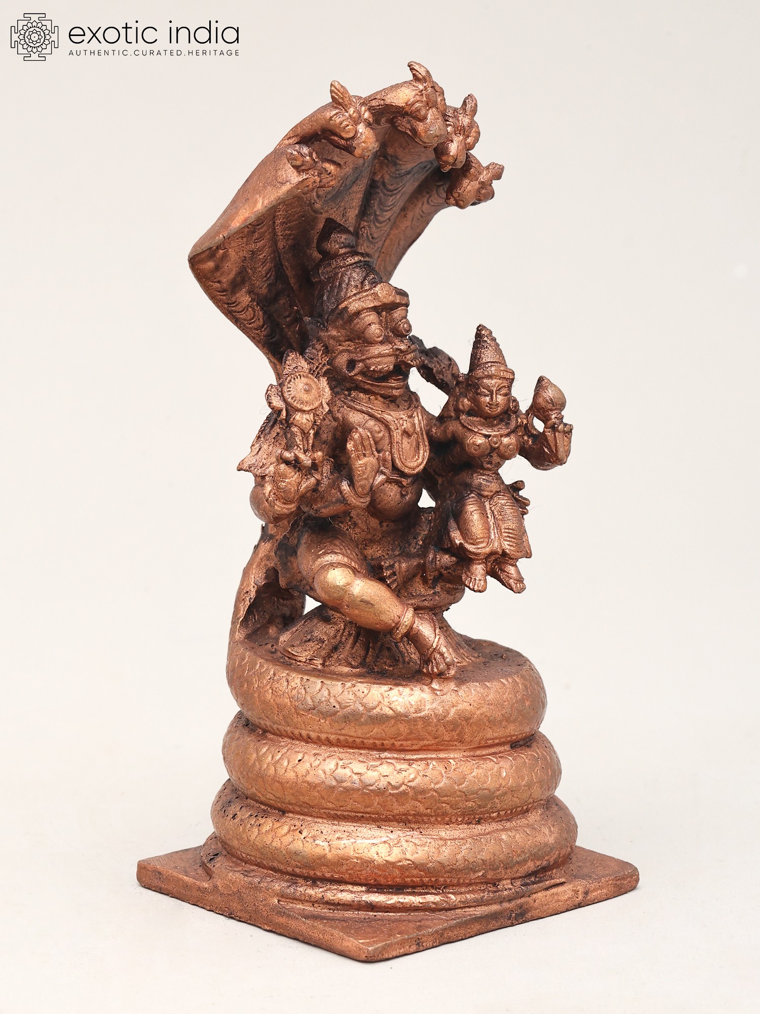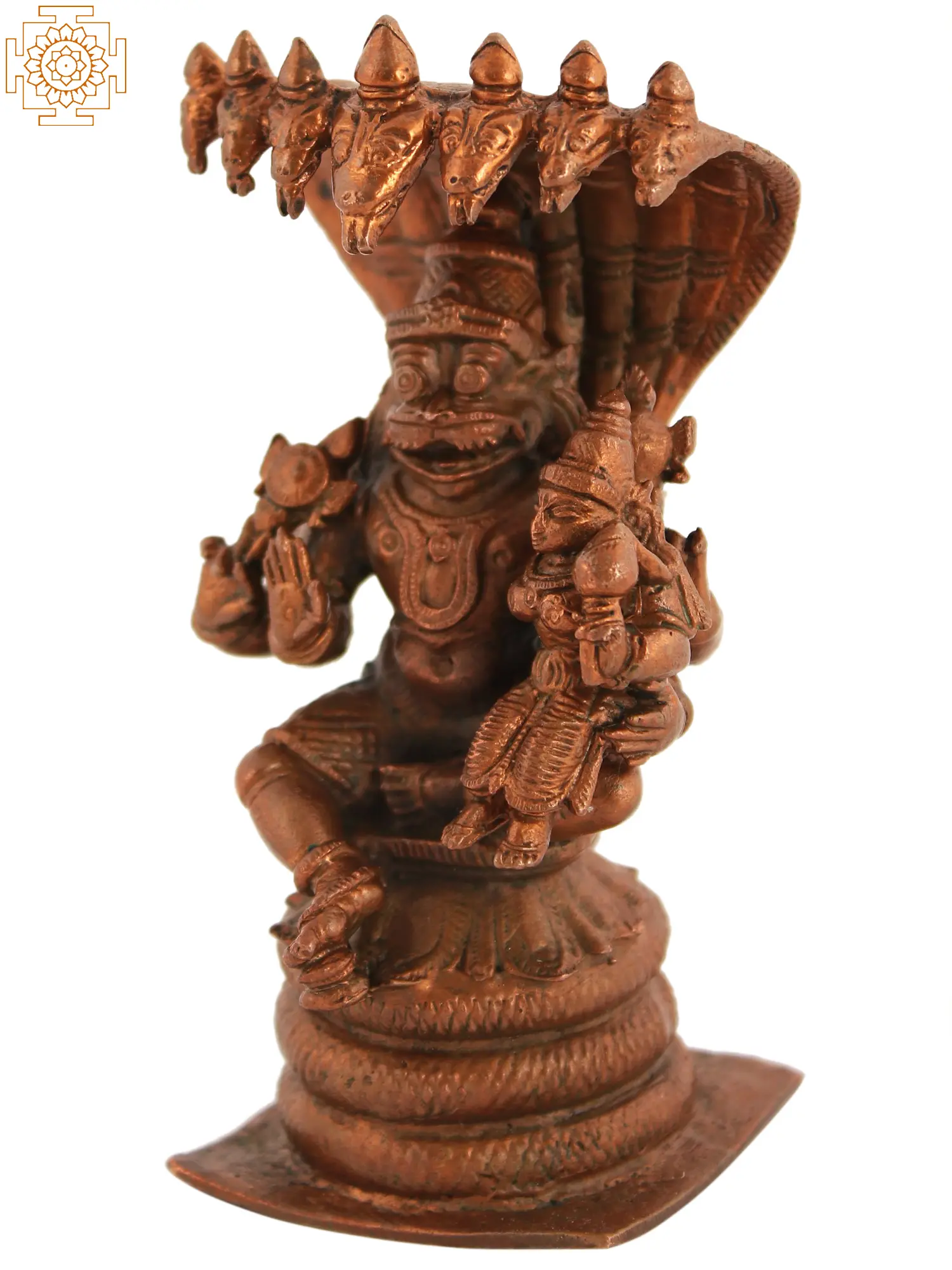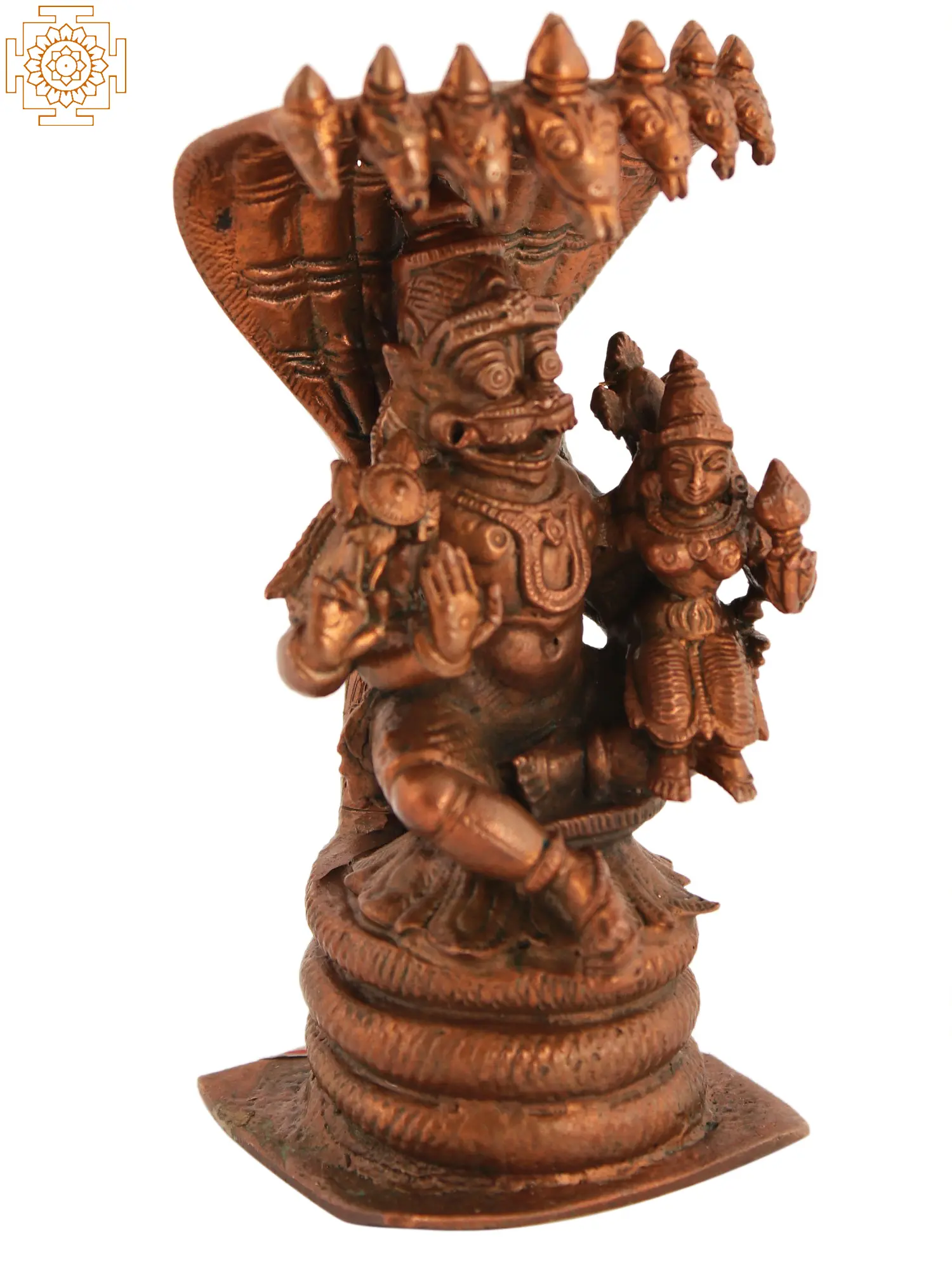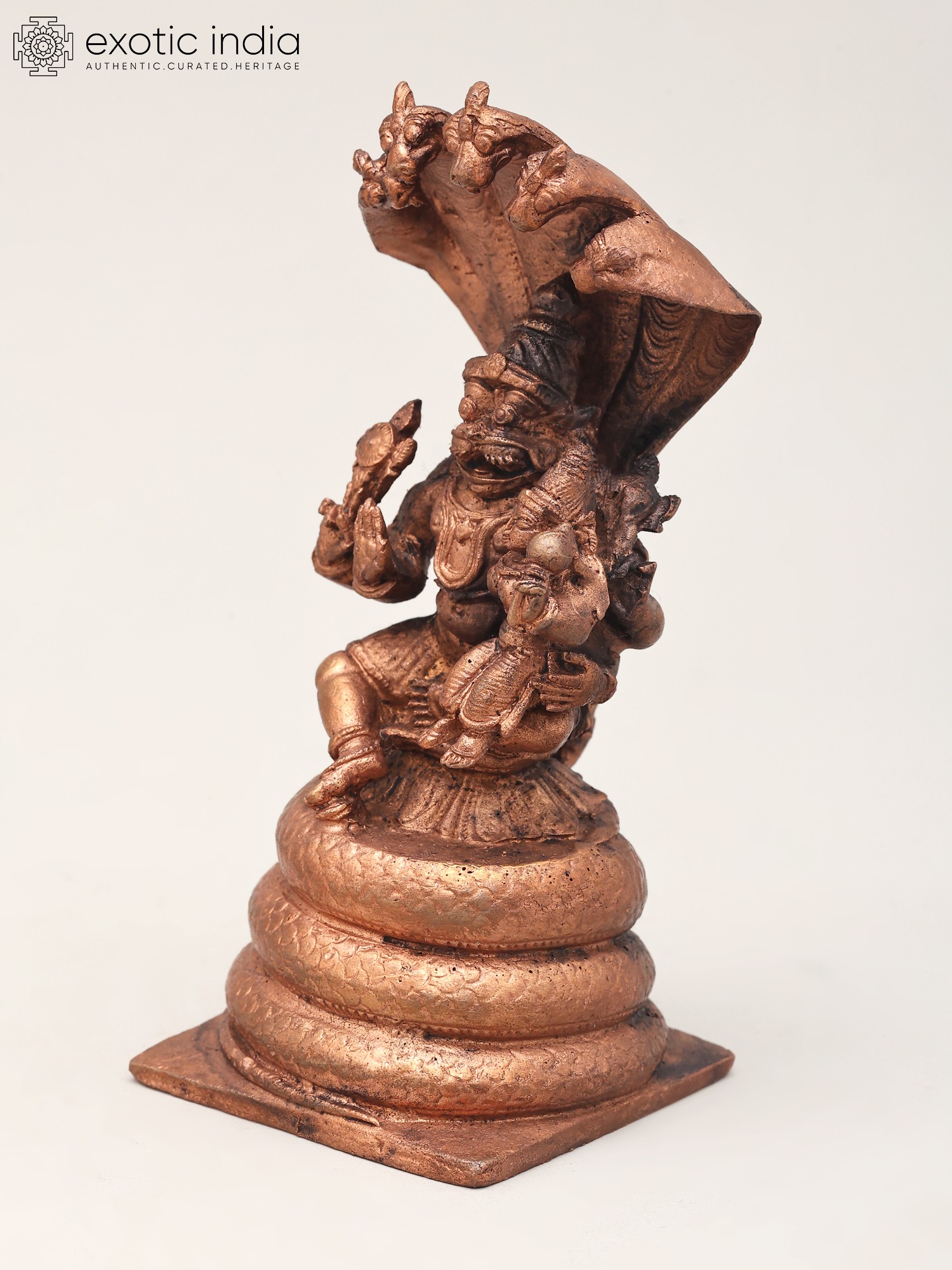 5" Small Lord Narasimha in Yoga Mudra Protected by Sheshnag | Copper Statue