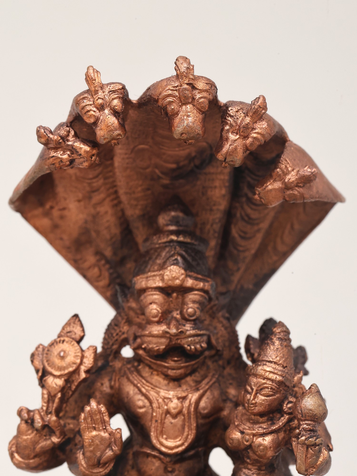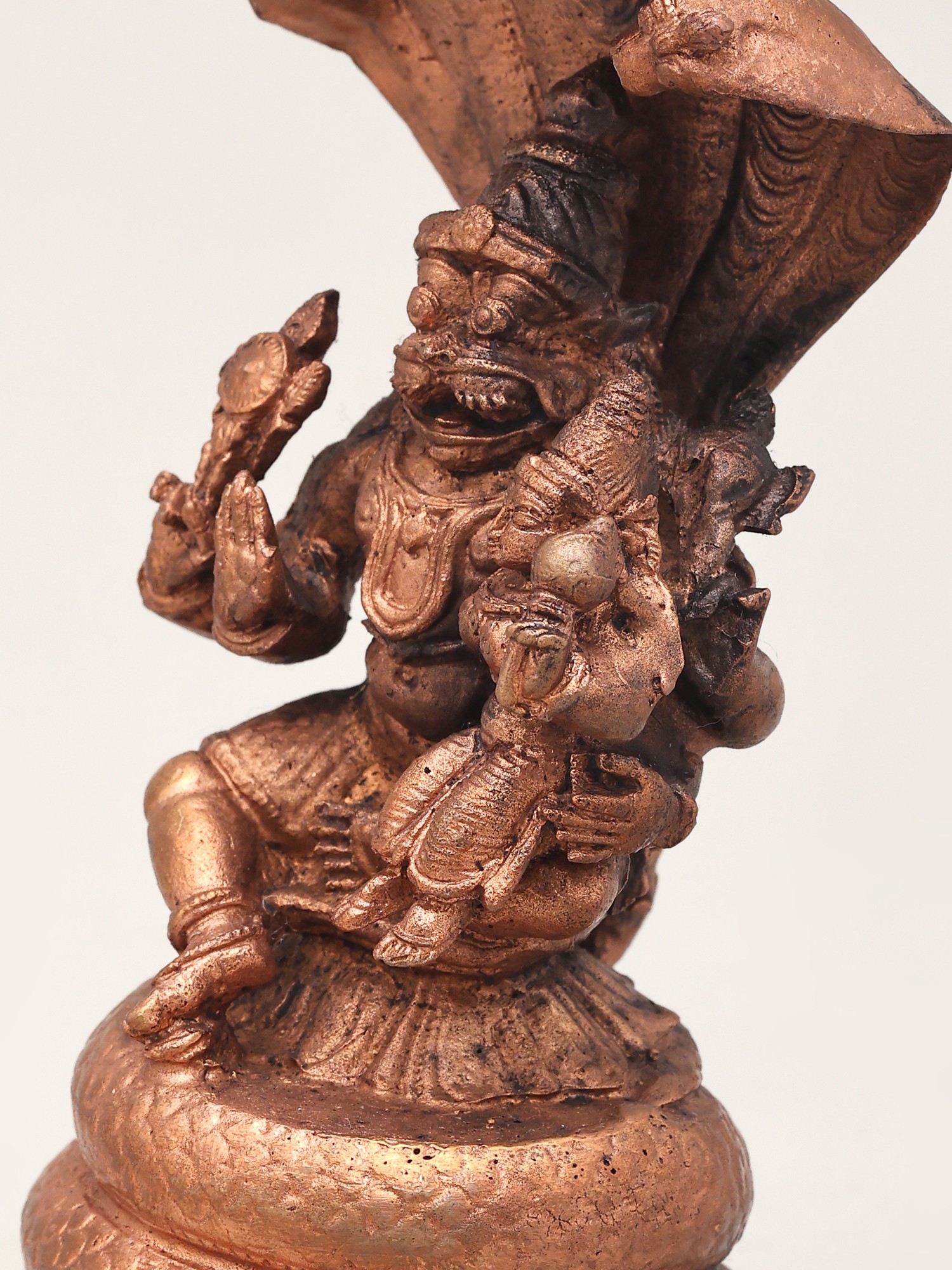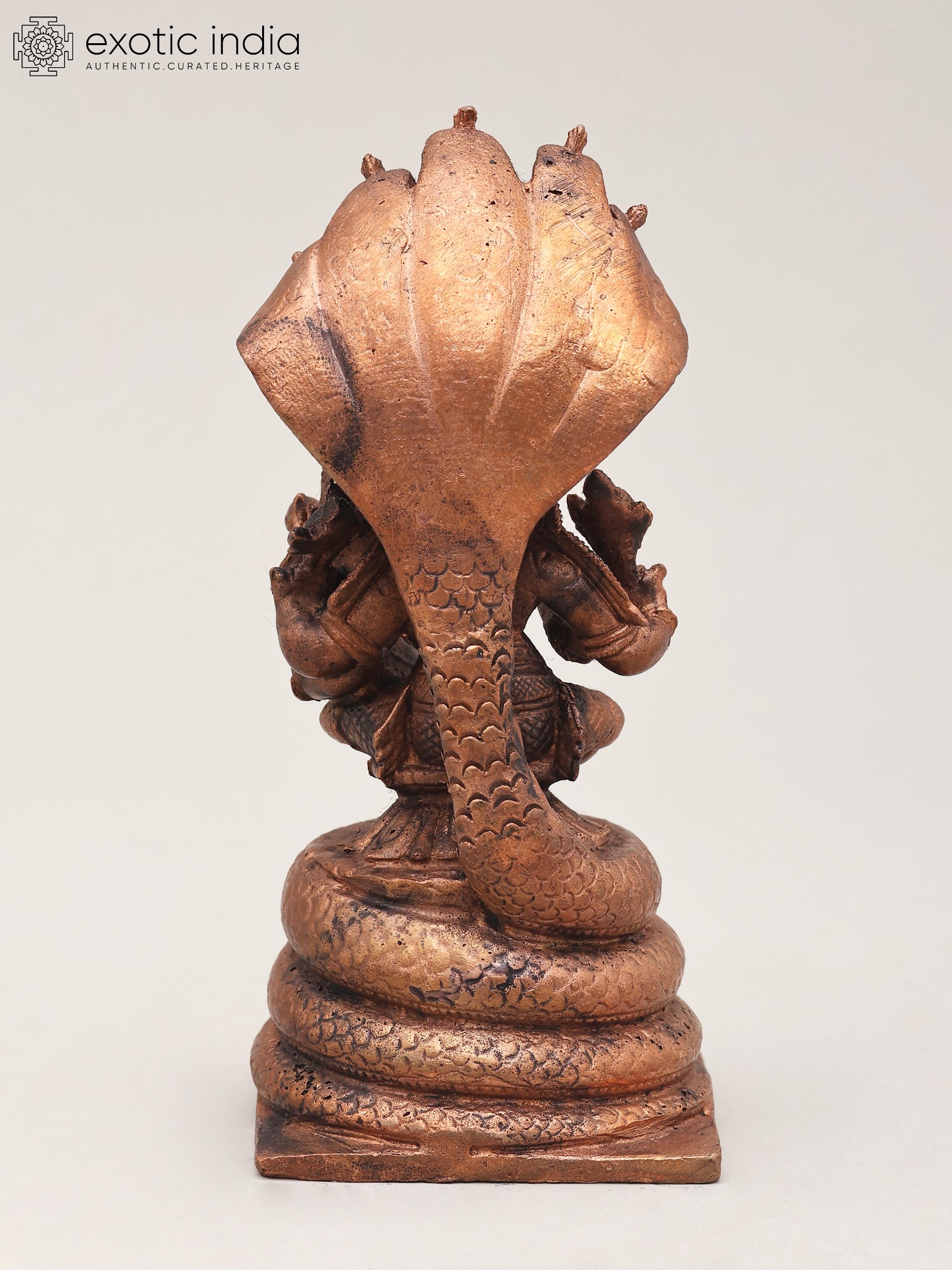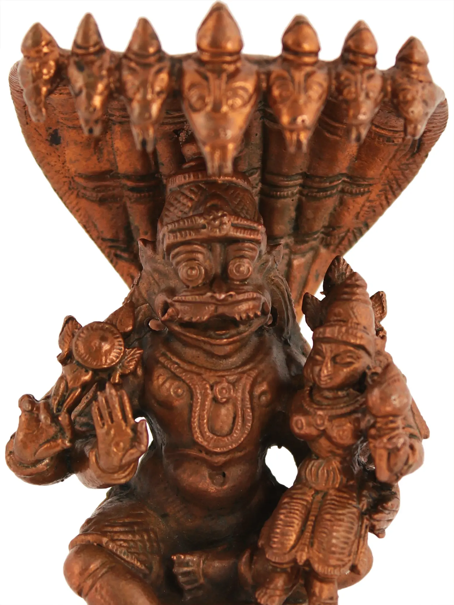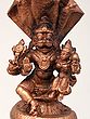 5" Small Lord Narasimha in Yoga Mudra Protected by Sheshnag | Copper Statue