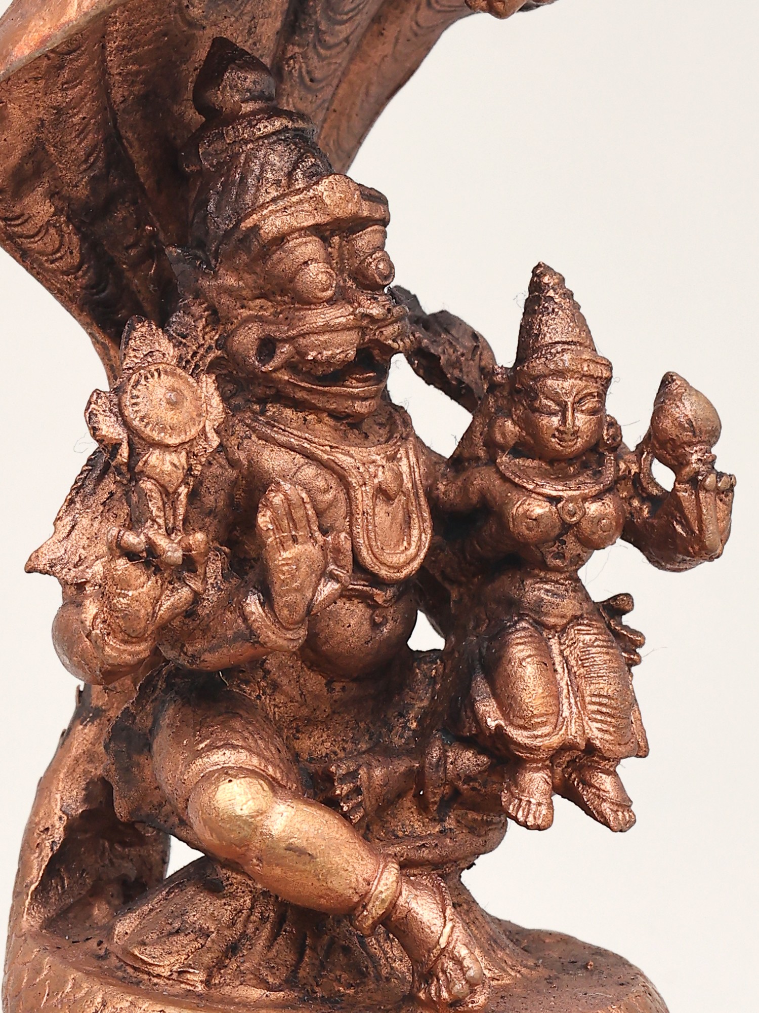 6" Small Standing Lord Narasimha with Goddess Lakshmi | Copper Statue