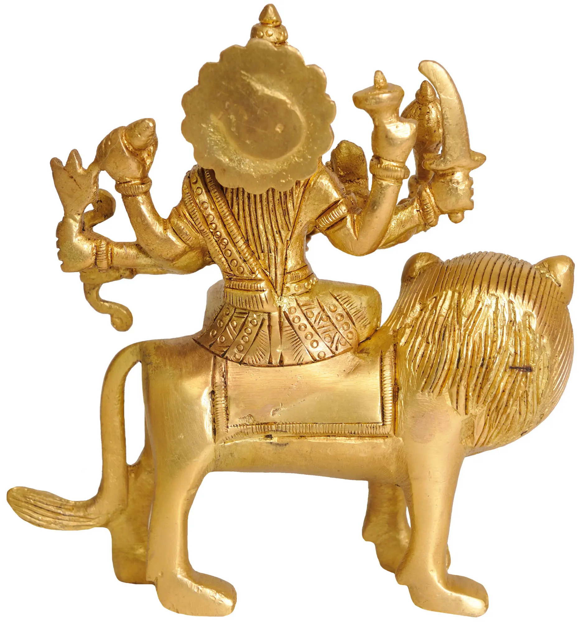 Simhavahini Maa Durga is presented in this small brass statue, draped in a lovely saree, ornamented royally, and sitting in a posture facing the devotee, ready to reach and salvage them from the troubles of existence. Devi Durga carries her divine weapons in her eight arms, symbolizing her ability to guard her children in the face of adversities, and the gentle smile on her countenance signifies the blessedness Devi brings to the lives of her Bhaktas.