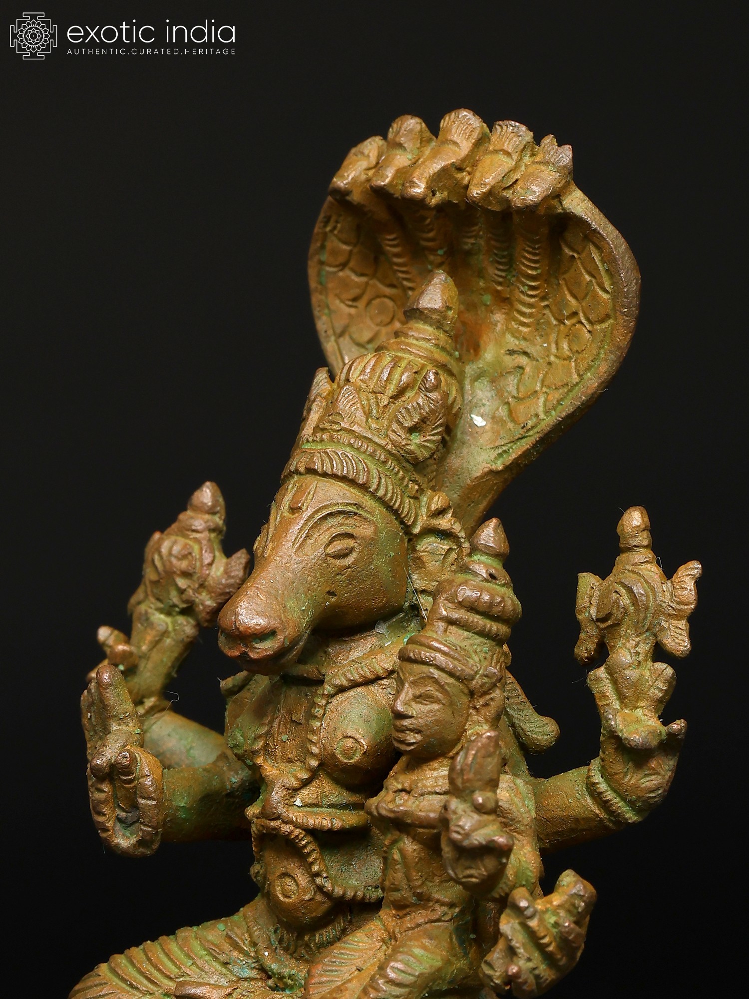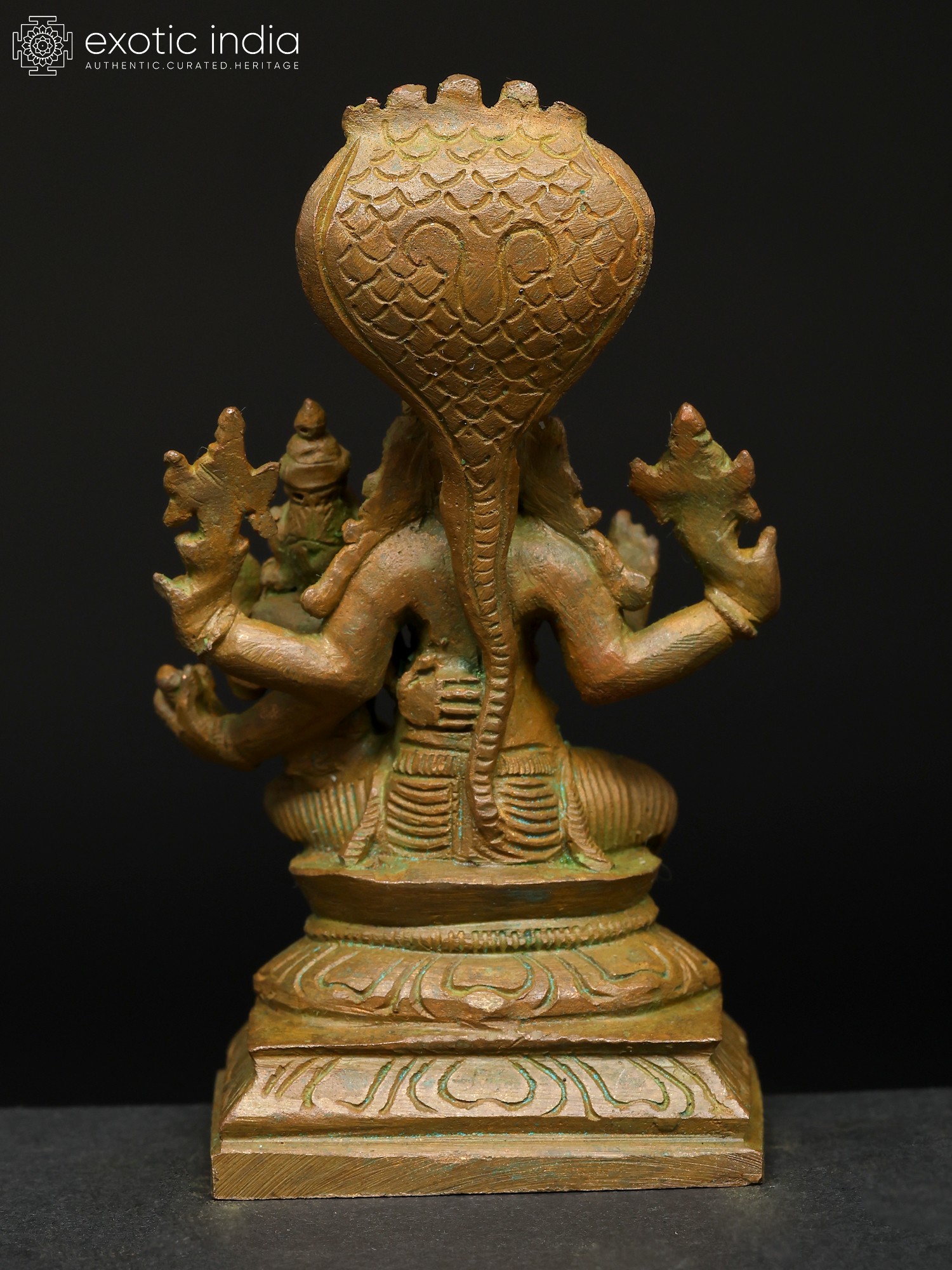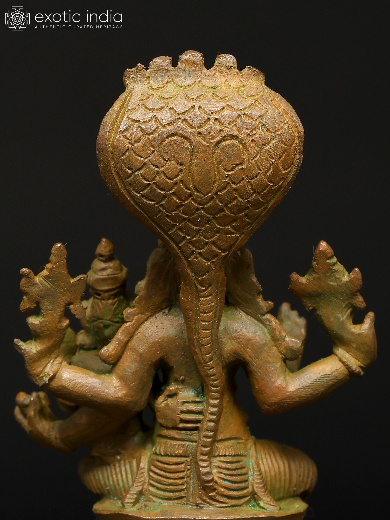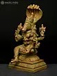 12" Four-Armed Standing Vishnu with Five-Hooded Shesha Atop In Brass | Handmade | Made In India
