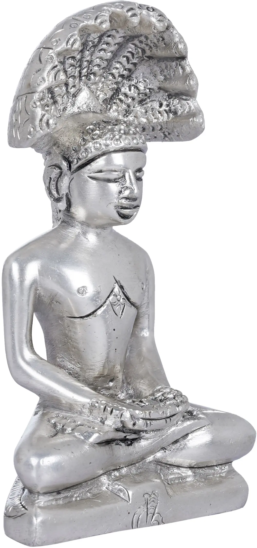 Parshvanatha, the 23rd Tirthankara in Jainism, holds a special distinction as the only one to be bestowed with the title of Kalikalkalpataru (Kalpavriksha) in the current age of Kali Yuga. Typically portrayed in a lotus or kayotsarga posture, depictions feature his head shielded by a multi-headed serpent, forming a protective umbrella-like canopy. The snake emblem, symbolizing Parshvanatha, is prominently carved or stamped beneath his legs, serving as a distinctive identifier in sculptures and paintings. His teachings continue to inspire a path of righteousness and spiritual awakening in Jain philosophy.