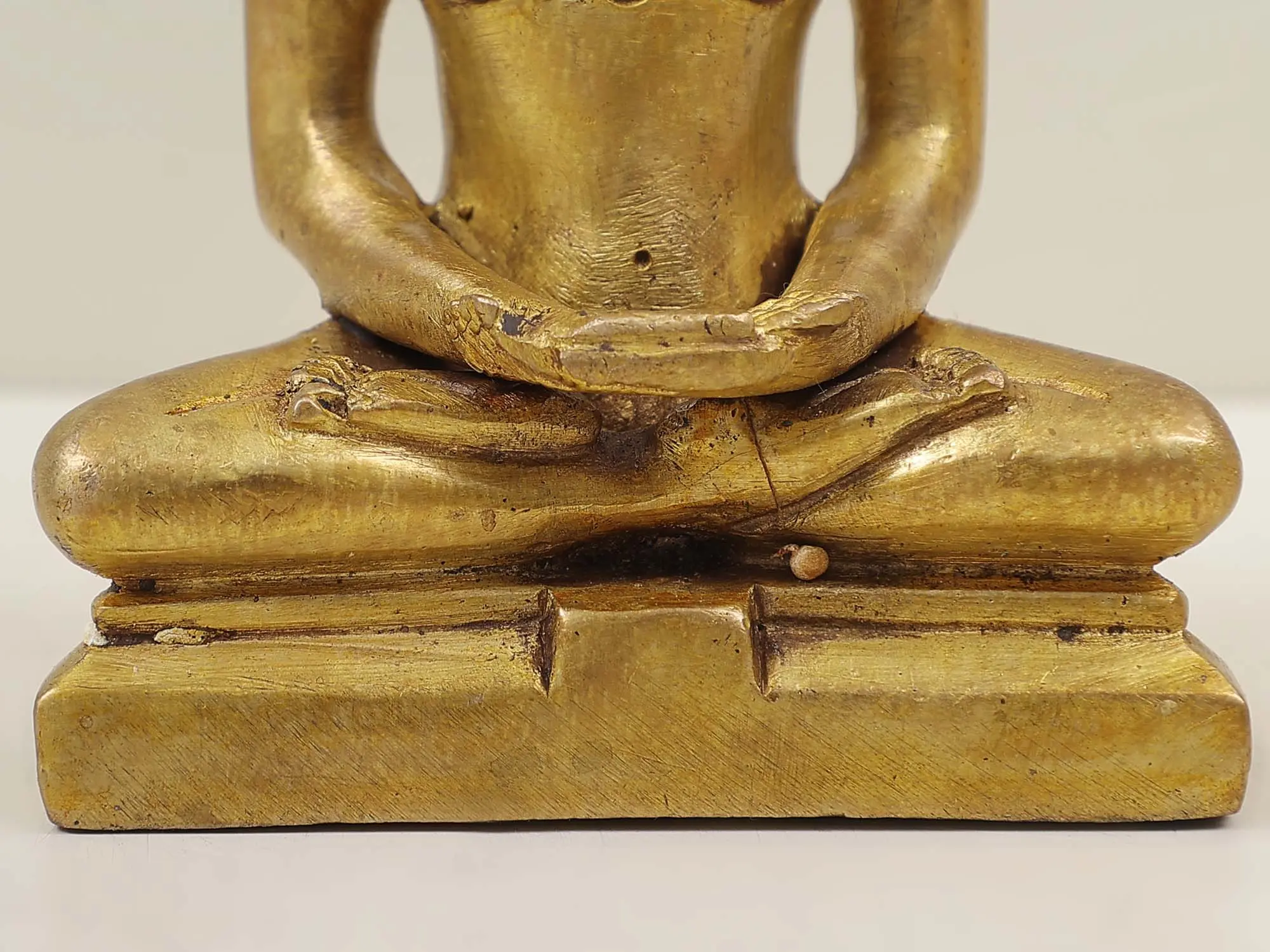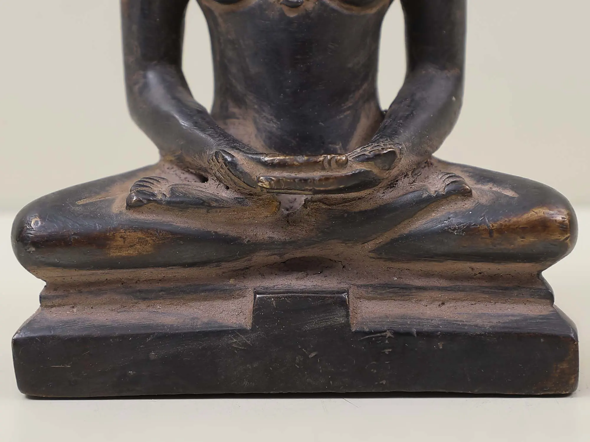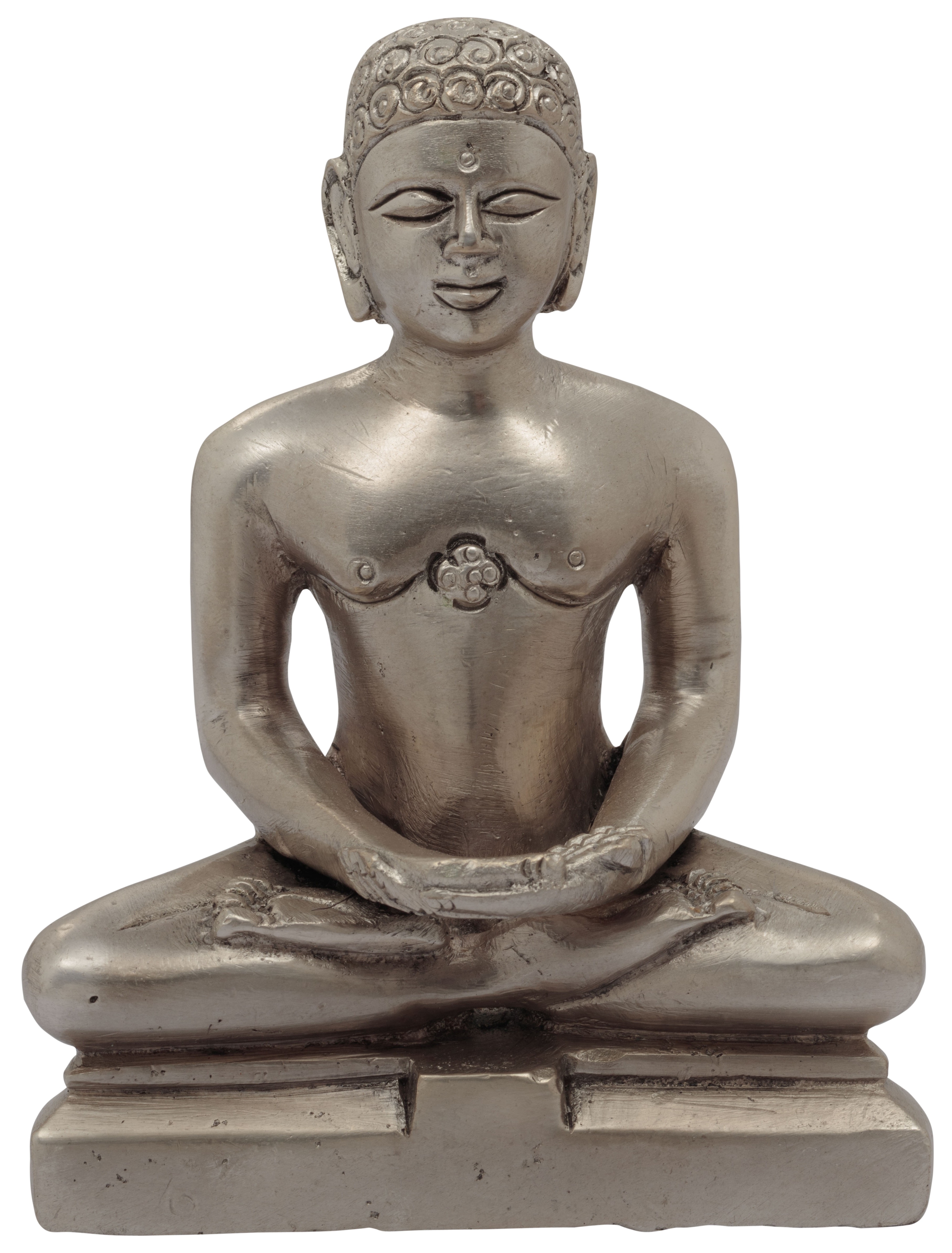 "The soul knows no birth or death." This minutely detailed brass sculpture embodies the enlightened spirit of a Jain Tirthankara, a liberated soul who guides others toward liberation. With serene eyes gazing inward, the Tirthankara's deep meditation resonates. The hand gestures symbolize fearlessness, detachment, and spiritual enlightenment. Adorned in simple attire, the Tirthankara emphasizes detachment from materialism. The beautiful sculpture here invites one to seek the timeless wisdom within, transcending the cycles of birth and death.