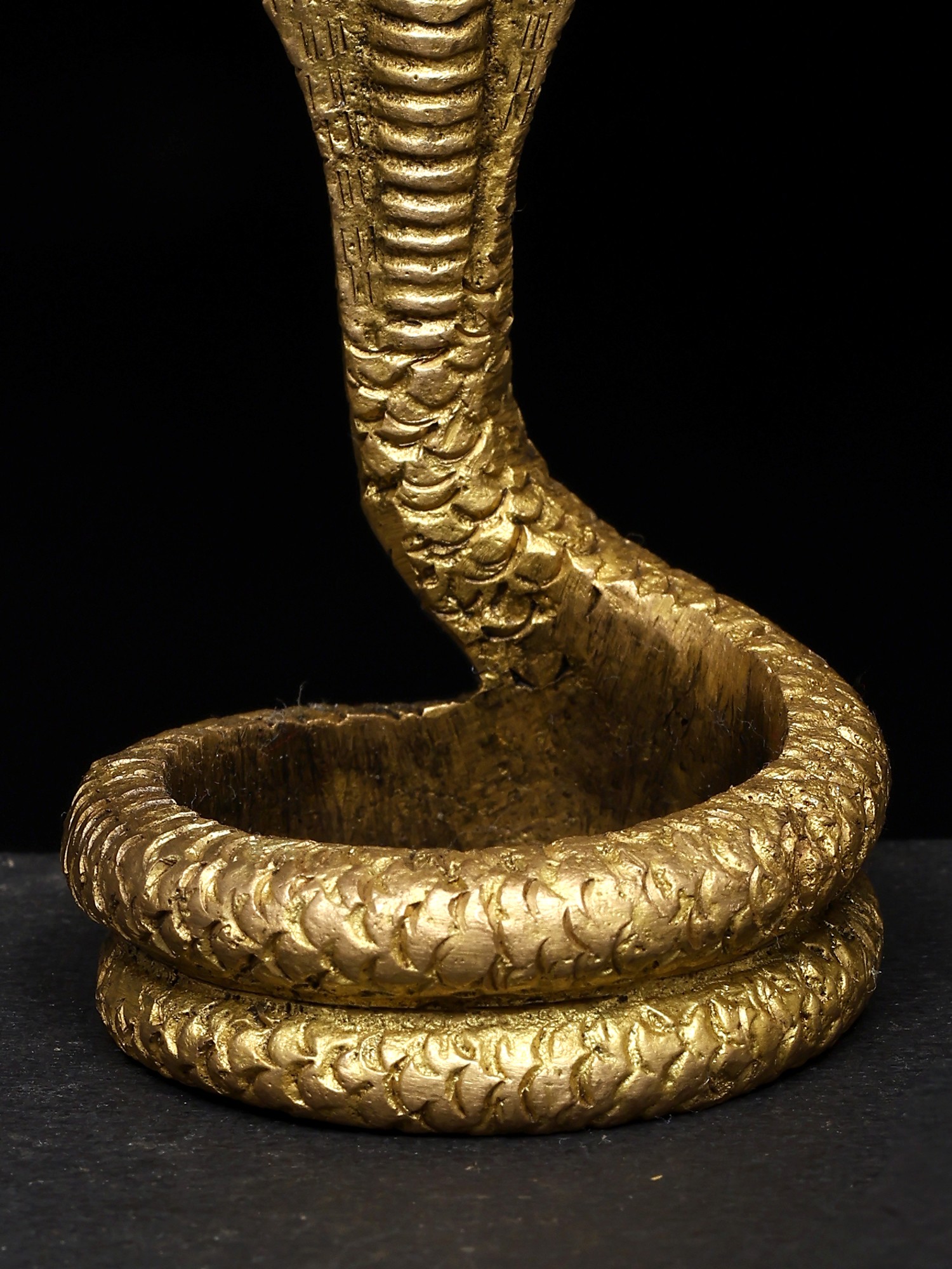 This statue of Kundalini in Brass (Chola Color) is in its total aesthetic appearance. The artwork including the cobra hood, the spine, and the double coil is skilfully crafted and magnificently sculpted. Each & every part of the snake is elegantly & lively finished. The entire frontal and back of this artwork is incredibly & exceptionally threaded.