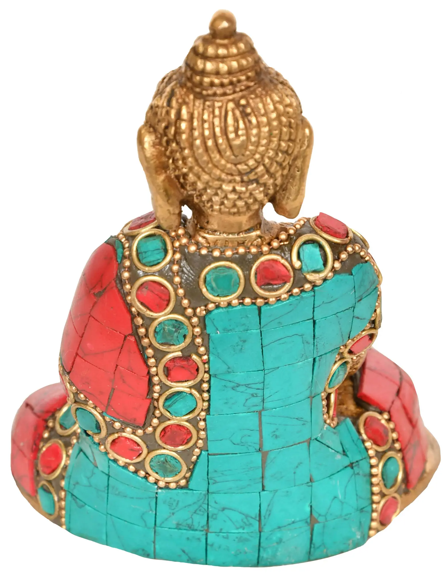 16" Bhumisparsha Buddha Inlay Work Brass Statue | Indian Handcrafted Idol