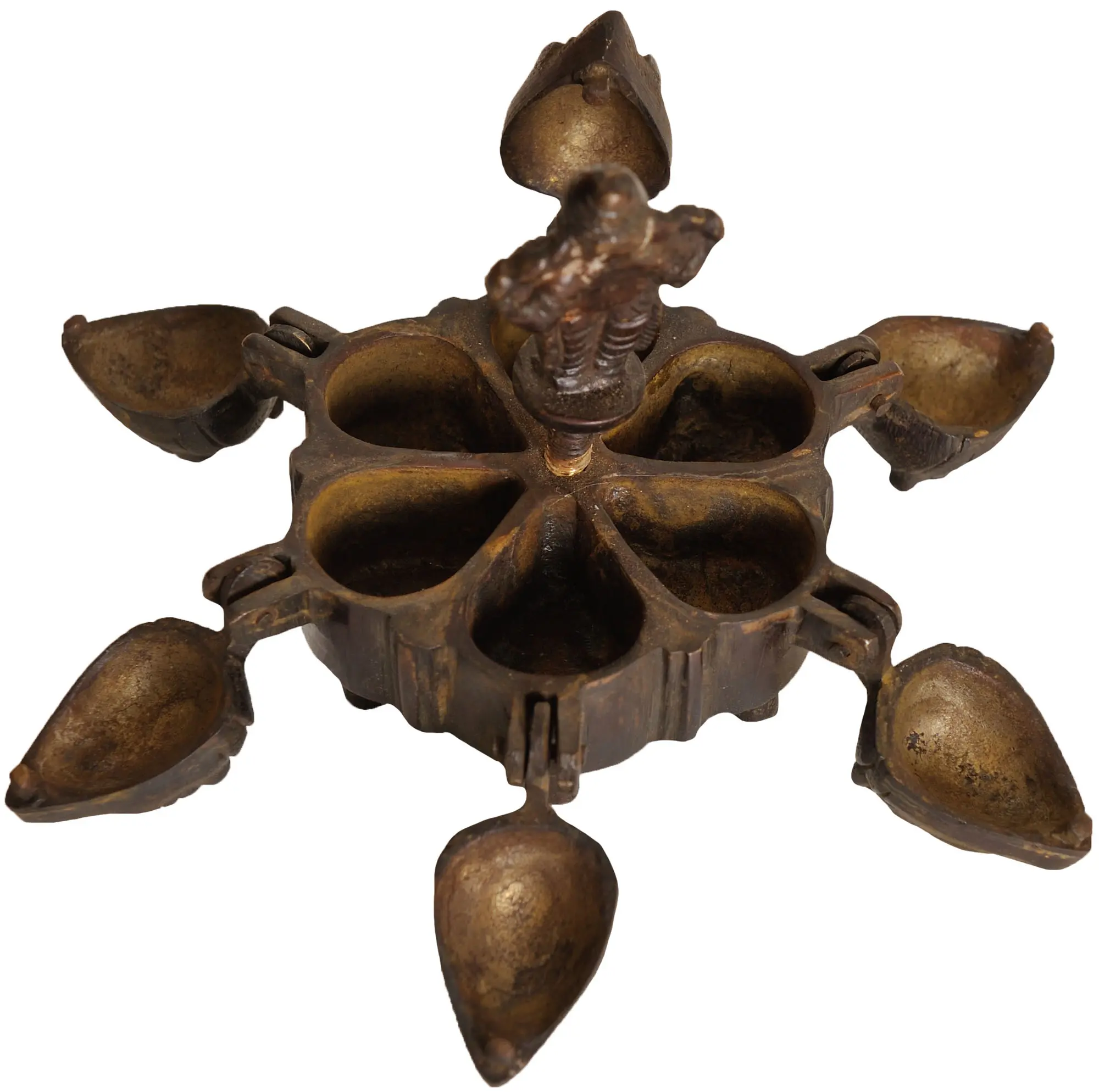The Lord Ganesha Ritual Box with Lids in Brass is a miniature masterpiece. At its heart, a beautifully designed Ganesha idol stands, imbuing your Puja samagri with sacred storage. This antiquated box exudes an aura of divinity, its brass surface resonating with the auspicious powers of Lord Ganapati.