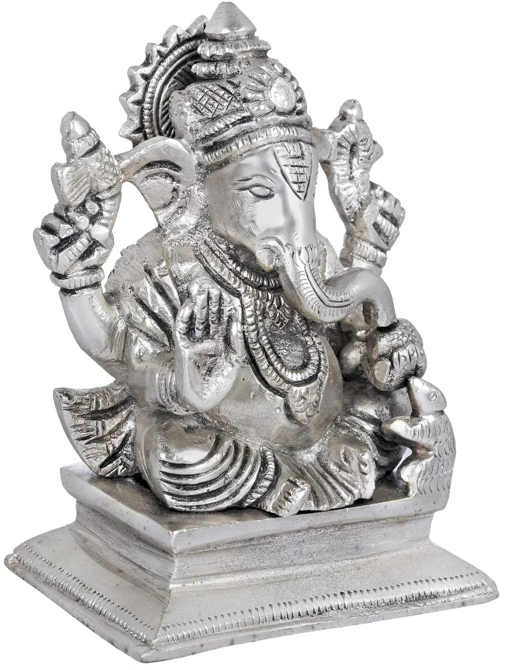 With an elephant head symbolizing intellect and a human body representing compassion, Lord Ganesha embodies the harmonious fusion of divinity and humanity. As the remover of obstacles, Ganesha inspires devotees to navigate through difficulties with courage and faith. His benevolent demeanor, reflected through the “Abhaya Mudra” (gesture of fearlessness), bestows fearlessness upon devotees. In his upper right hand, Ganesha carries a goad to guide them on the righteous path, while the noose symbolizes liberation from worldly attachments. His big belly signifies the ability to digest both joys and sorrows. Crafted in Brass, this sacred artwork of Ganesha endears him as the harbinger of success, prosperity, and wisdom.