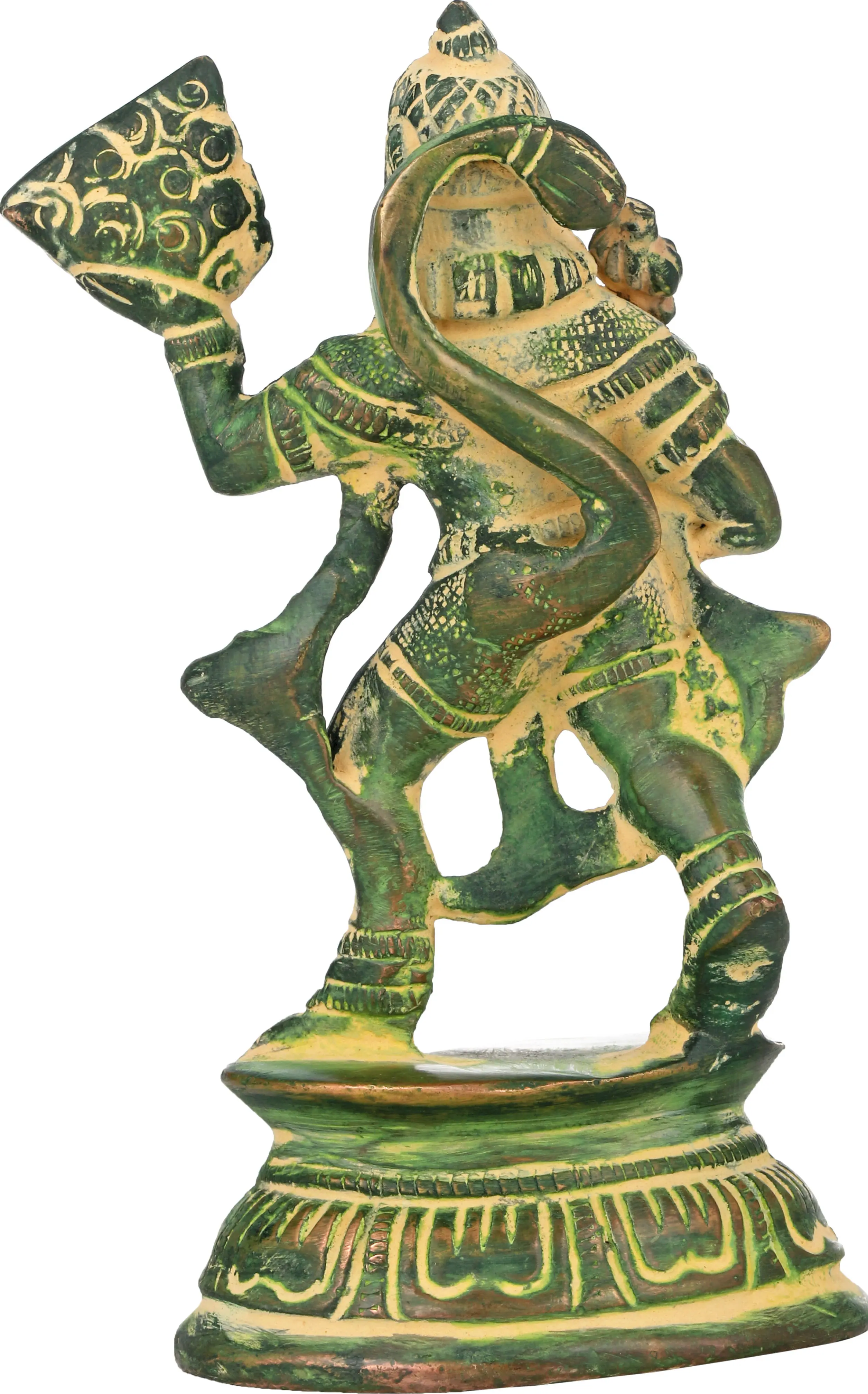 Hanuman, also called “Maruti”, embodies unwavering devotion, strength, and selflessness. With the colossal mountain held aloft in one hand and his mace in the other, Lord Hanuman embodies unparalleled might and courage. Adorned in regal attire, he symbolises not just physical prowess, but also a deep spiritual connection. Hanuman’s heroic act of retrieving the life-saving herb represents his selflessness and dedication. Crafted from high-quality brass, this mesmerising artwork invokes the divine blessings of Lord Hanuman into your life.