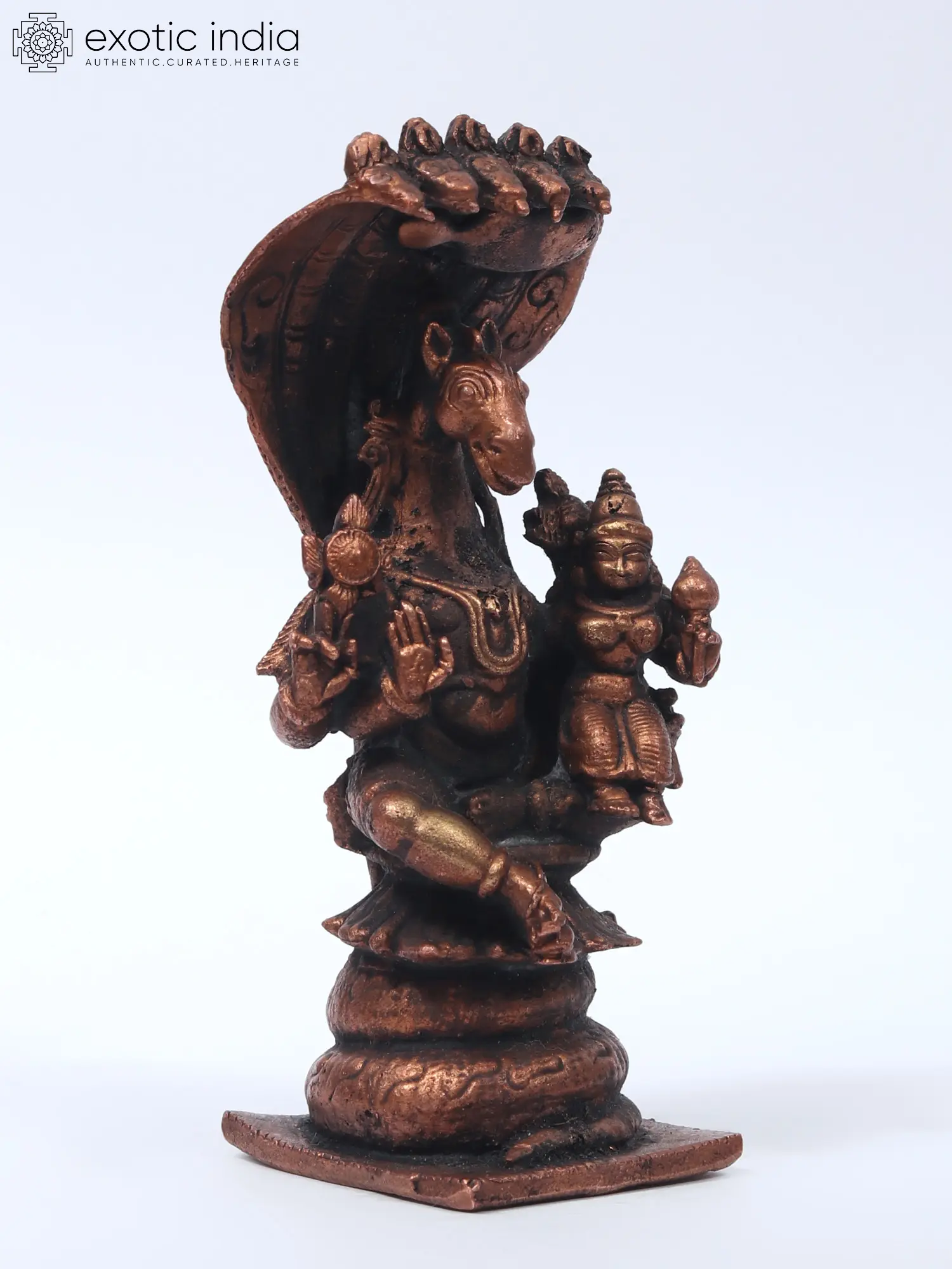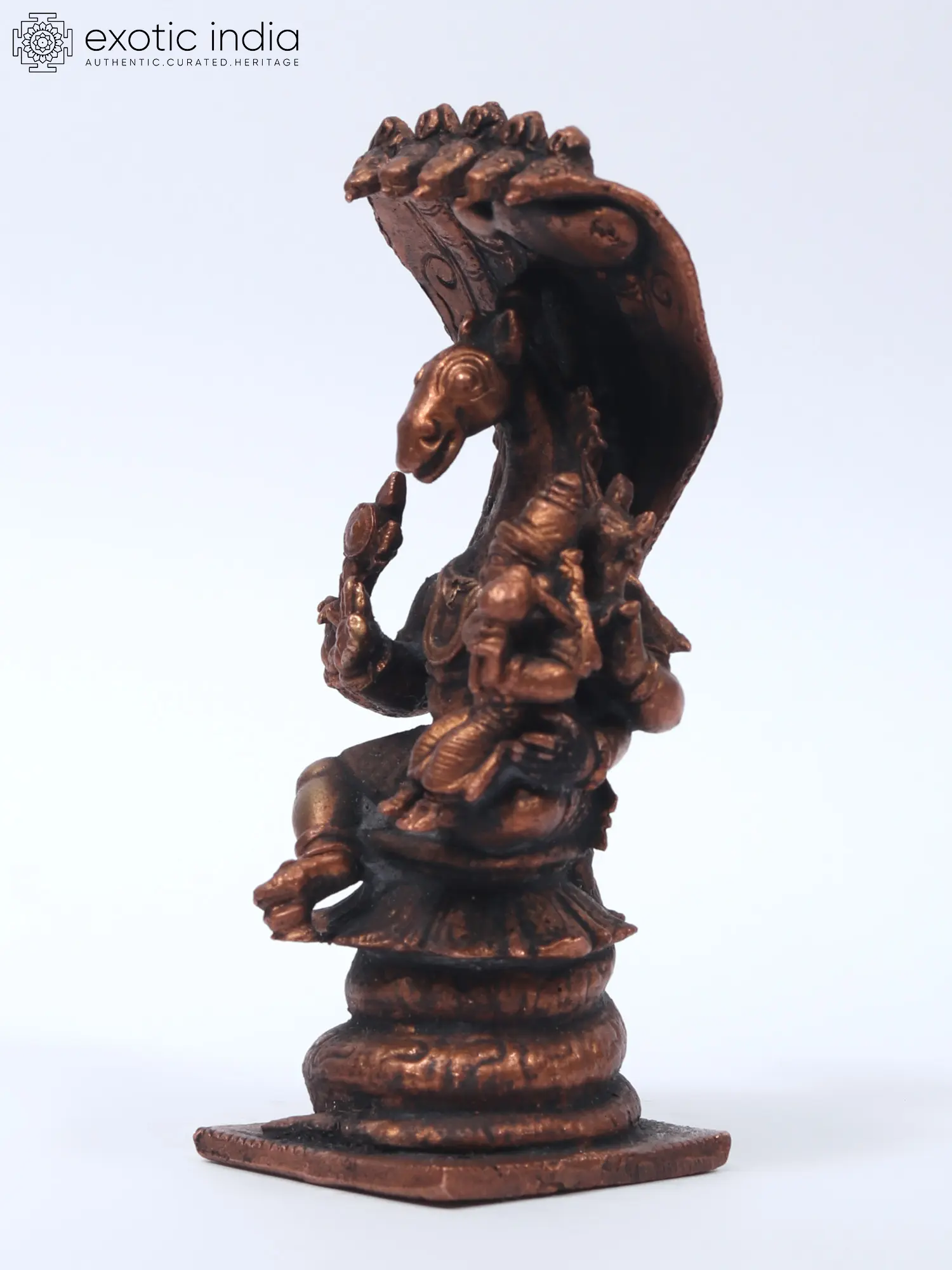 Lord Hayagriva, the god of wisdom, is one of Lord Vishnu's avatars. Everything we know and learn comes from Him. This copper statue of Lord Hayagreeva and Devi Lakshmi seated on Sheshnag represents the celestial confluence of wisdom and prosperity. This statue depicts Lord Hayagreeva, the horse-headed deity who represents knowledge, with the gracious Goddess Lakshmi sitting on the heavenly serpent Sheshnag. This harmonic representation represents the merging of knowledge and money.