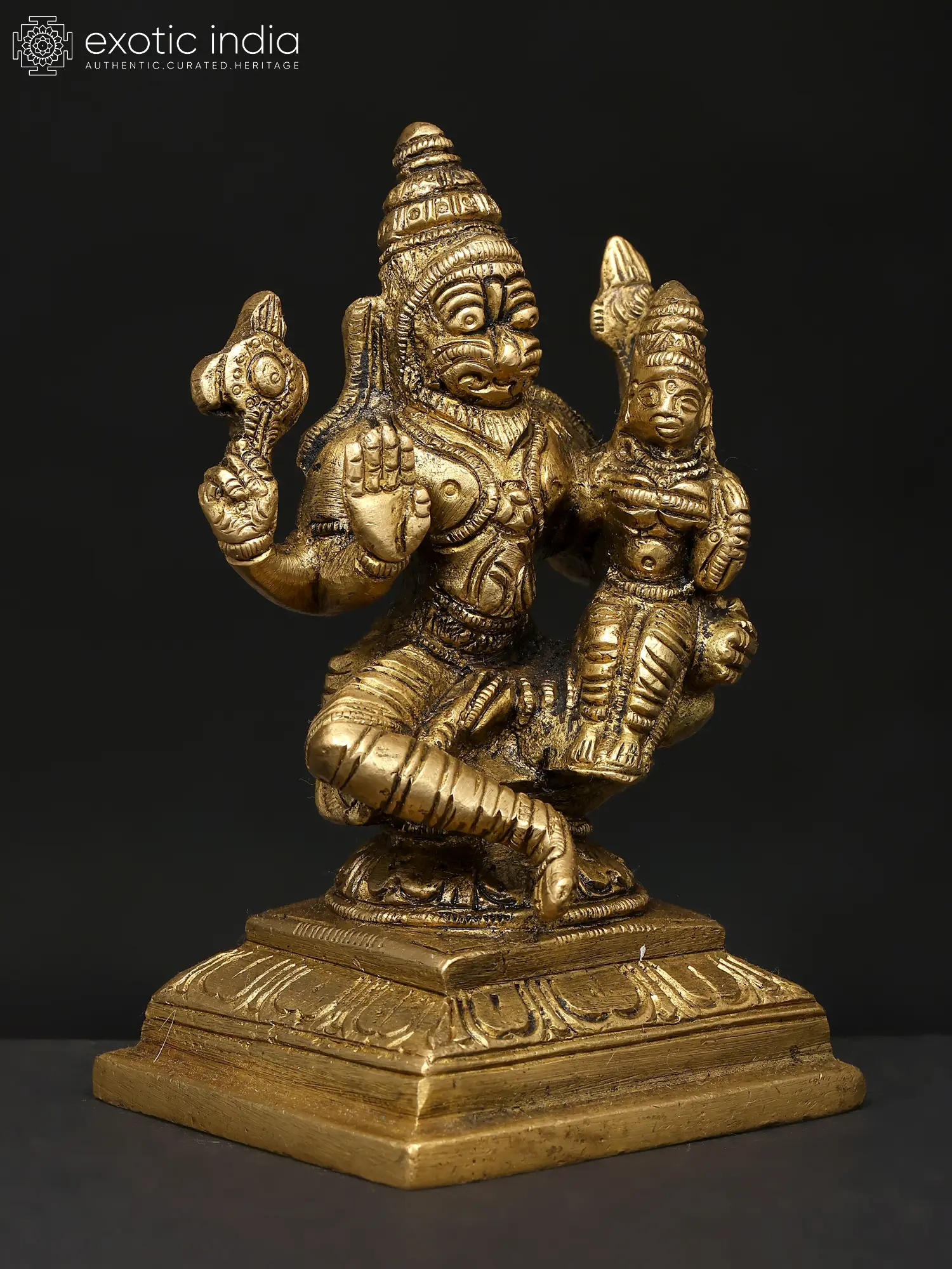 7" Lord Narasimha with Goddess Lakshmi Idol in Brass | Handmade Brass Statue | Made in India