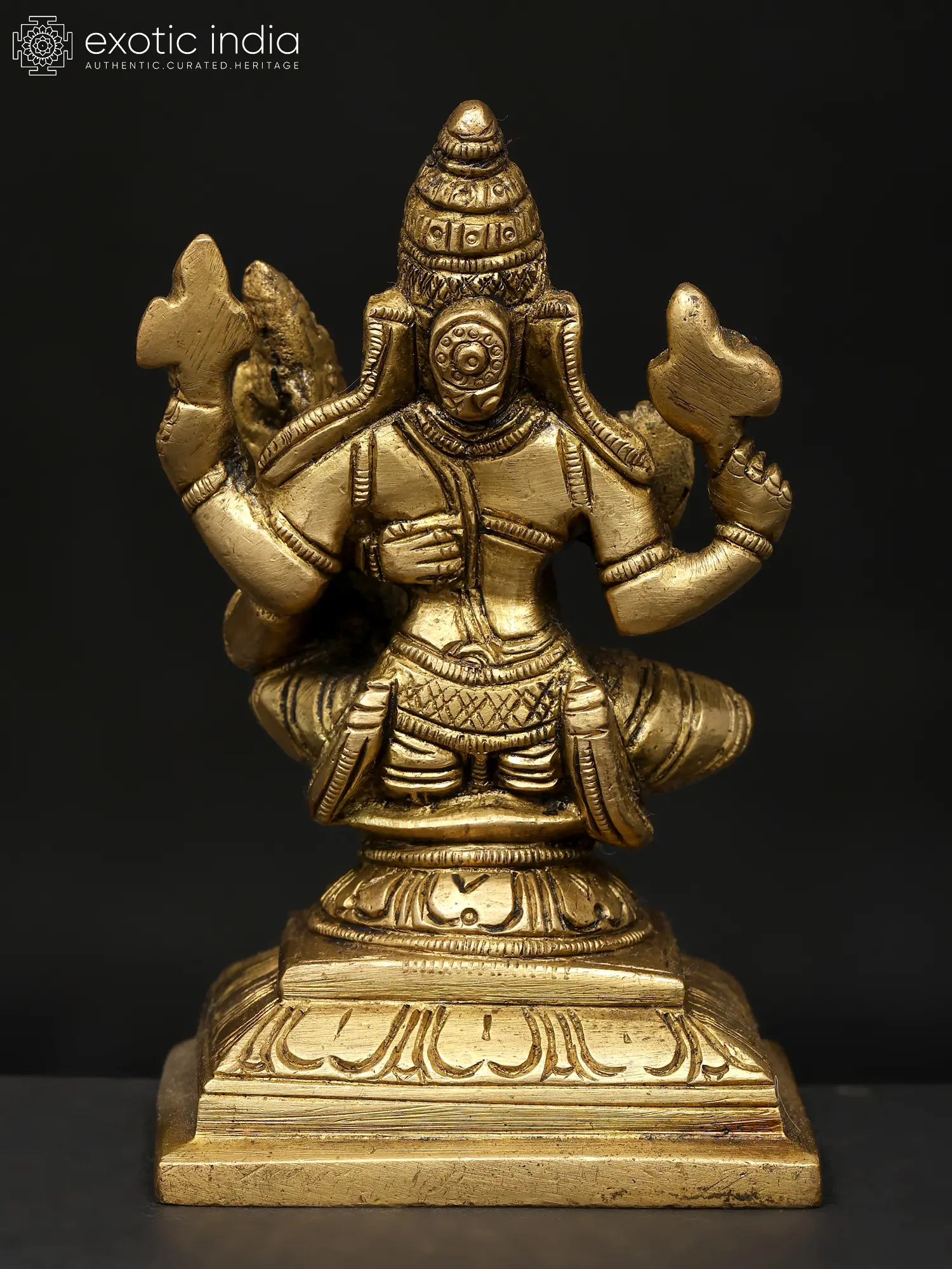 4" Small Superfine Sitting Lord Narasimha with Devi Lakshmi Brass Statue