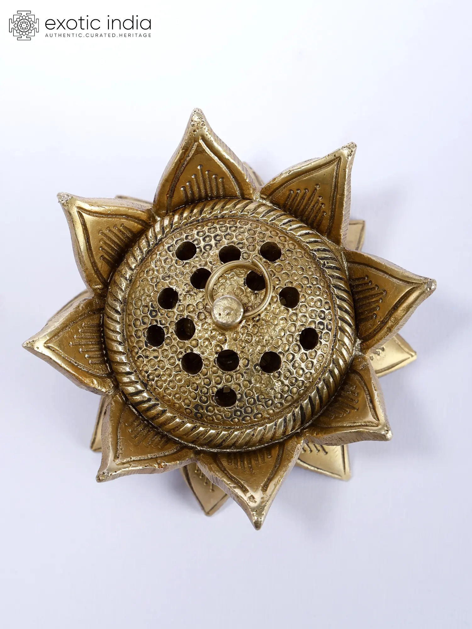Inside the petals, straight lines are crafted akin to stamen, enhancing the resemblance. This attention to detail makes it one of the finest examples of craftsmanship, embodying the elegance and beauty of the lotus flower. This dhoop dani not only spreads fragrance but also adds a touch of artistic beauty to any space.