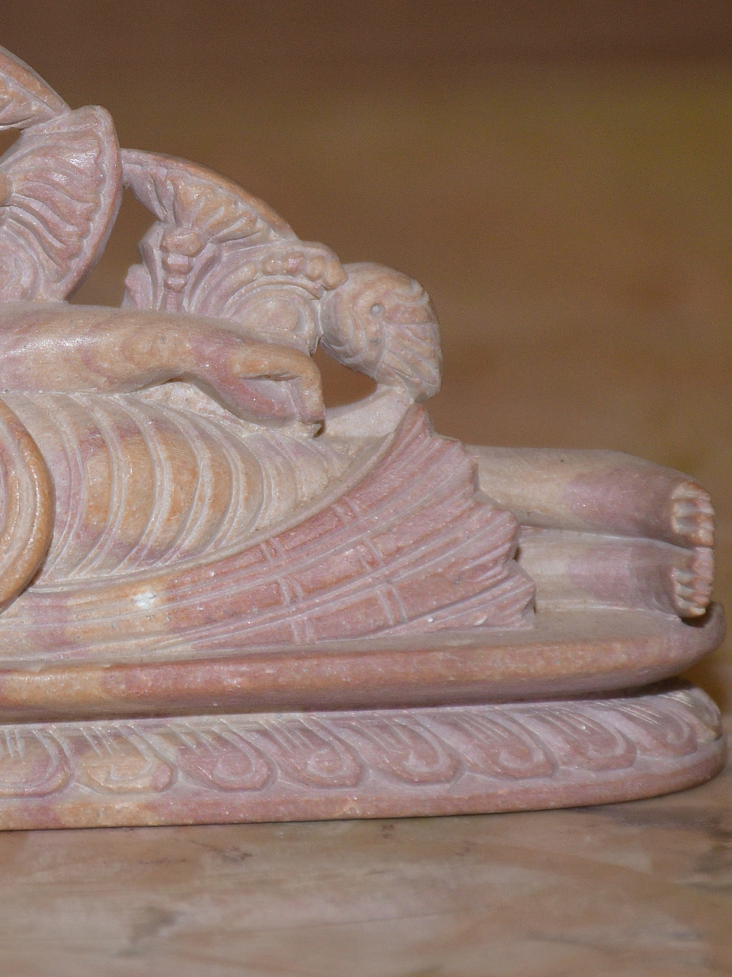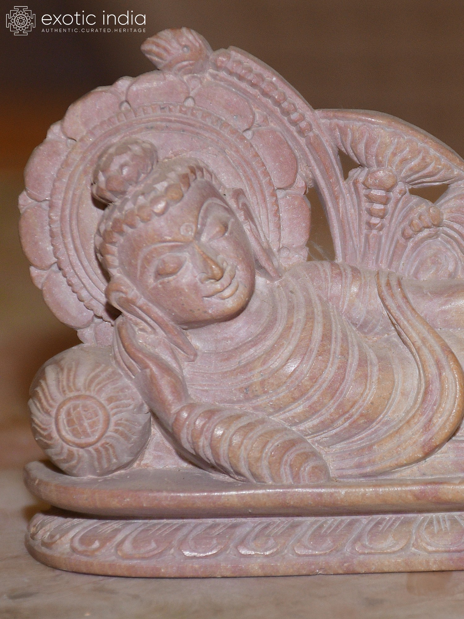 This exquisite statue captures the profound peace and tranquility of Lord Buddha in his reclining posture, a powerful symbol of his final nirvana. Carved from the beautiful Orissa stone, this piece is a testament to the rich artistic heritage of India, meticulously shaped by skilled hands to evoke a sense of spiritual serenity. The soft, earthy tones of the stone lend a natural, organic feel to the sculpture, inviting contemplation and inner calm. ––––––––––––––––––