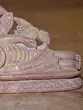 The reclining Buddha is a universally recognized icon representing the Mahaparinirvana, the final passing of Gautama Buddha into enlightenment. In many Buddhist traditions, this posture signifies the Buddha's peaceful transition from worldly existence, a state of ultimate liberation and tranquility. It is a reminder that even in repose, the Buddha’s teachings and presence endure, offering solace and guidance. The serene smile on his face, the gentle curve of his body, and the relaxed positioning of his hands all contribute to the overwhelming sense of peace emanating from this divine figure. This pose is often seen in temples and meditation spaces, encouraging practitioners to reflect on impermanence and the ultimate goal of spiritual awakening. The intricate detailing, from the folds of his monastic robe to the subtle contours of his face, showcases the artisan's deep understanding of Buddhist iconography and their masterful execution. ––––––––––––––––––