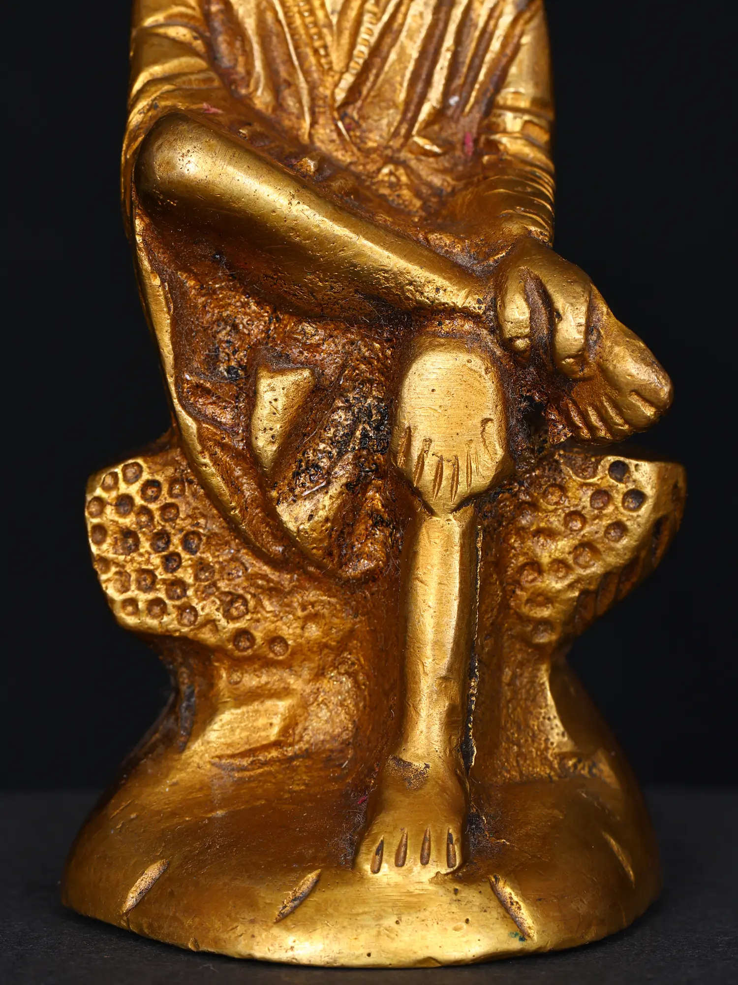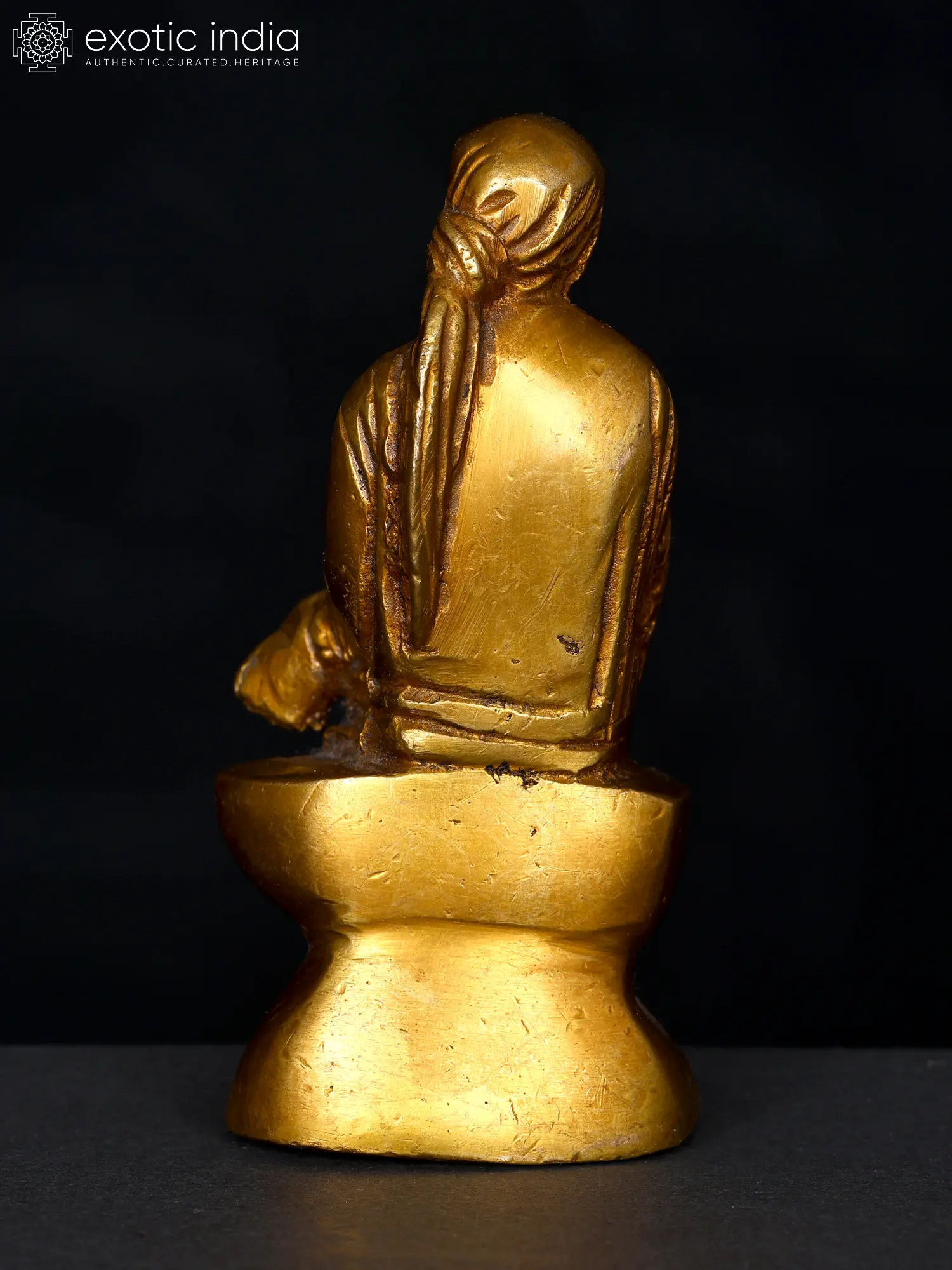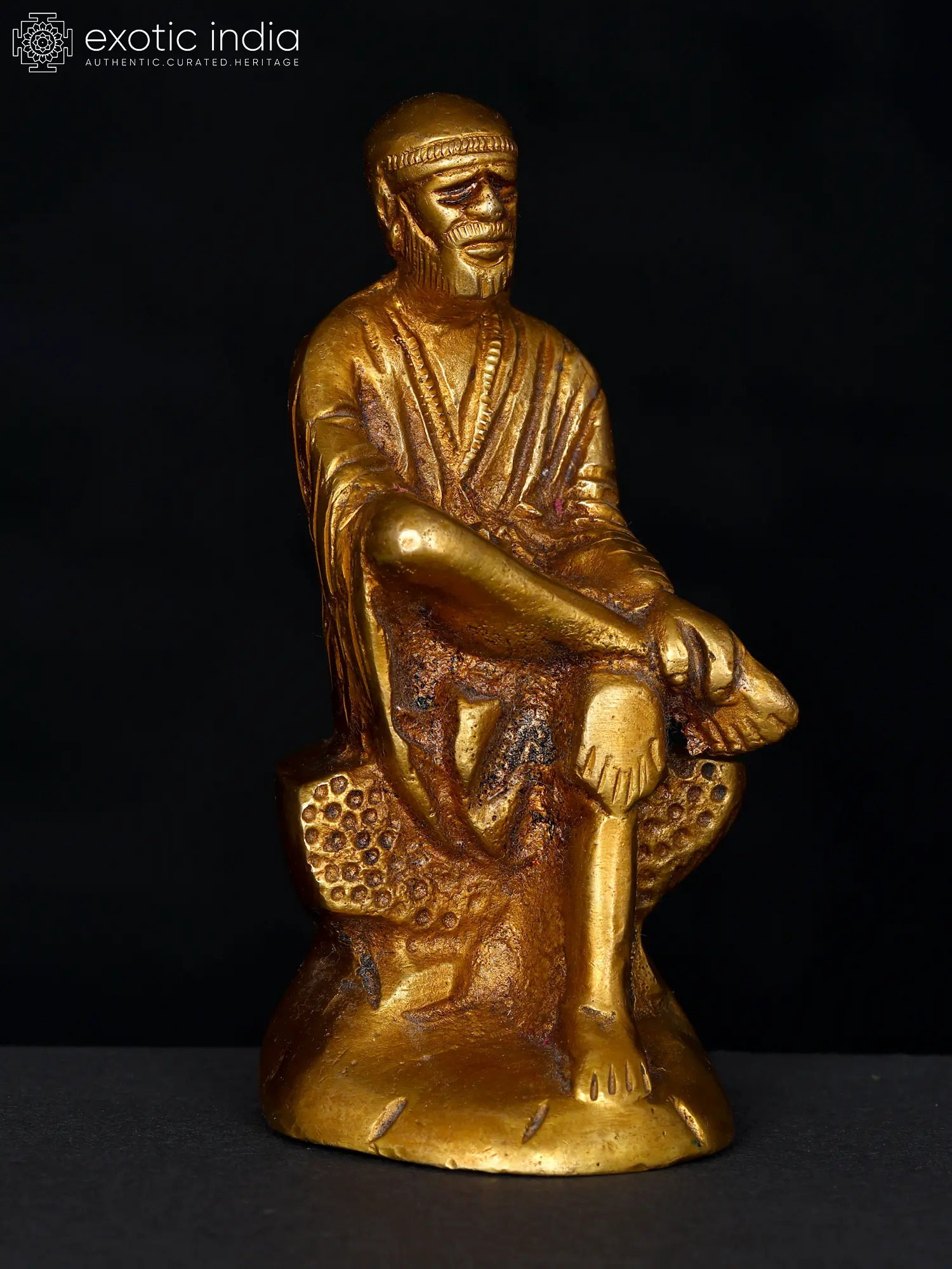 The brass Shirdi Sai Baba sculpture captures the beloved saint's essence. His eyes are half-closed showing inner contemplation, reflecting his spiritual insight. His hand raised in blessing signifies his protective presence. Represented in this statue with a cloth and a shawl, he embodies simplicity and humility. His smile symbolizes his love for all beings. Sai Baba's life was marked by compassion, service, and devotion to the divine. With this artwork we can bask in the glow of his benevolence, reminding us of his boundless love for humanity.