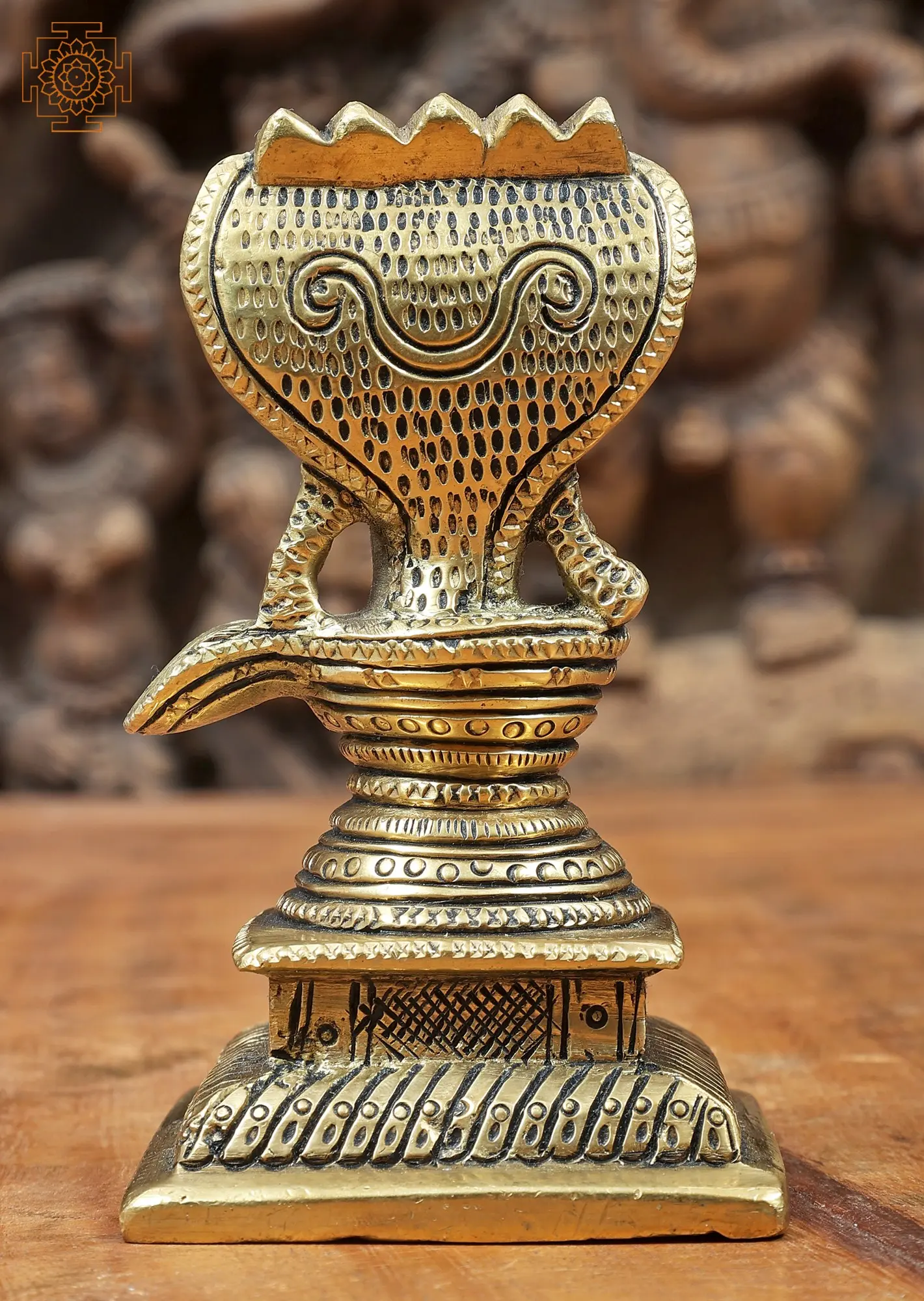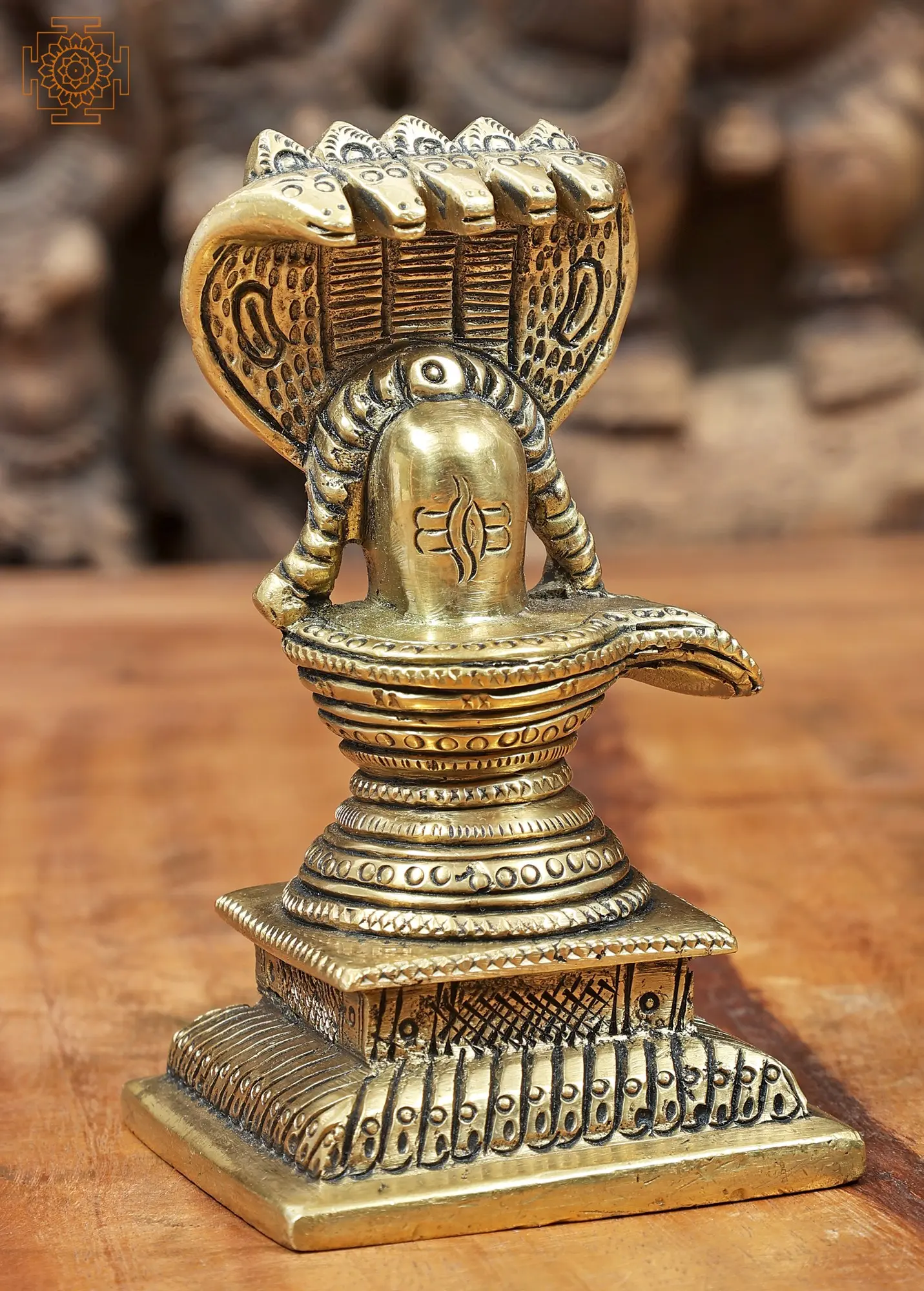 The Linga represents Lord Shiva’s cosmic creative energy, while the five-hooded serpent symbolizes his control over the five elements and his mastery over time. This depiction signifies the cyclical nature of Creation, Preservation, and Destruction. The serpent’s five hoods depict the five senses, suggesting that self-control and spirituality can conquer worldly desires. Together, the Shiva Linga and the serpent reflect the intricate interplay between divinity, nature, and human existence, offering a visual metaphor for the intricate tapestry of the universe and the ultimate unity of all things. With meticulous craftsmanship, this sacred brass creation embodies the essence of creation’s rhythm and human transcendence.