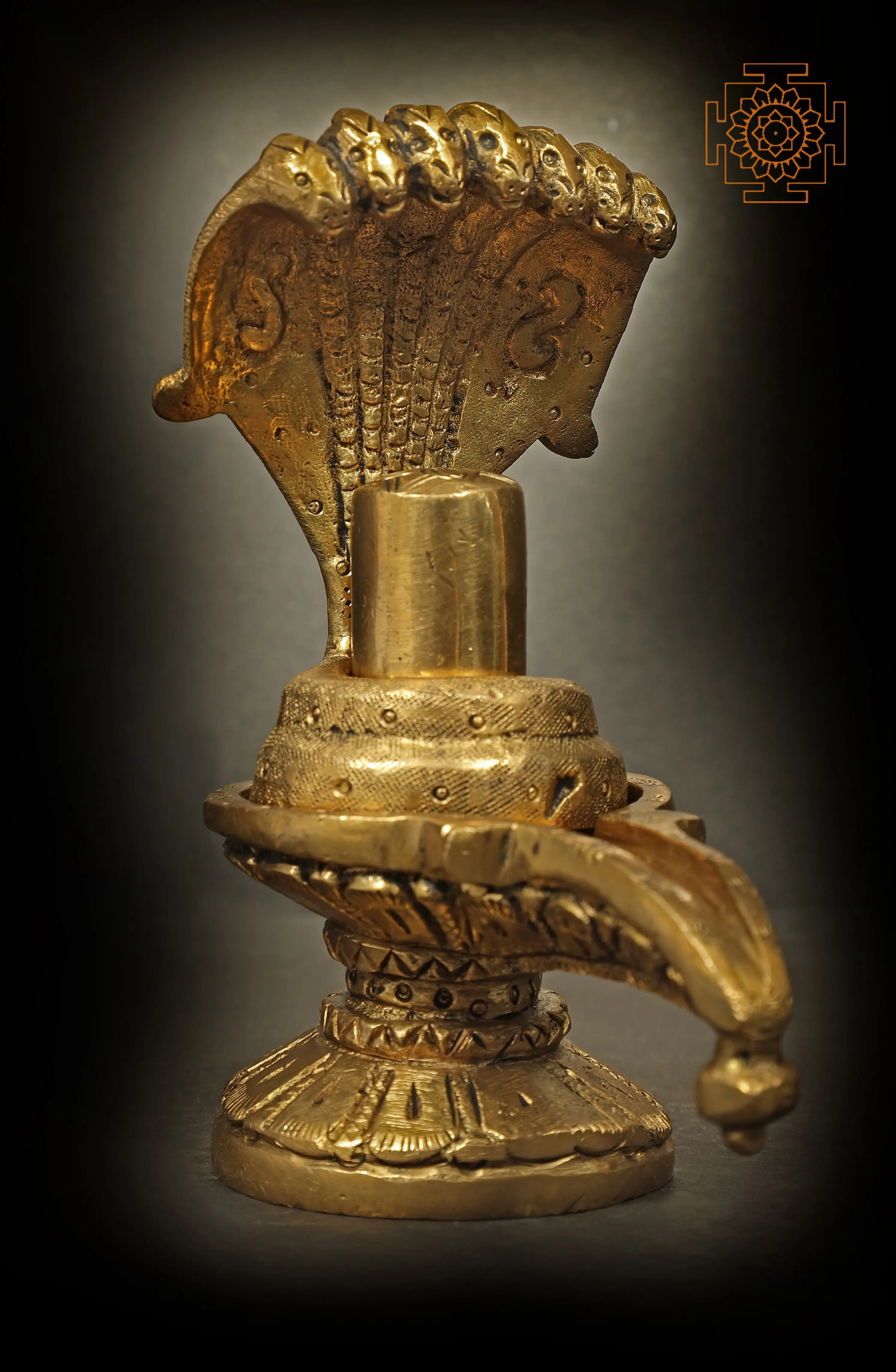 Journey into the heart of devotion with this Handmade Brass Shiva Linga adorned by the divine Sheshnaag, lovingly crafted in India. This exquisite piece marries artistry with spirituality, and every facet tells a story of devotion. The Shiva Linga, symbolizing Lord Shiva, and the coiled Sheshnaag, signifying cosmic energy, create a harmonious balance of divinity. In Hinduism, Lord Shiva represents the destroyer of evil and the embodiment of transcendental consciousness. Meticulously handmade, this work of art not only serves as a spiritual centerpiece but also stands as a testament to India's rich heritage of brass craftsmanship. Its intricate details reveal the dedication of skilled artisans. As you welcome this divine creation into your home, you're embracing centuries of tradition and sincerity, feeling the presence of Shiva's grace in every glance.