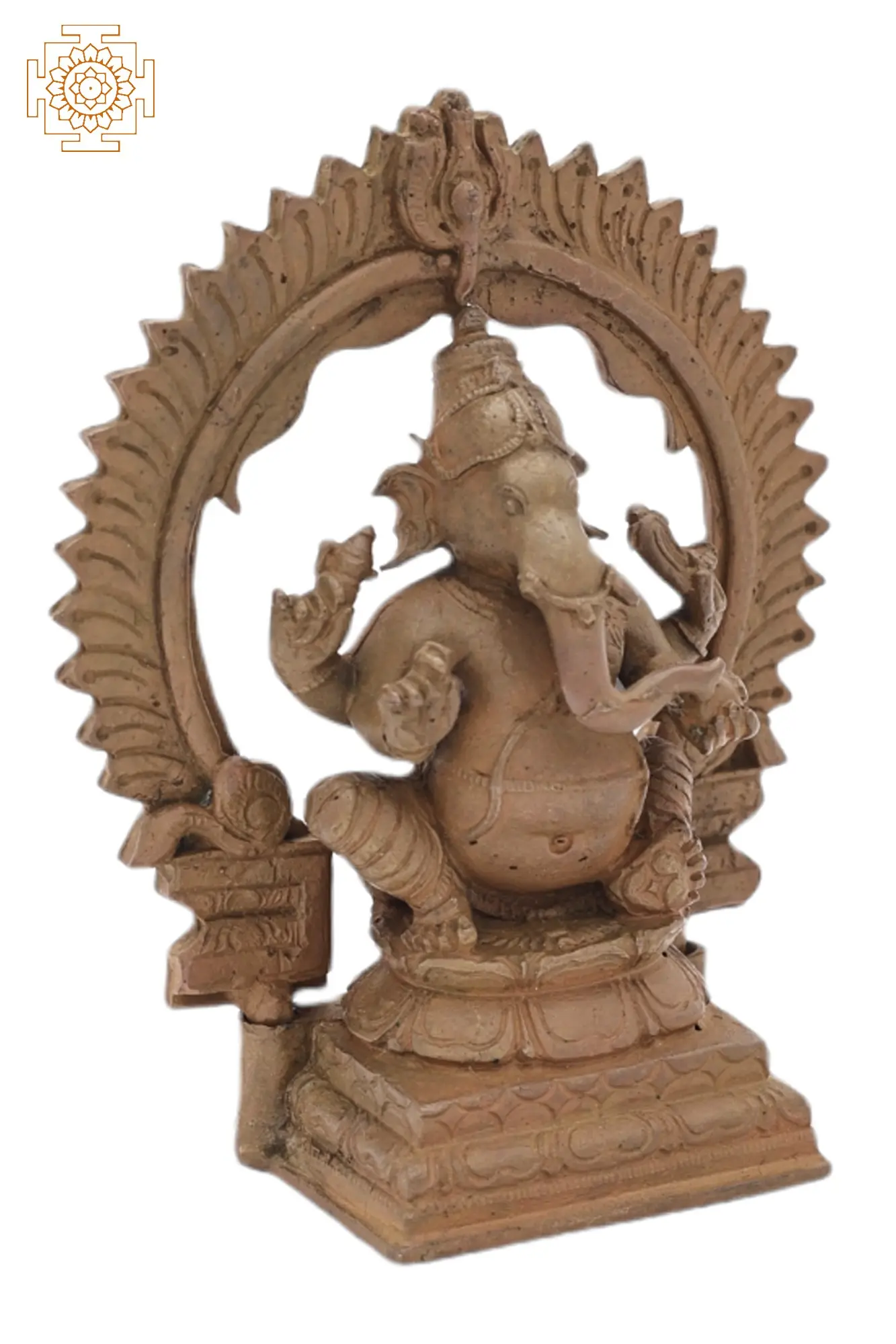 4" Small Lord Ganesha Seated Under The Temple Arch | Brass Statue