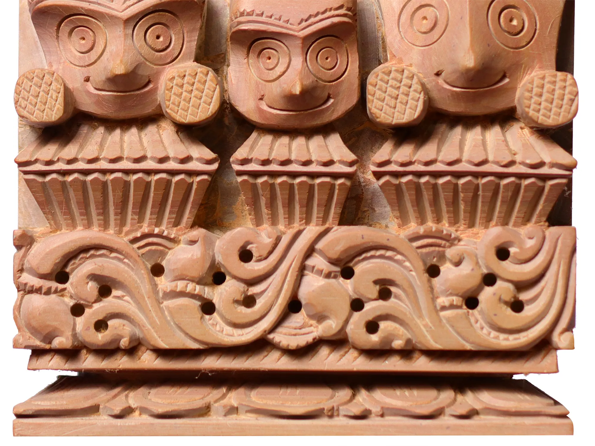 15" Lord Jagannath With Balabhadra And Subhadra Pink Stone Statue