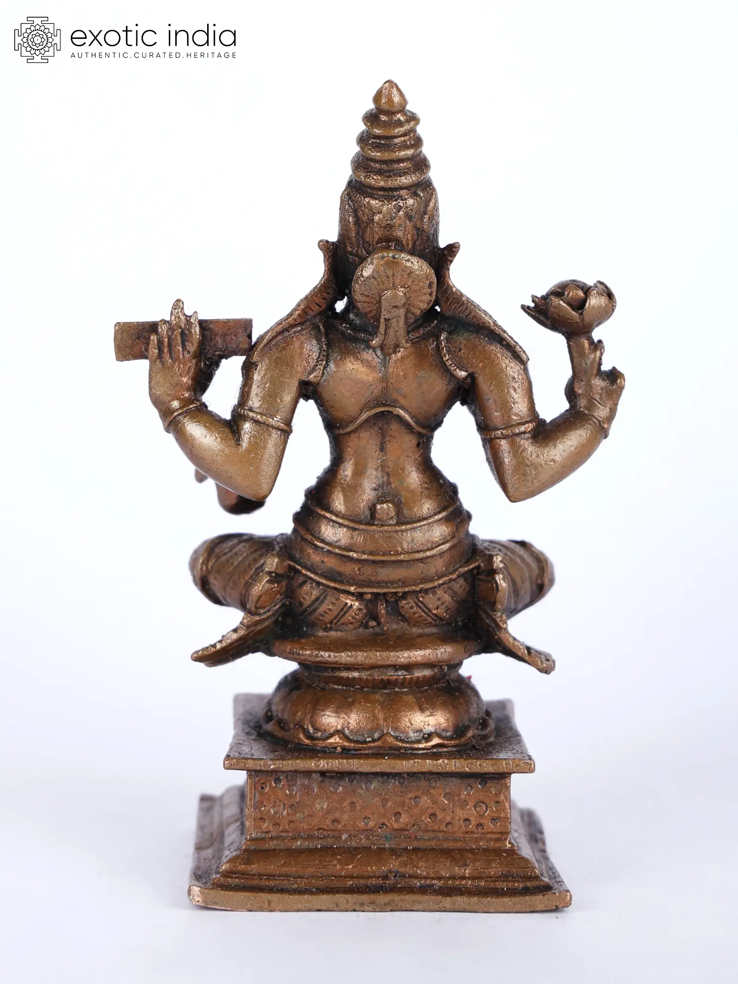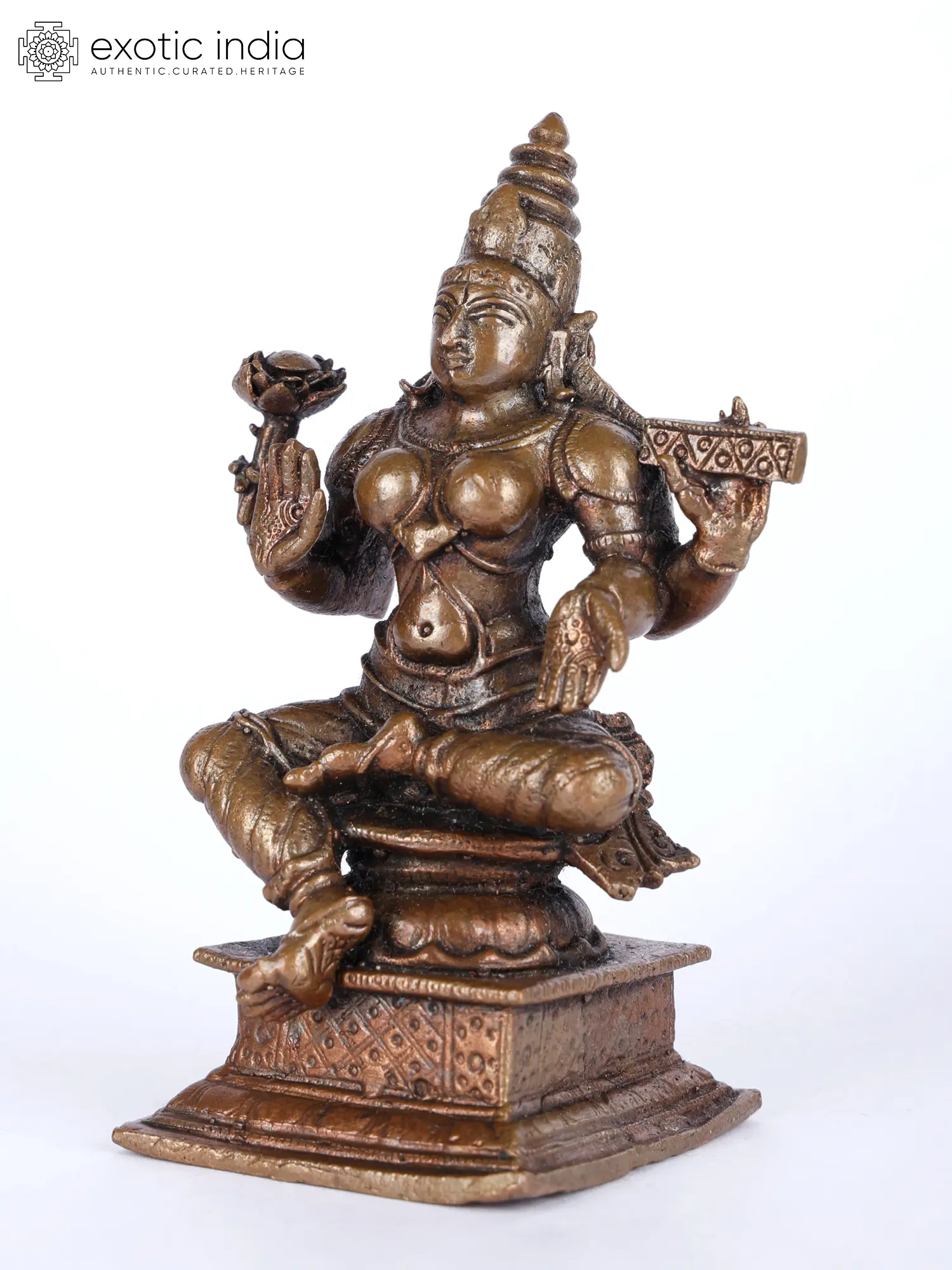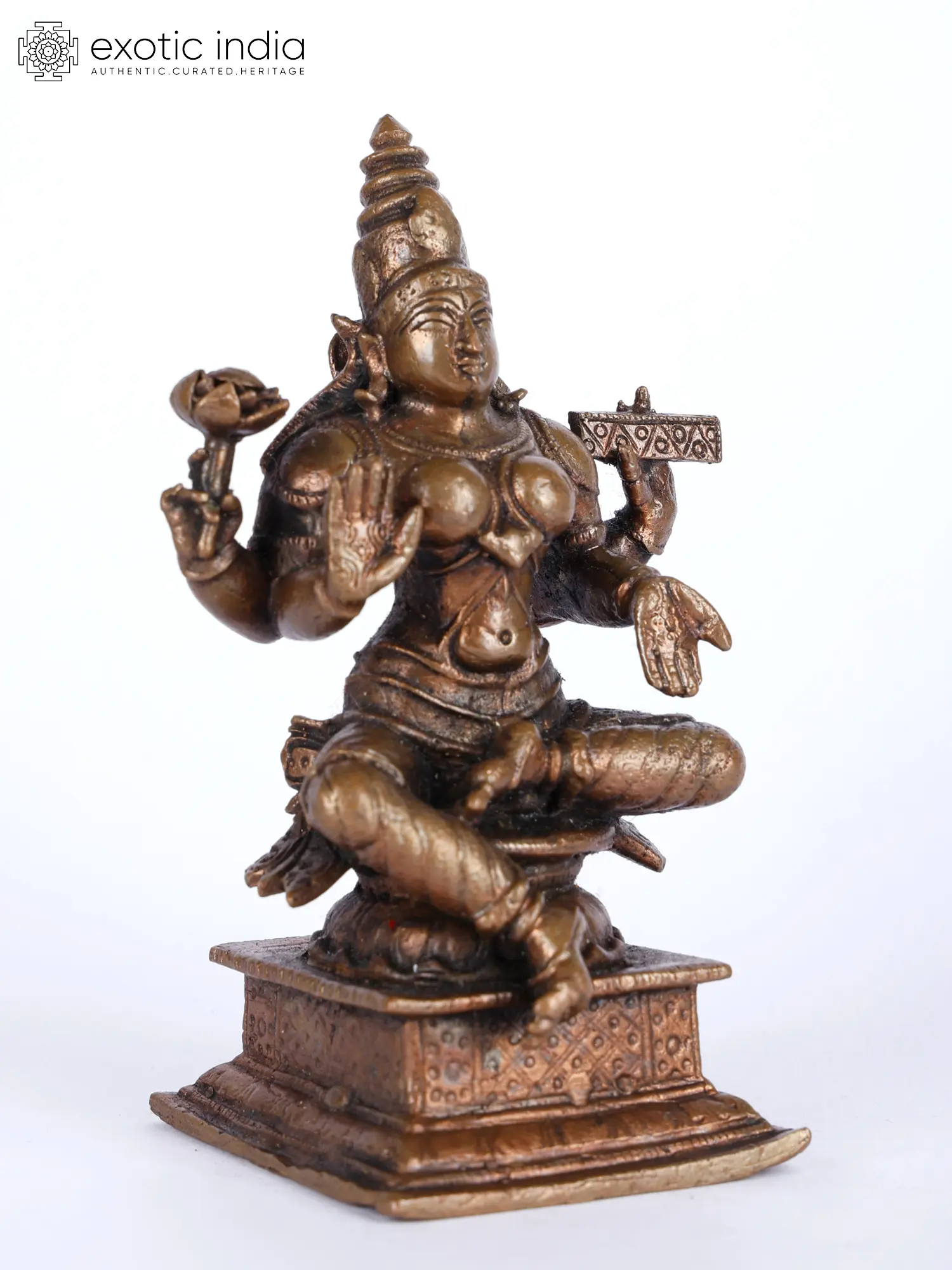 is presented in this beautiful small copper statue in her popular Chaturbhuja