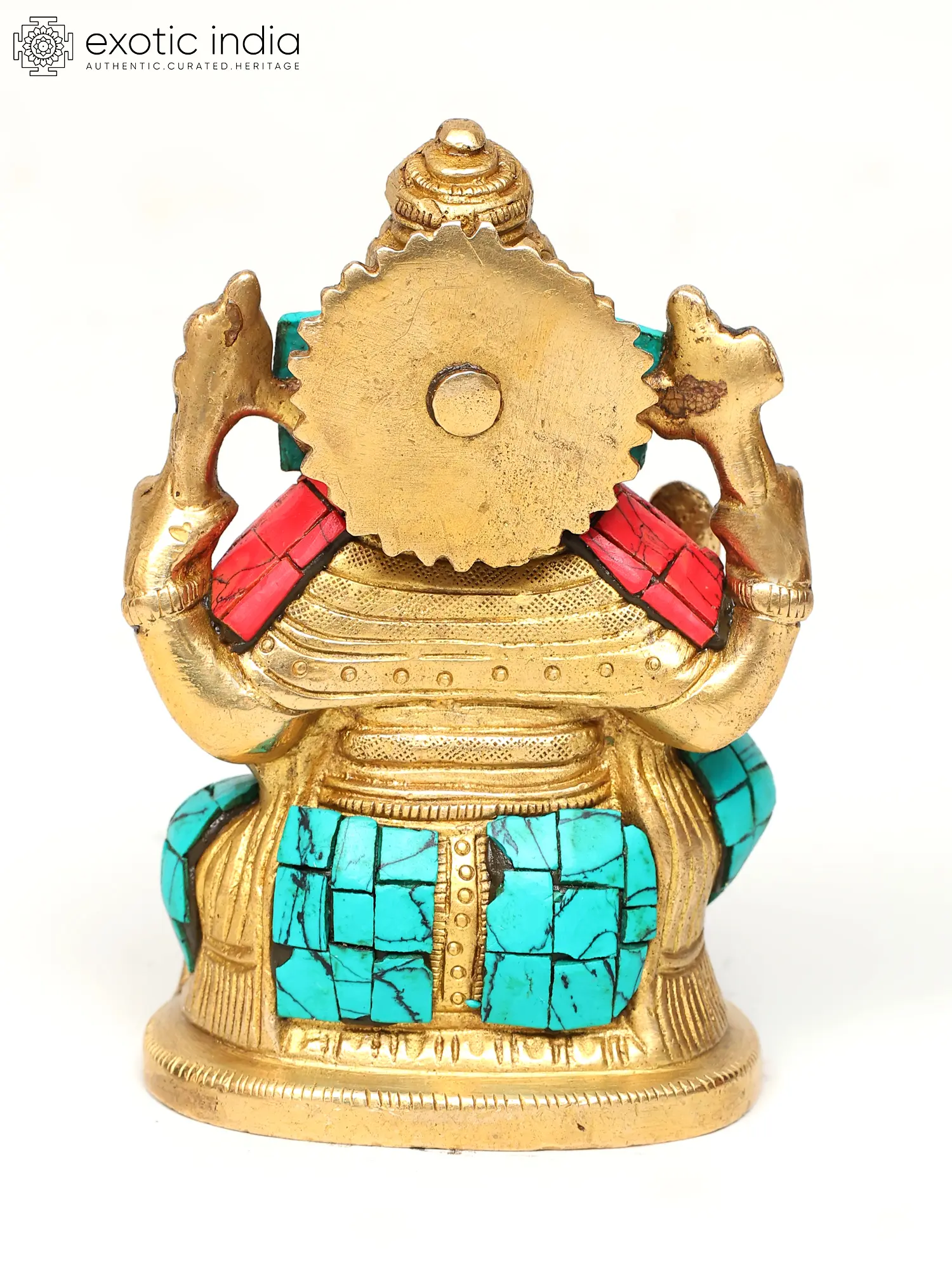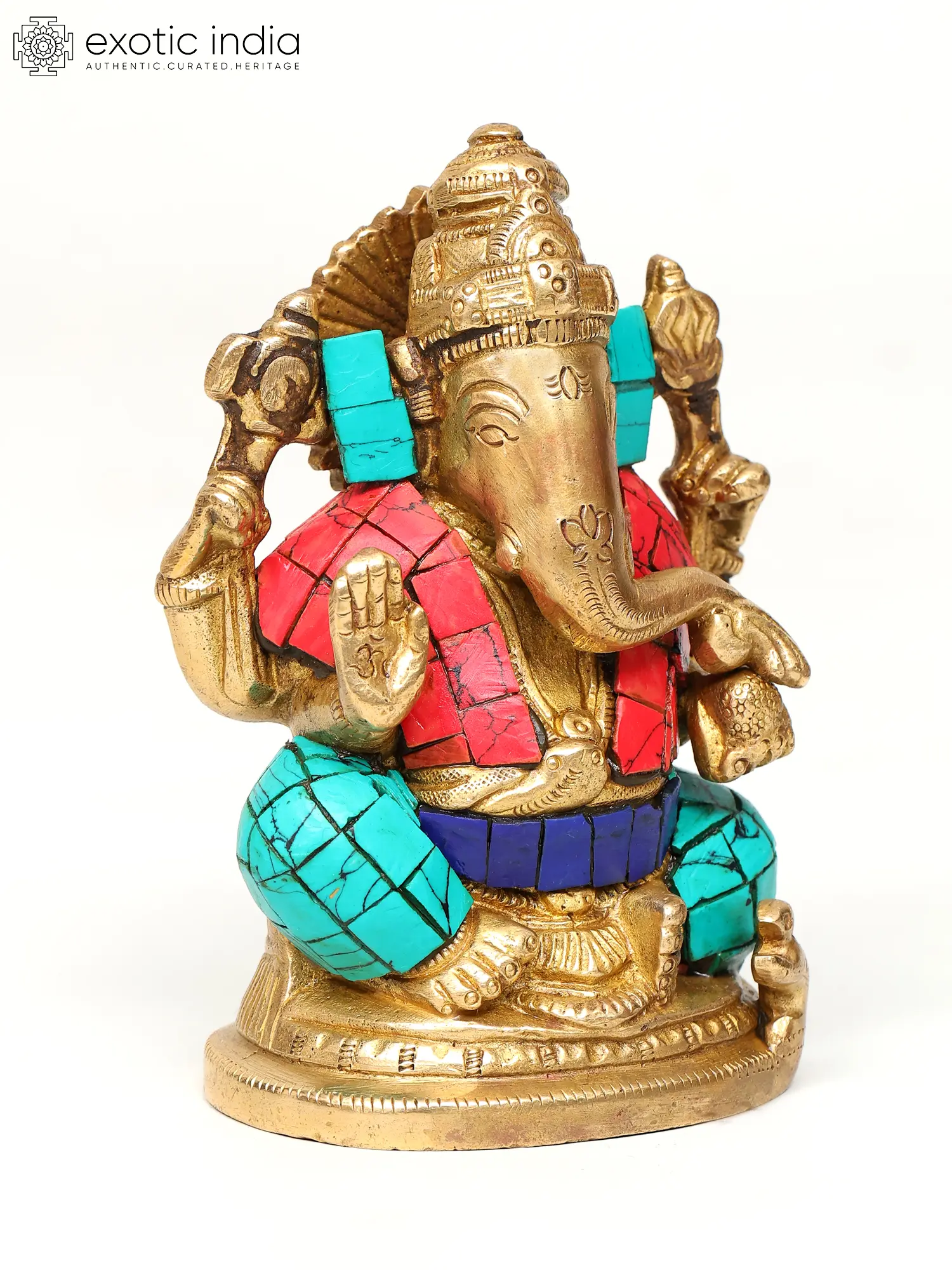 5" Small Blessing Lord Ganesha on Swastik | Wall Hanging | Brass Statue with Inlay Work