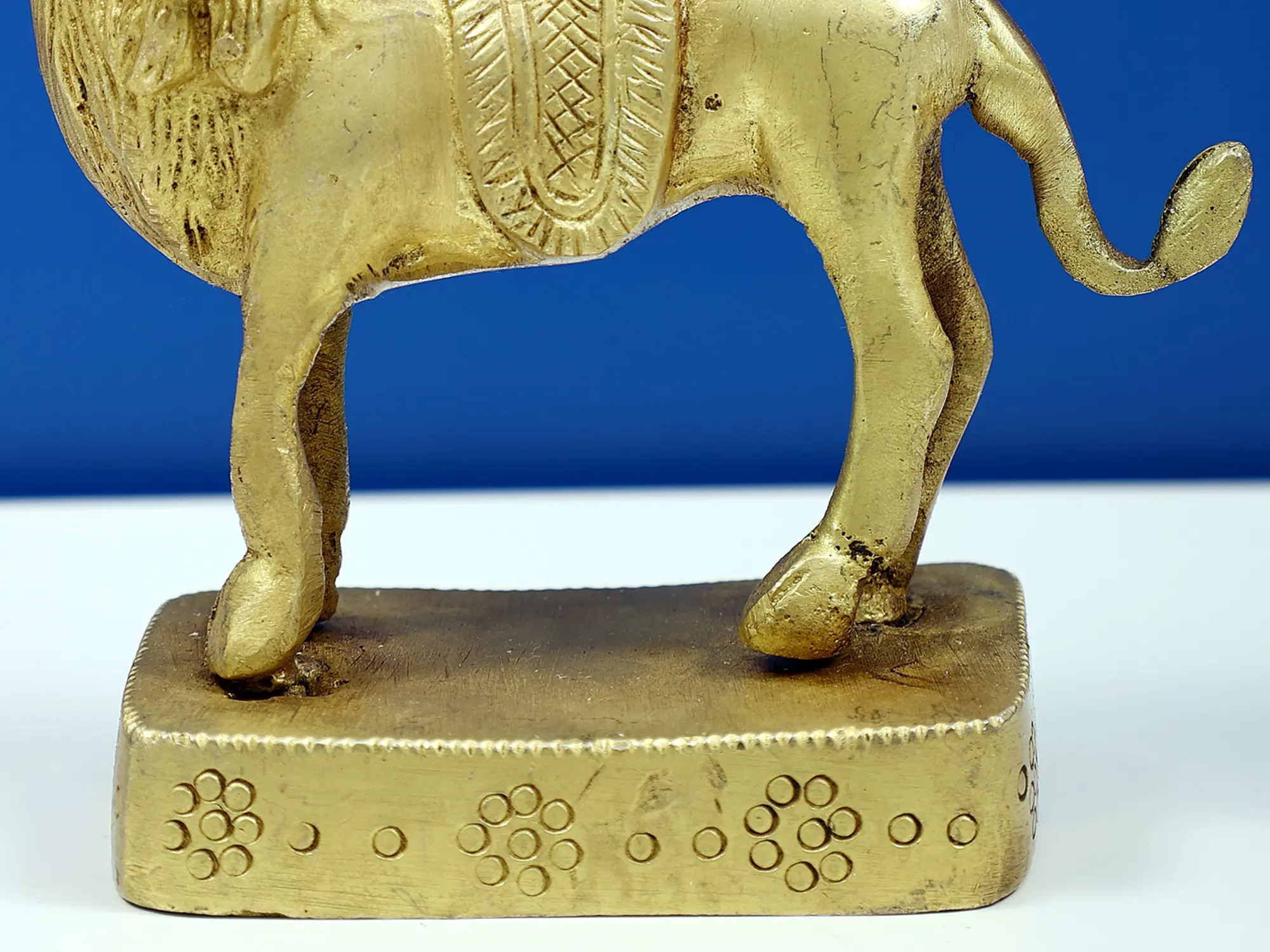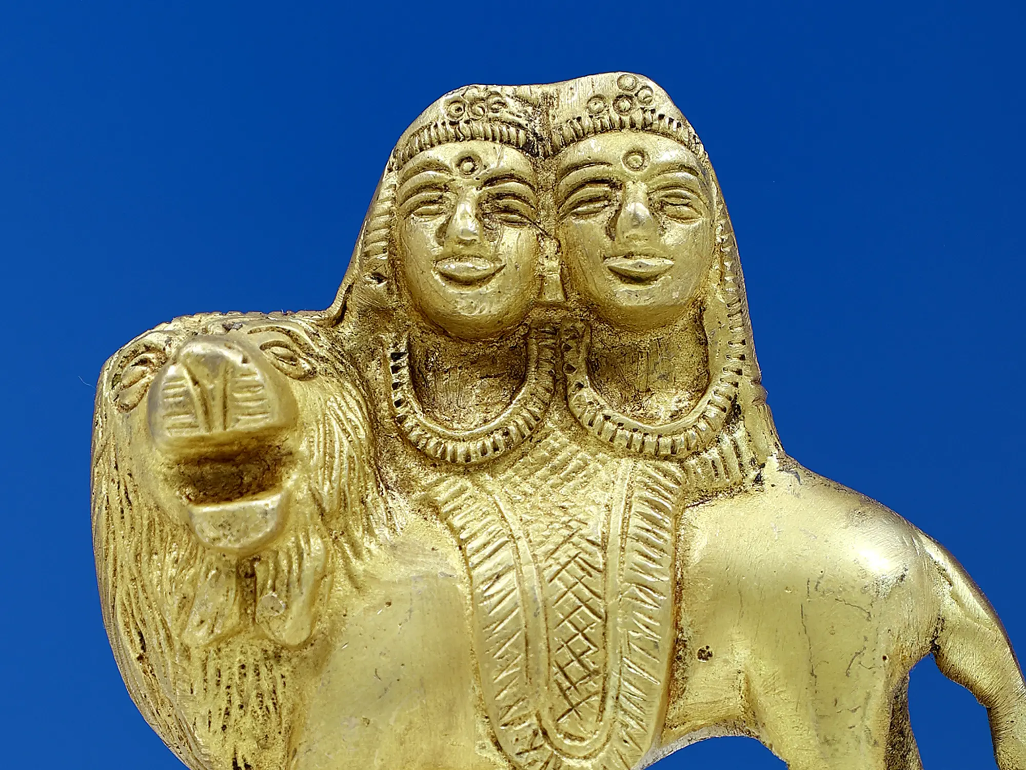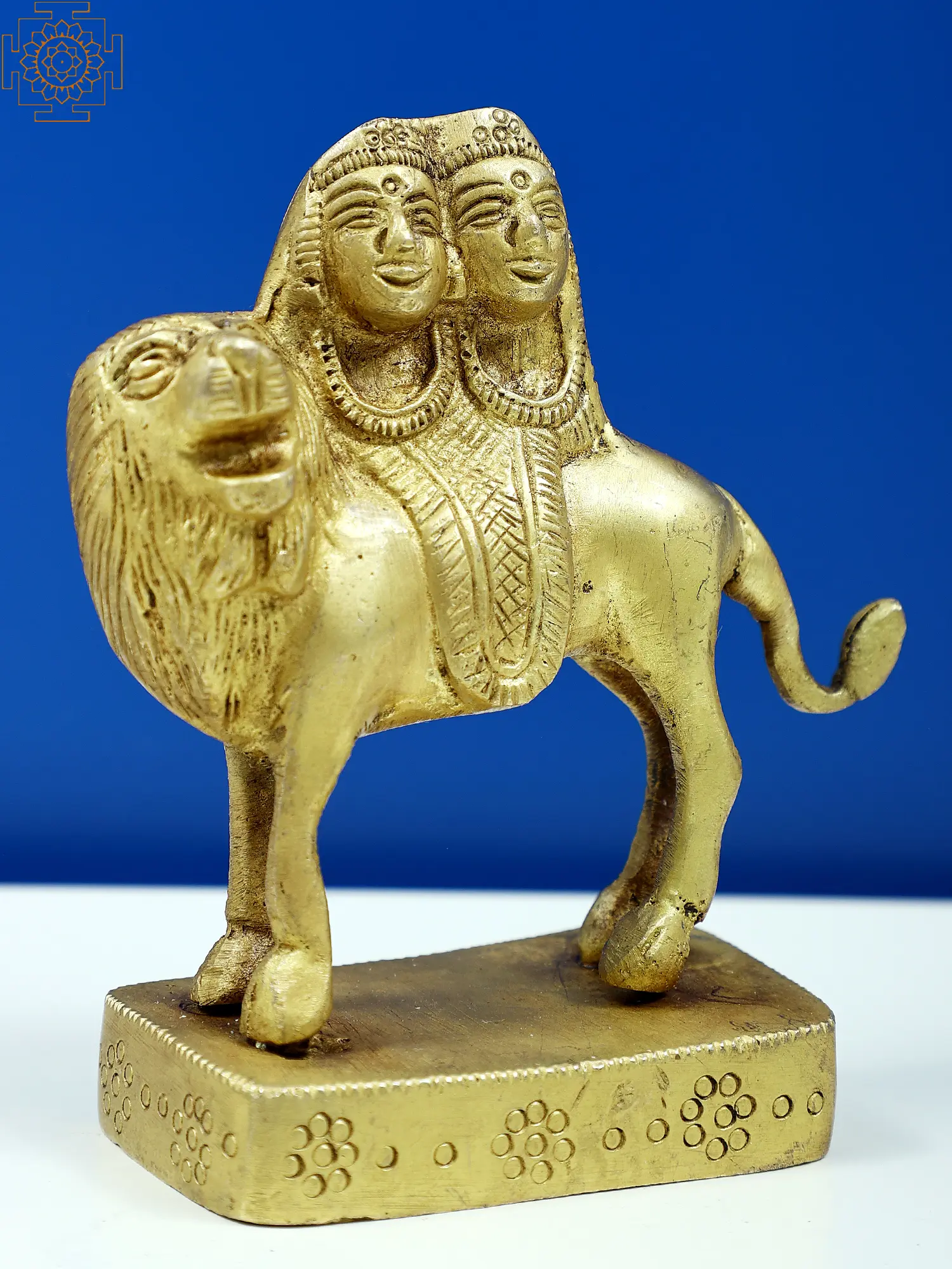 Standing as a symbol of formidable power, the small brass Chamunda Mata sculpture embodies the essence of feminine strength. With her fierce countenance and multiple arms, she triumphs over darkness and ignorance. Adorned with severed heads and a garland of skulls, Chamunda Mata signifies the impermanence of life and the victory of the eternal soul. The trident she wields represents her control over the three aspects of time - past, present, and future. As a divine protector, Chamunda Mata inspires us to harness our inner courage and rise above challenges, embracing our innate potency.