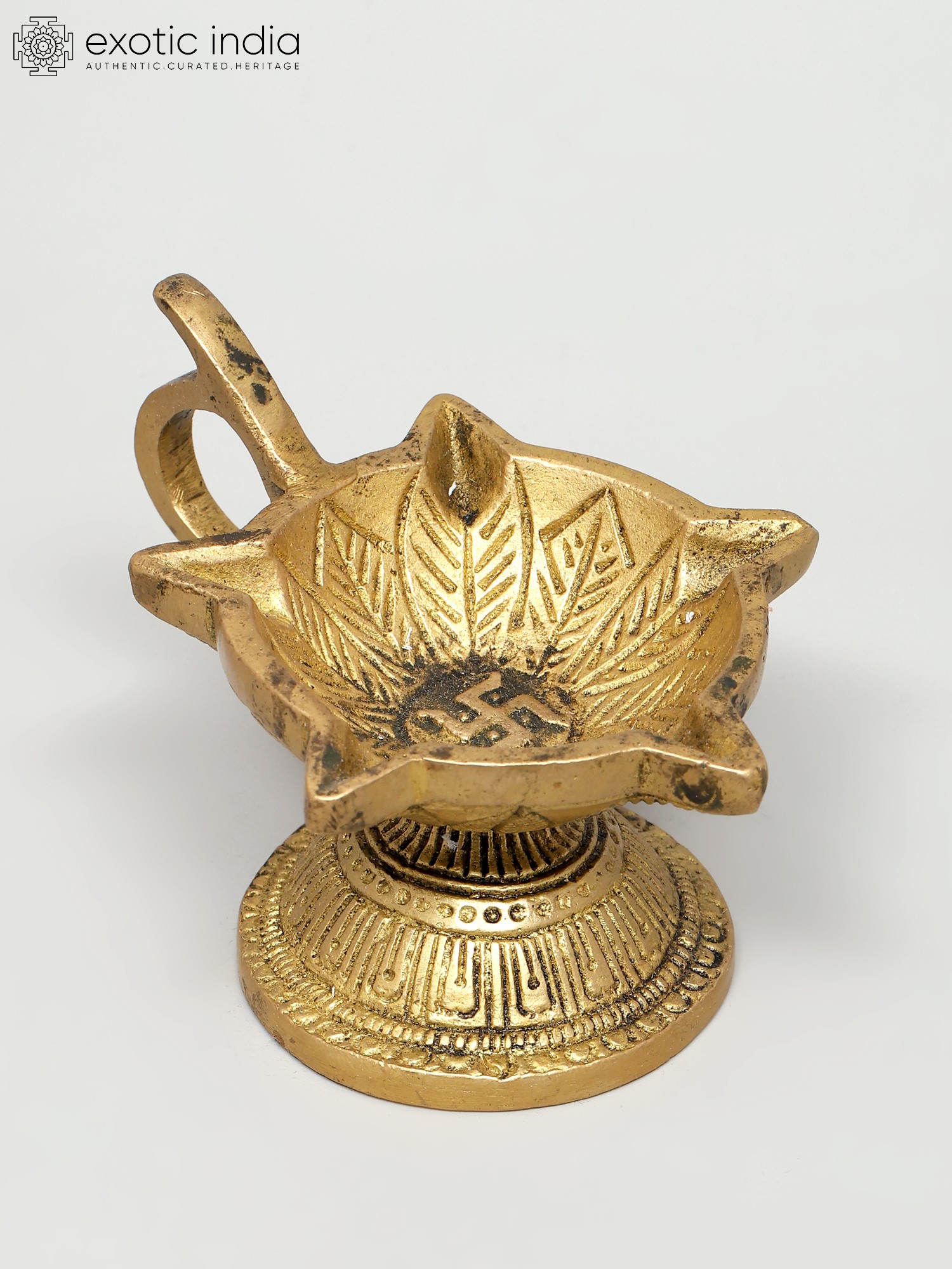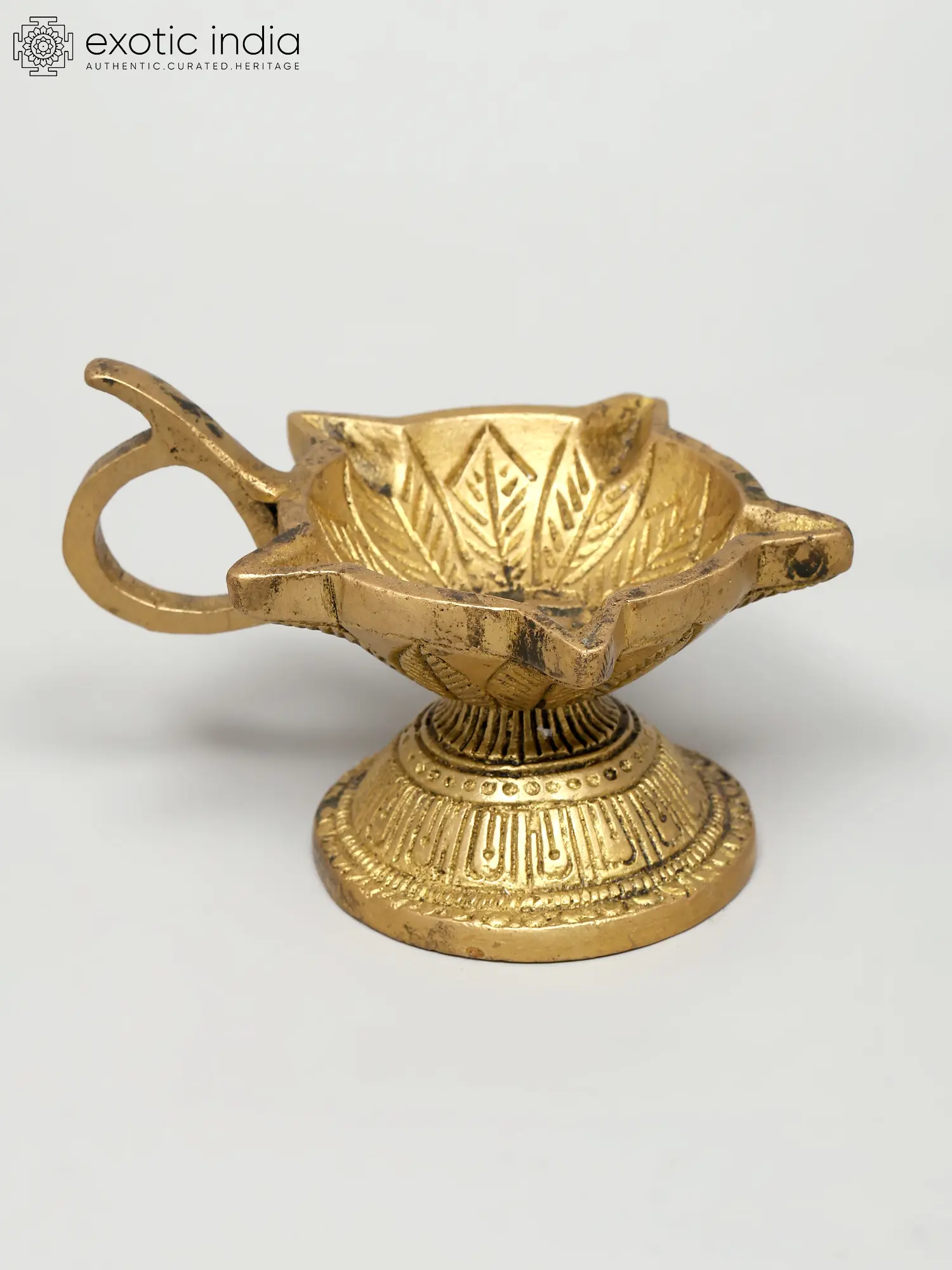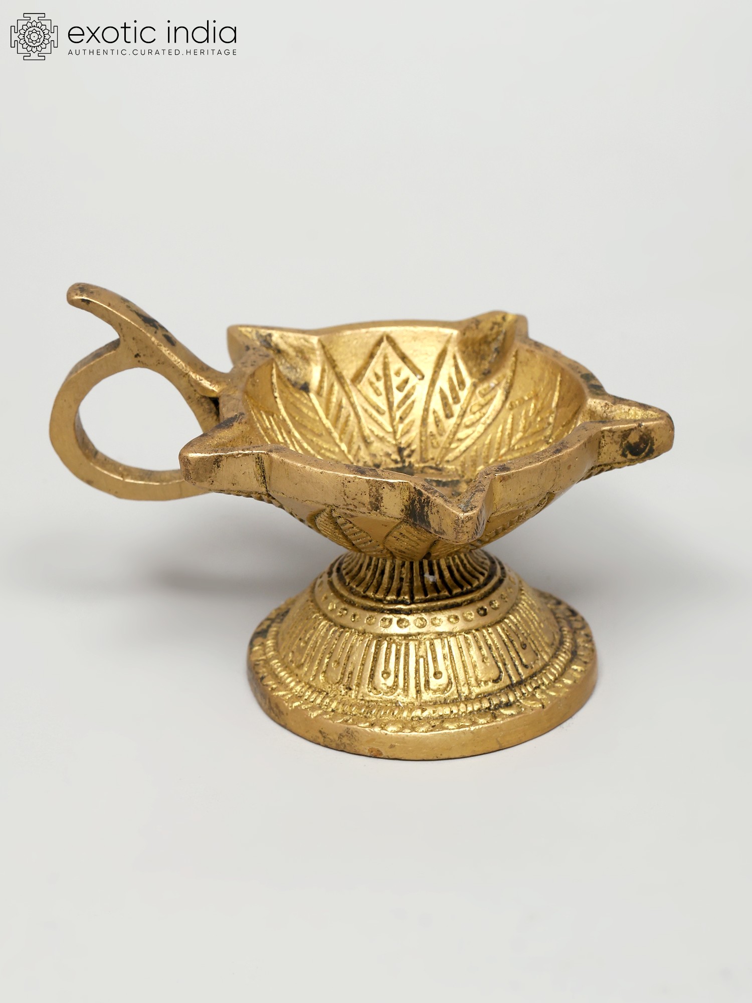 55" Tall, Resplendent Annam-Lamp with Gorgeous Etchings Along Base Rim, Stem and Branching Vines| Handmade Brass Diya