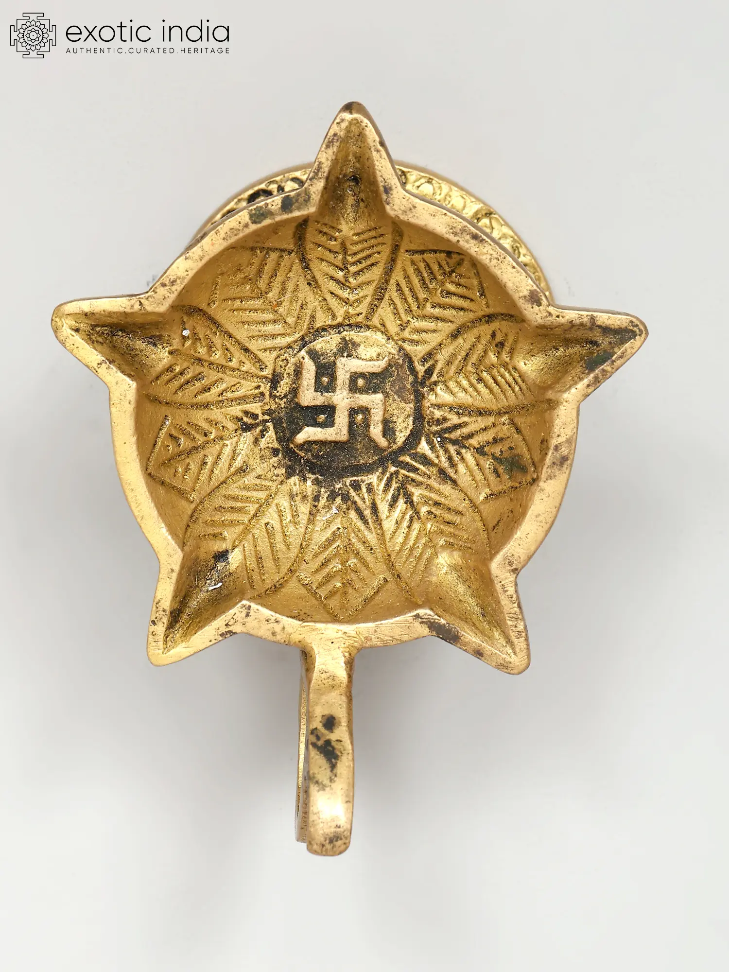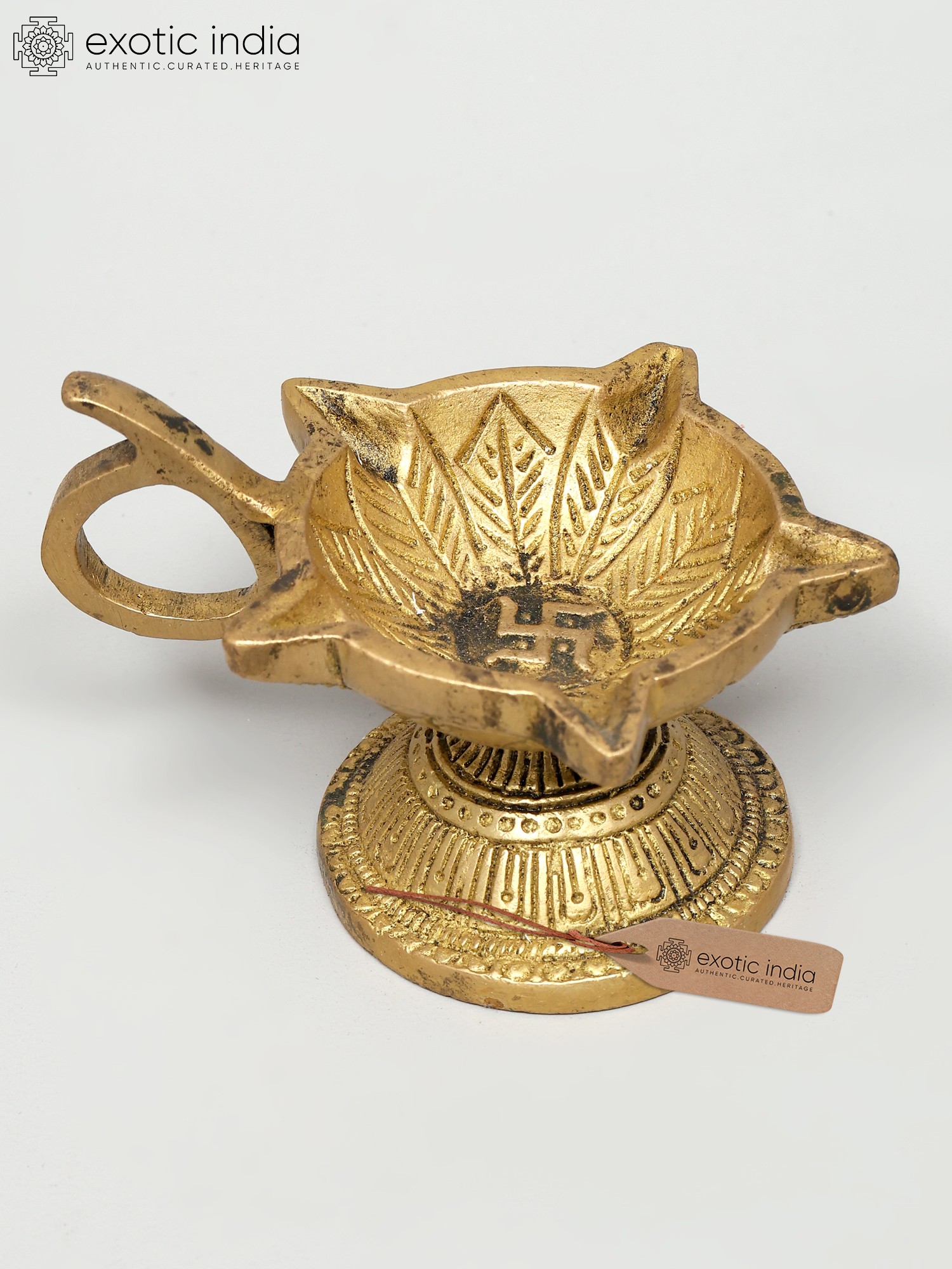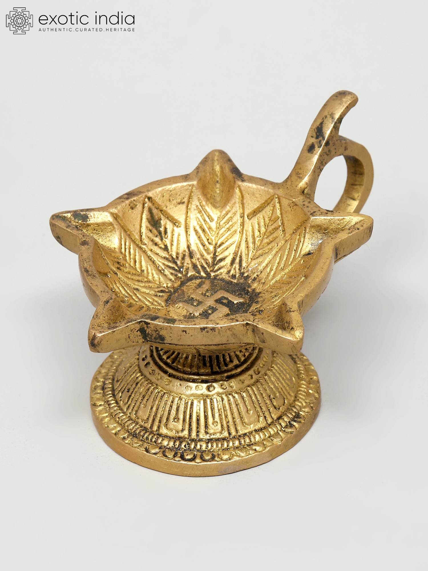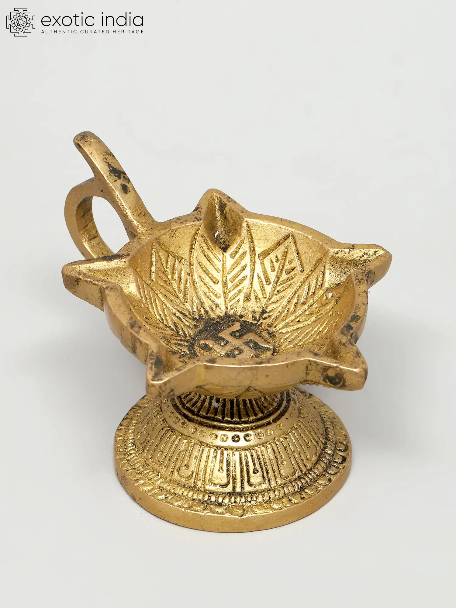 55" Tall, Resplendent Annam-Lamp with Gorgeous Etchings Along Base Rim, Stem and Branching Vines| Handmade Brass Diya