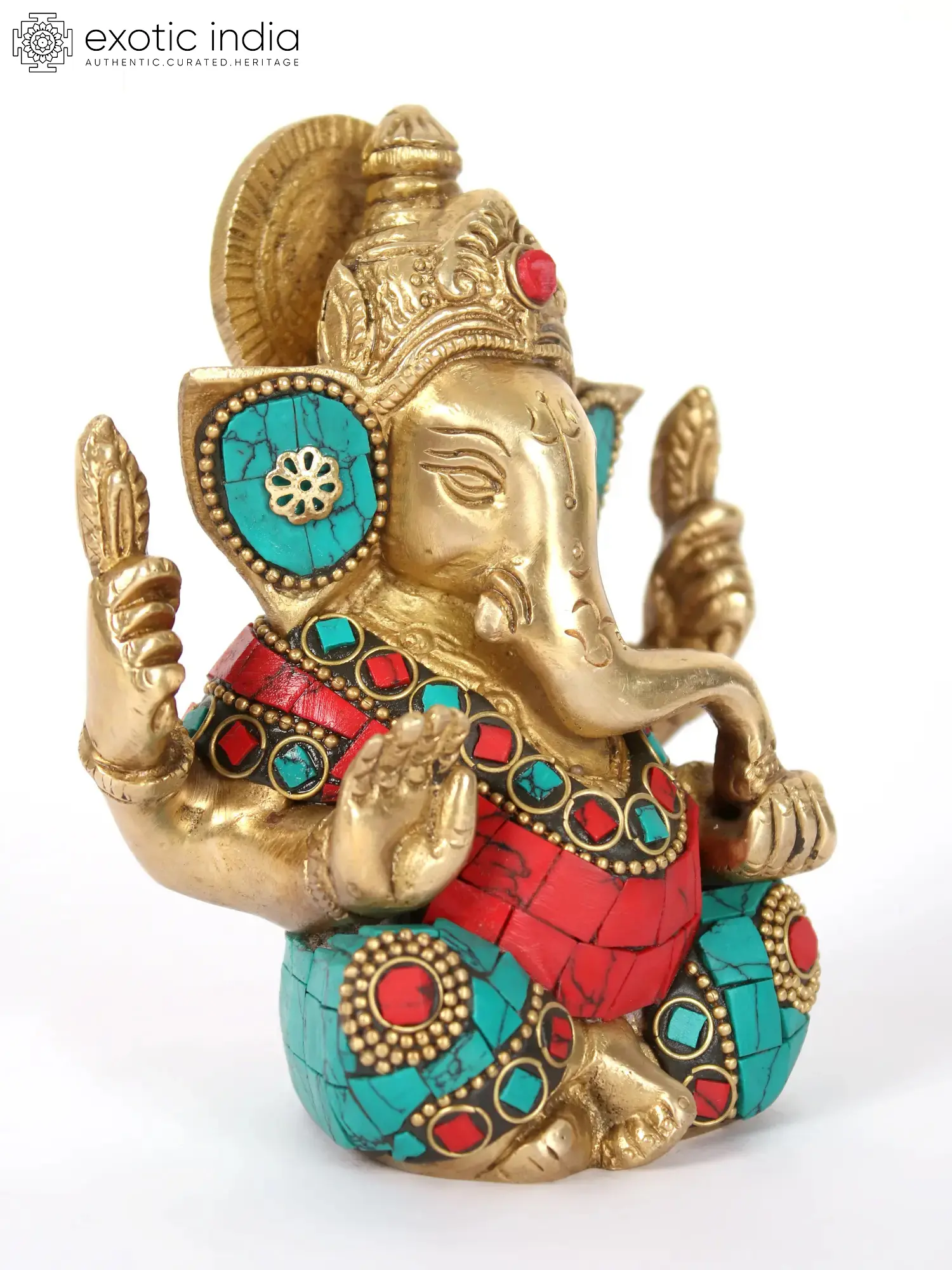 Welcome prosperity and wisdom into your home with this exquisite Small Brass Lord Ganapati with Inlay Work - including the stunning inlay work, showcase the beauty and majesty of Ganesha, the remover of obstacles - this idol is a symbol of new beginnings and the power of knowledge. Invite Ganesha's blessings into your life with this captivating piece of art.