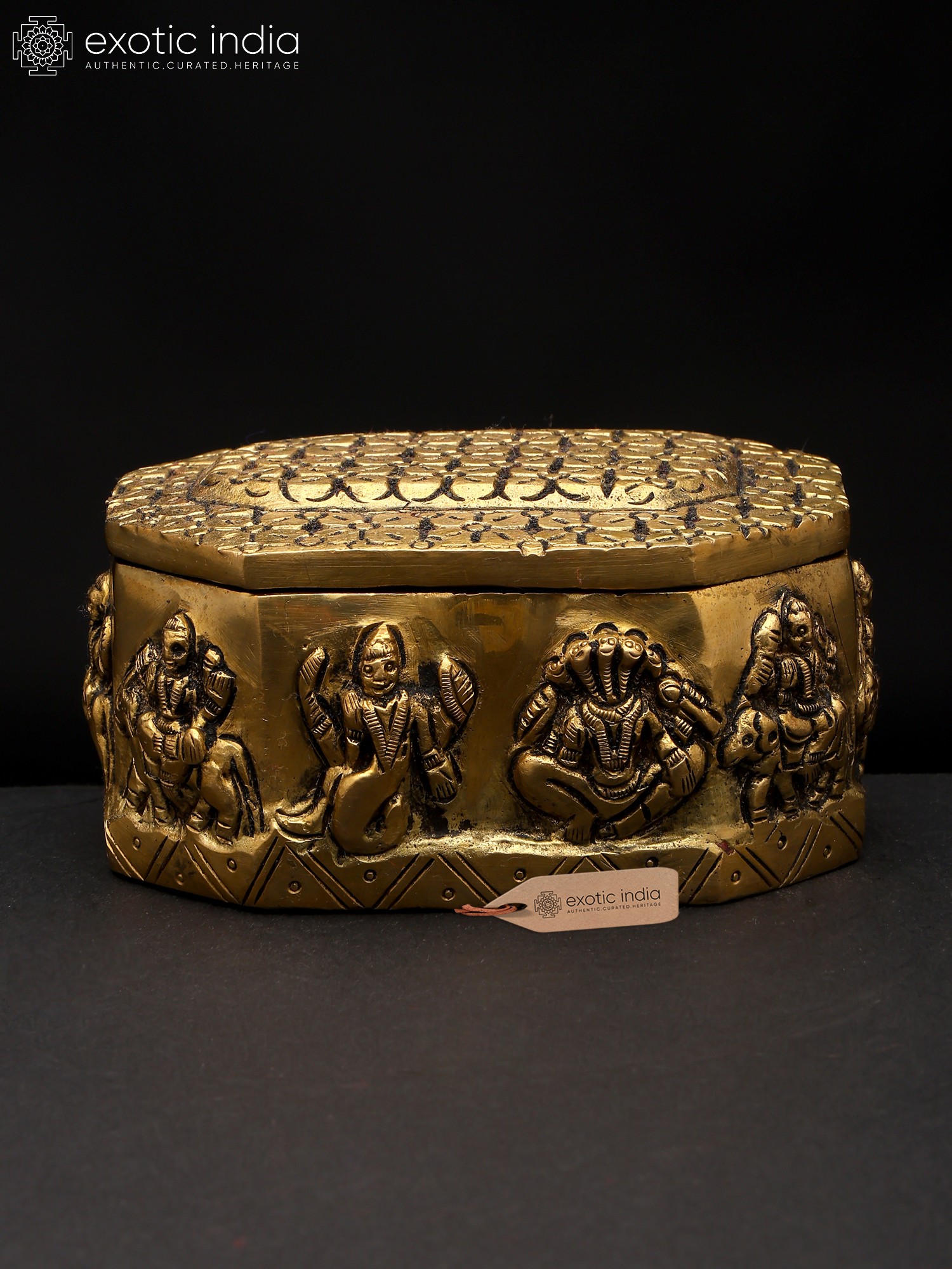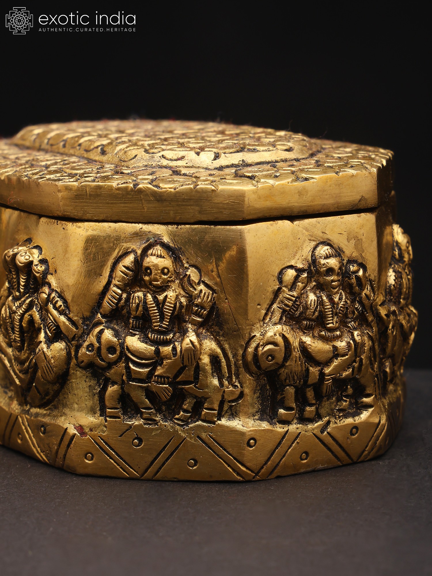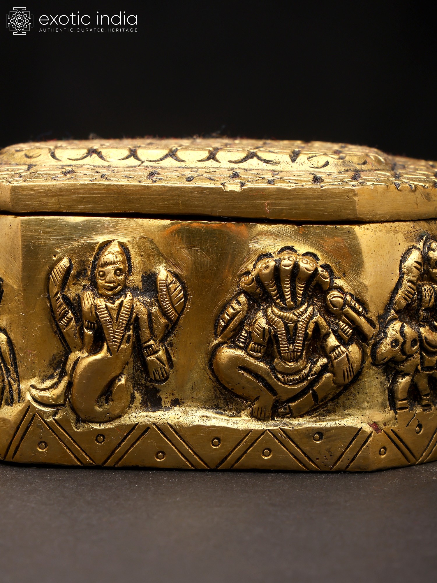 4" Small Brass Navagrah Ritual Box | Handmade | Made In India