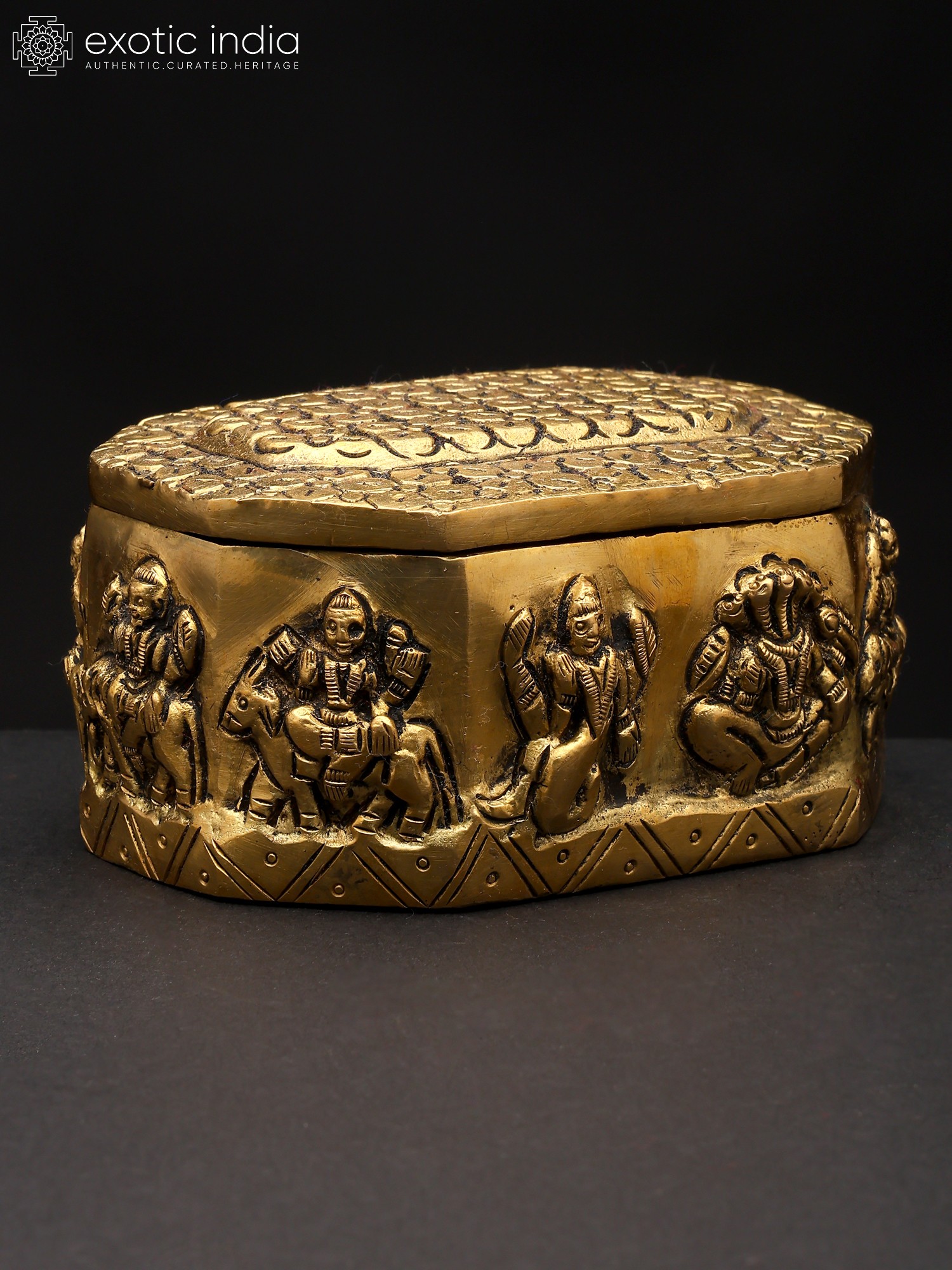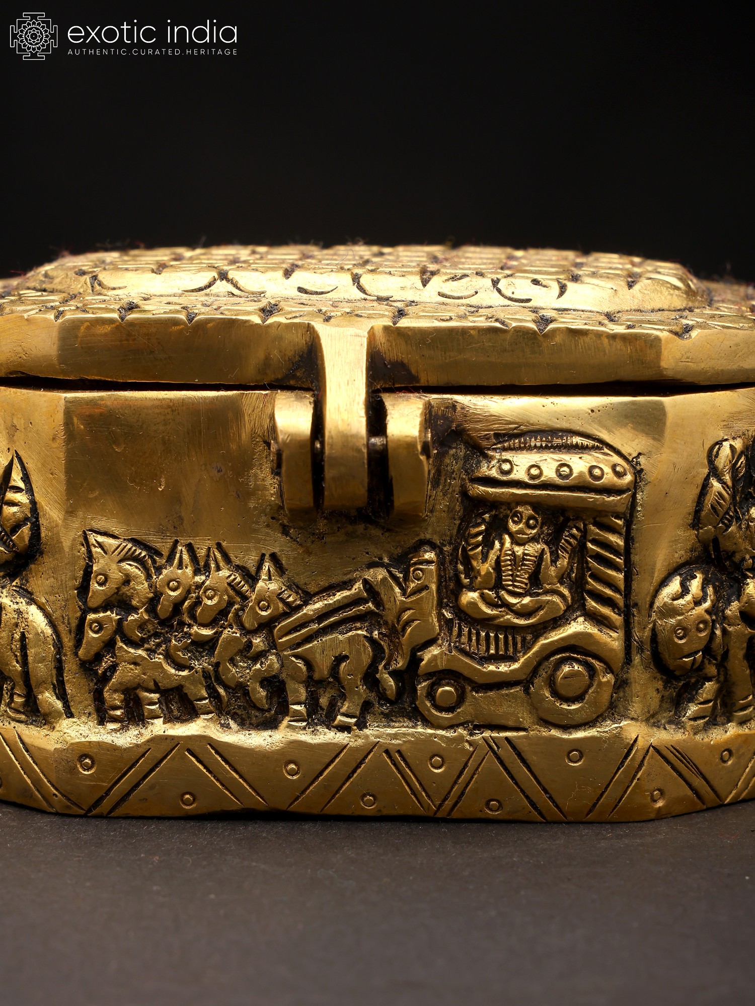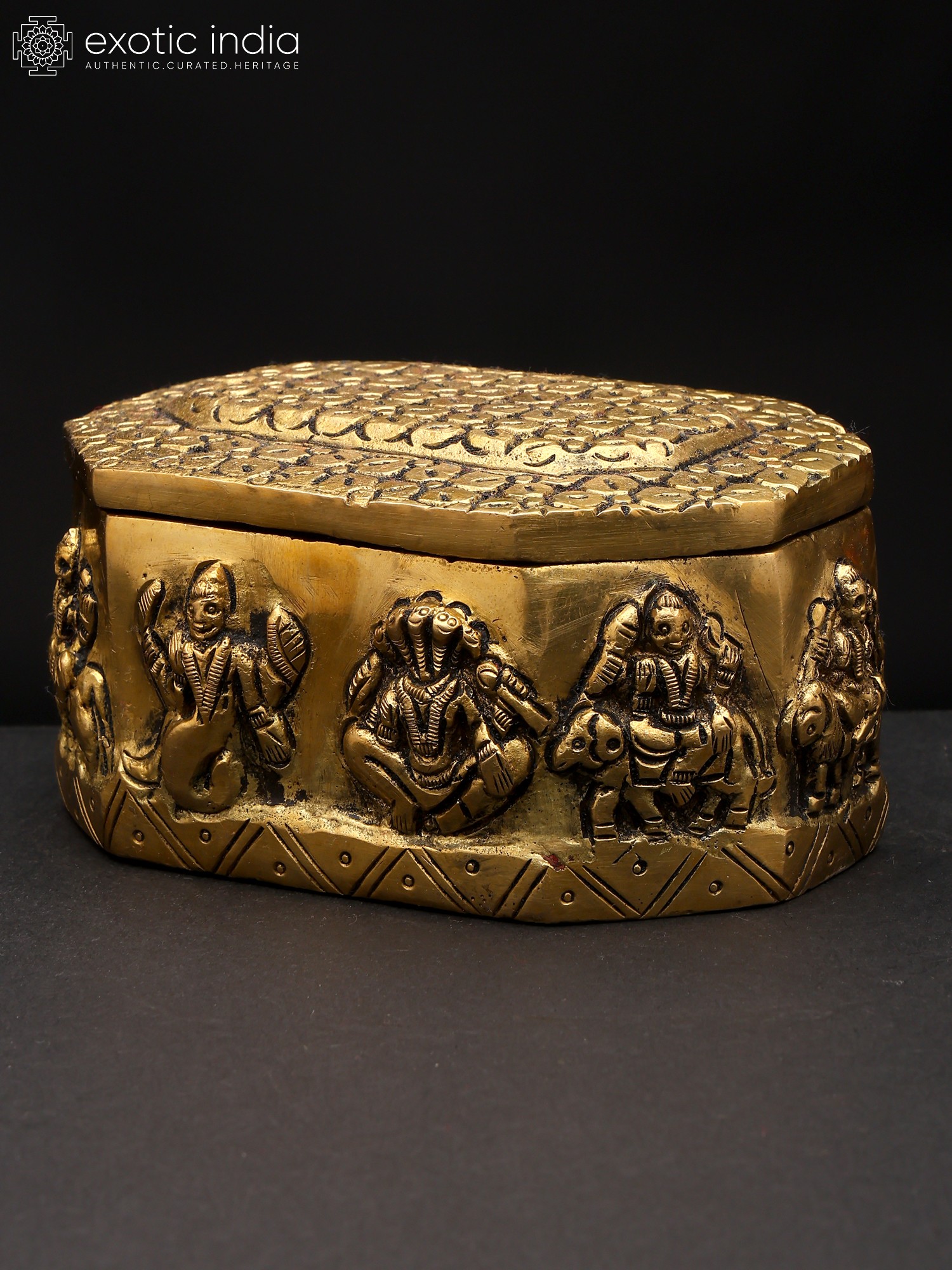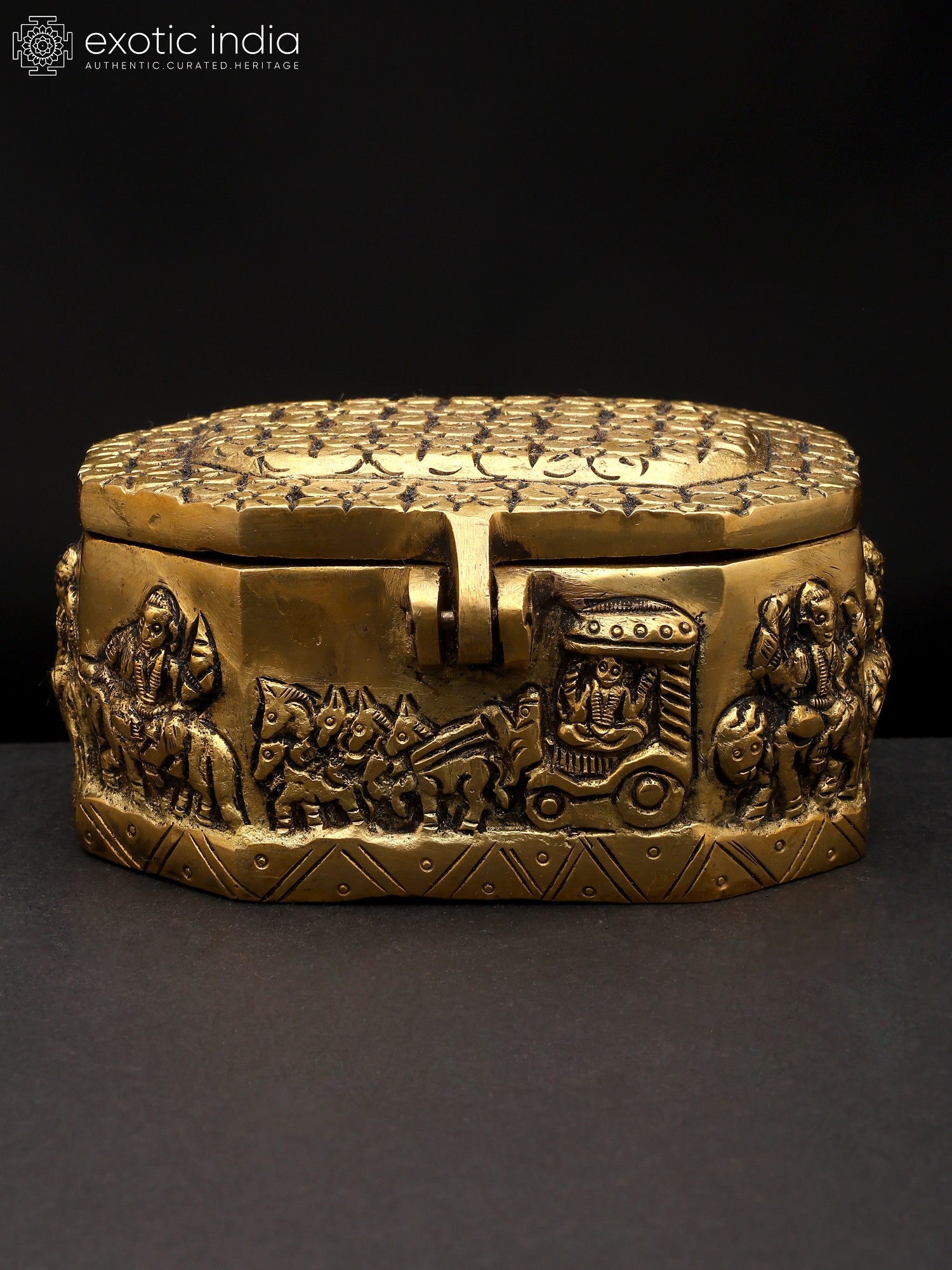 4" Small Brass Navagrah Ritual Box | Handmade | Made In India