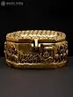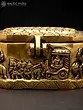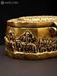 The craftsmanship of this box is truly remarkable. The rich golden hue of the brass lends it an aura of divinity and longevity, reflecting the enduring nature of the celestial bodies themselves. The raised relief carvings are sharp and defined, allowing the form of each deity to stand out with clarity. The lid is also adorned with a delicate, repeating pattern, adding another layer of visual interest and reinforcing the sense of sacred geometry. This piece is not merely an object of utility, but a work of art that embodies spiritual significance. In Indian culture, brass is often considered an auspicious metal, believed to possess purifying qualities and attract positive energy. The practice of worshipping the Navagrahas is widespread, with specific days and rituals dedicated to each planet to appease their influence and mitigate negative effects. Having representations of these deities in one's home is believed to foster harmony, balance, and well-being. This box, with its representations of the Navagrahas, can serve as a focal point for personal devotion or a beautiful addition to any altar or sacred space, connecting the earthly realm with the cosmic powers that shape our existence. It is a tangible link to the ancient traditions that continue to inspire and guide countless lives.